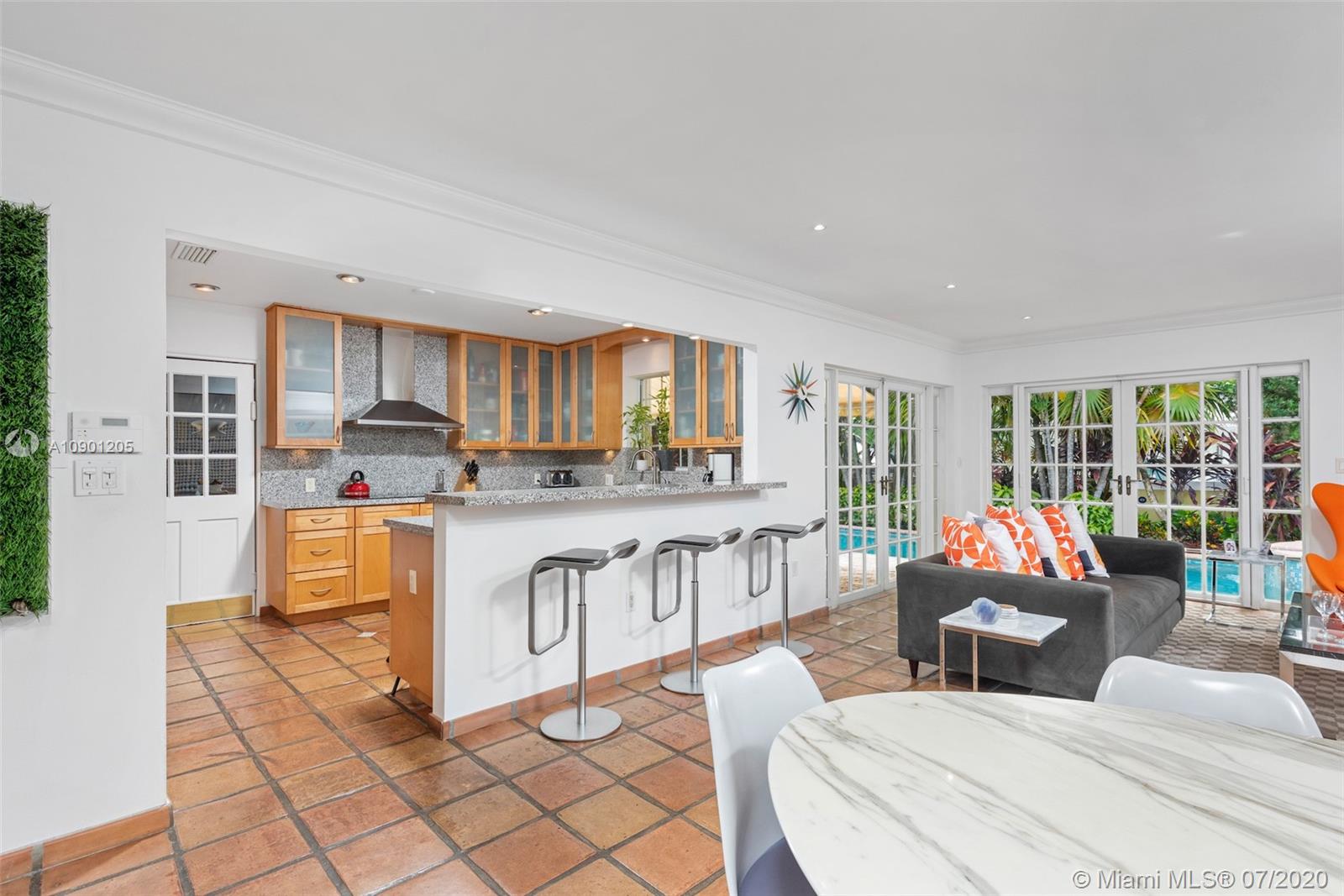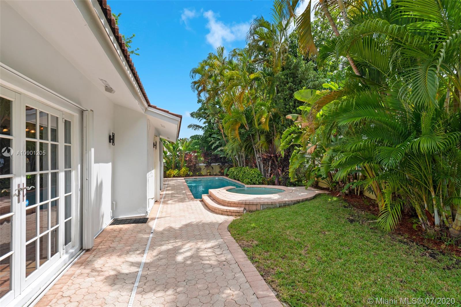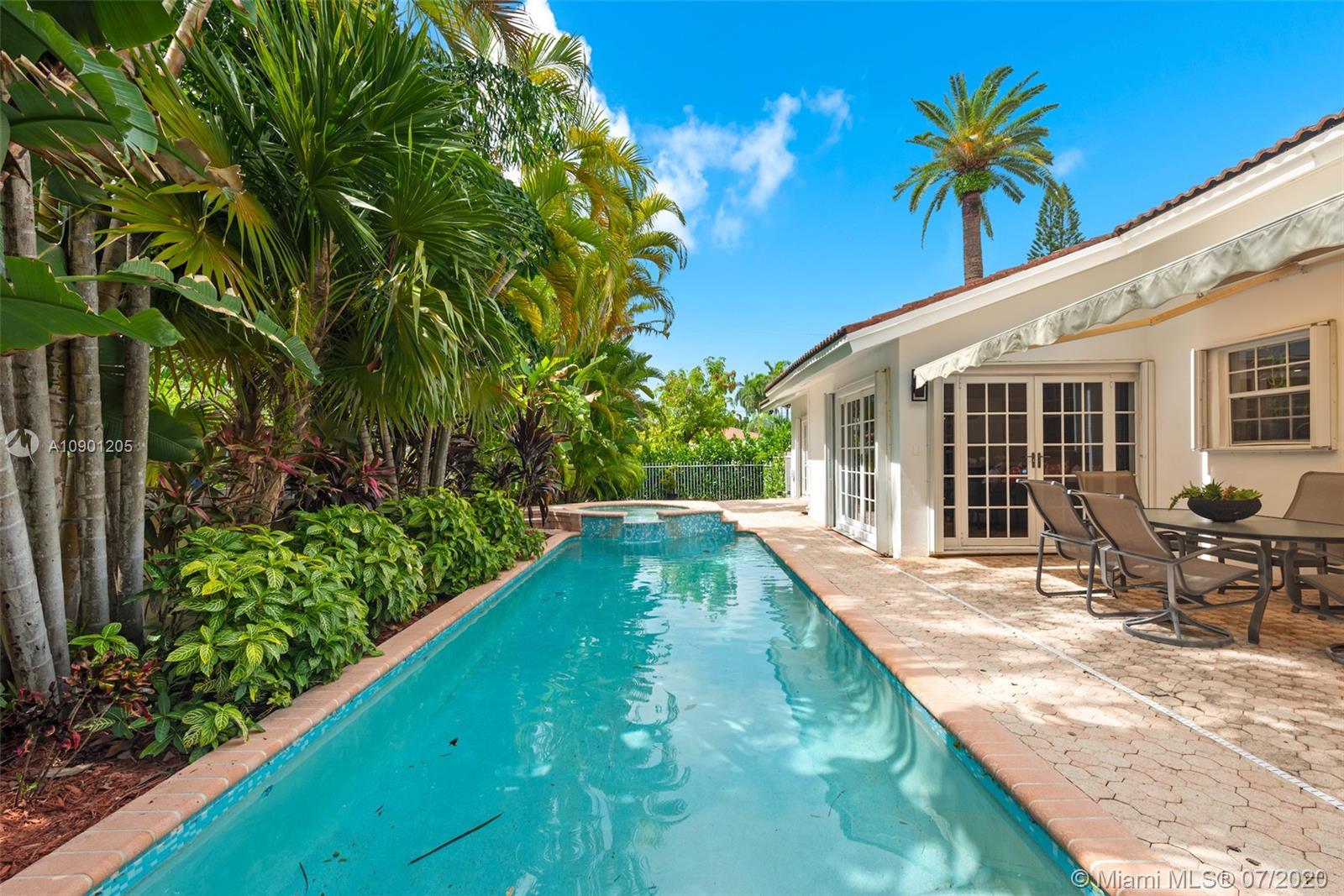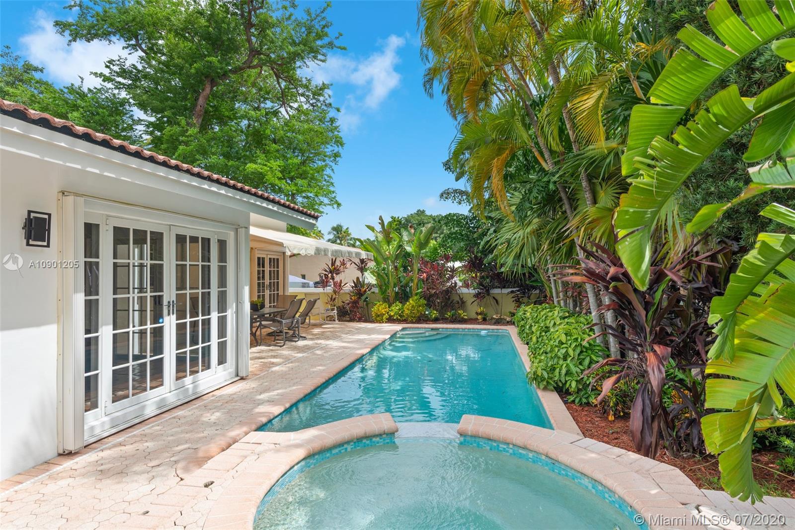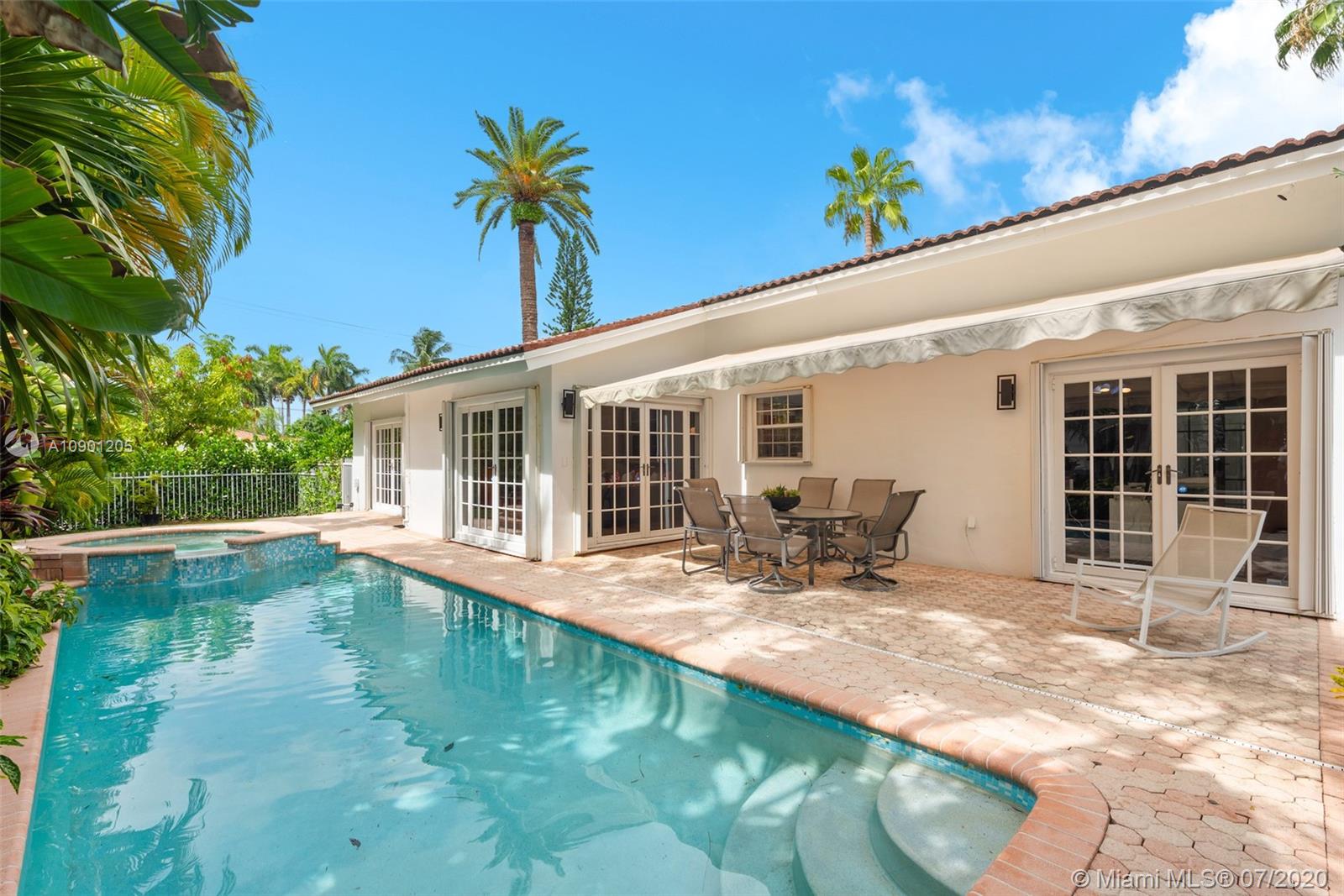 Artfully designed single-story, easy living corner pool home perfectly situated between South Beach & the 41st Street Corridor. 1 mile from Houses of Worship. This 3 bed light & bright residence offers a fantastic floor plan, open kitchen, & a tropical private backyard fit for entertaining & al fresco dining all within minutes of Miami Beach's best. Huge front lawn with convenient oversized circular driveway & covered portico leads to the double door entrance. Enjoy separate living & family window lined rooms feeding straight out to the pool area & updated kitchen with S.S. appliances, custom cabinetry & plenty of storage. Spacious master bedroom overlooking pool and double vanity in bath and steam shower. Stunning outdoor area with large pool with built in jacuzzi..