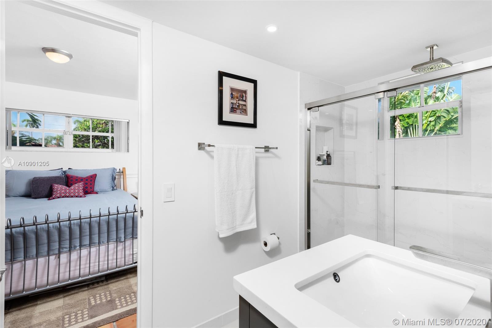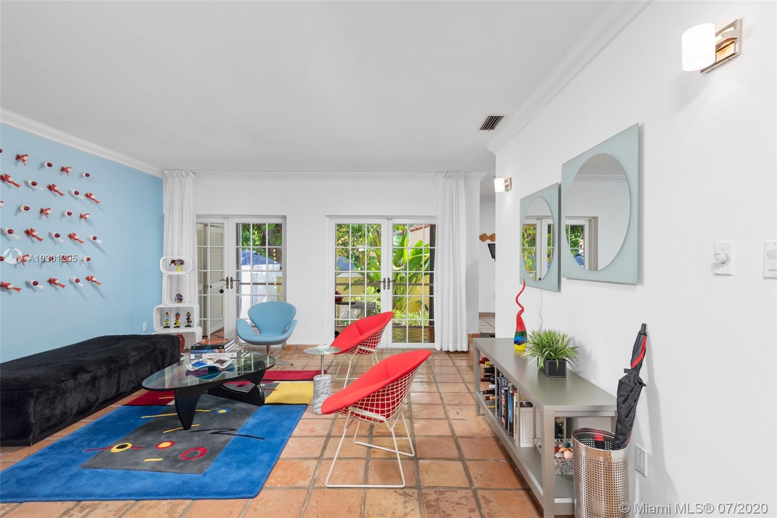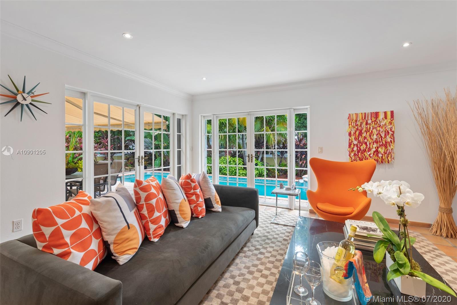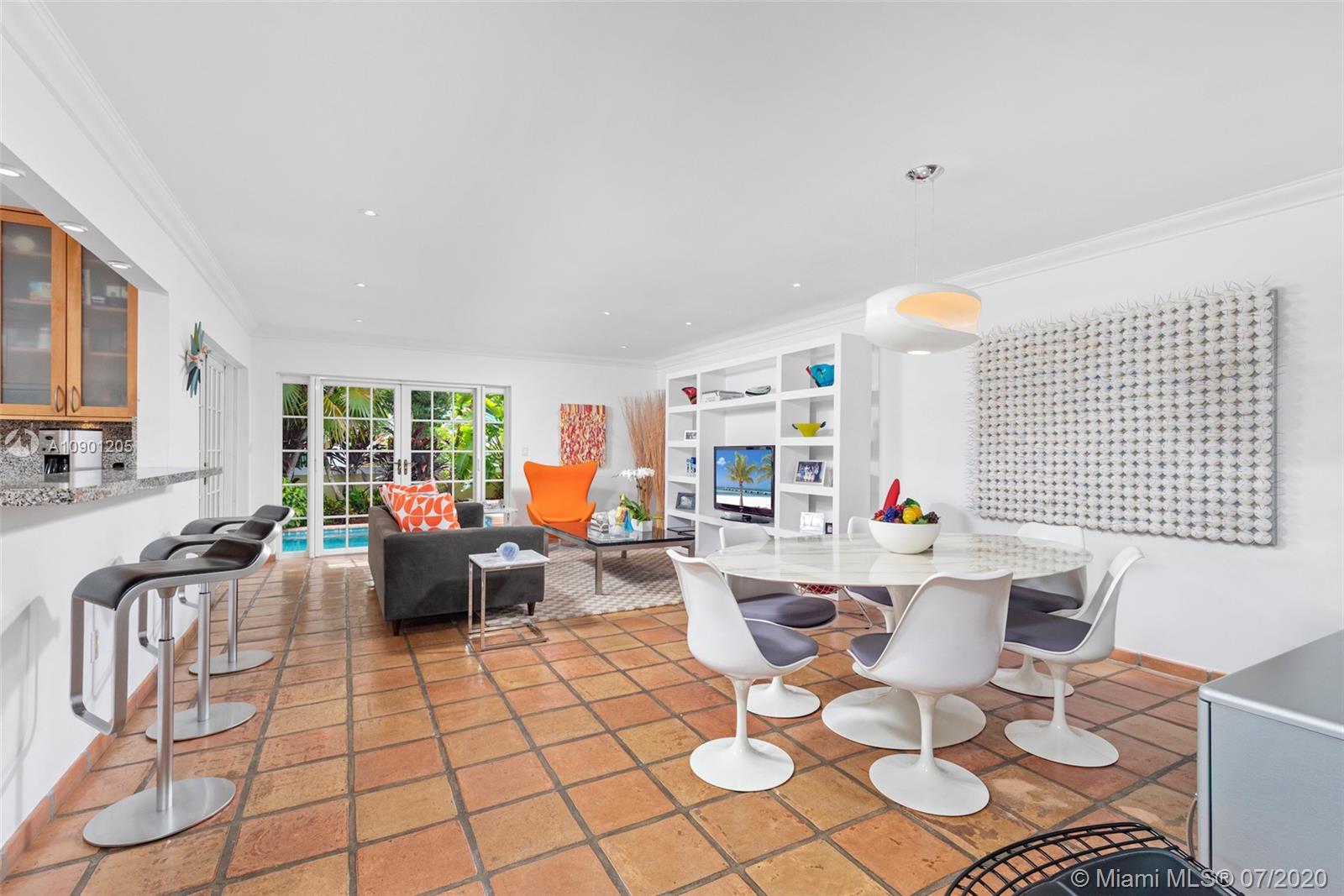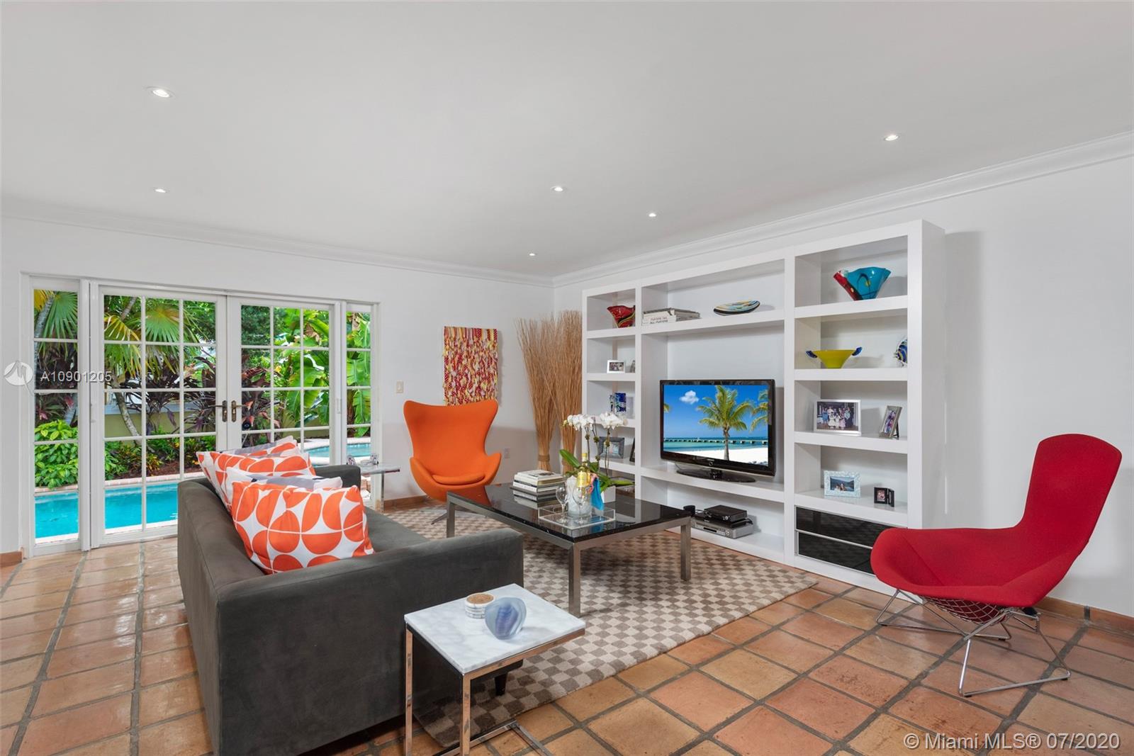 Artfully designed single-story, easy living corner pool home perfectly situated between South Beach & the 41st Street Corridor. 1 mile from Houses of Worship. This 3 bed light & bright residence offers a fantastic floor plan, open kitchen, & a tropical private backyard fit for entertaining & al fresco dining all within minutes of Miami Beach's best. Huge front lawn with convenient oversized circular driveway & covered portico leads to the double door entrance. Enjoy separate living & family window lined rooms feeding straight out to the pool area & updated kitchen with S.S. appliances, custom cabinetry & plenty of storage. Spacious master bedroom overlooking pool and double vanity in bath and steam shower. Stunning outdoor area with large pool with built in jacuzzi..