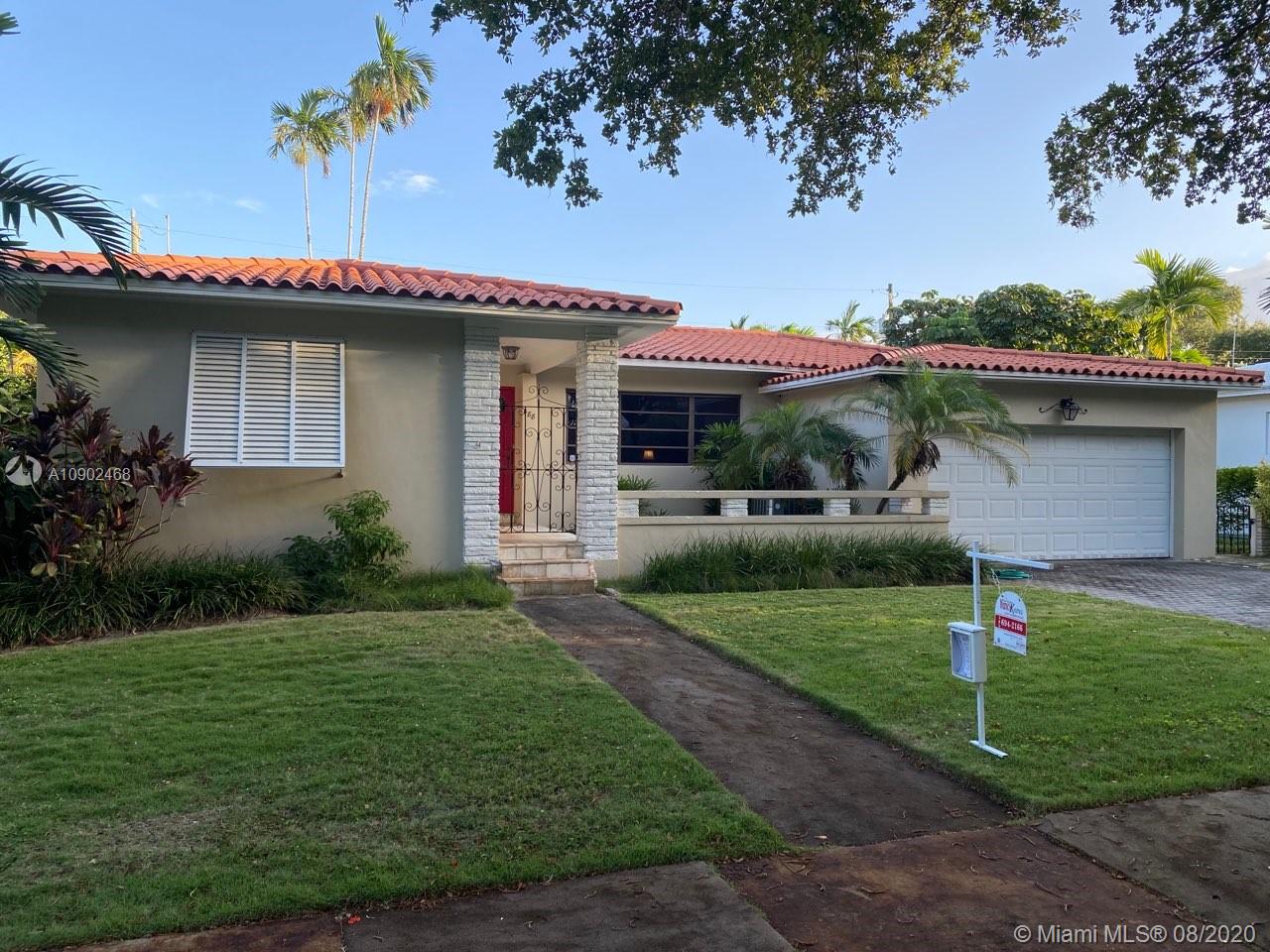 CASH OFFERS ONLY - must have proof of funds at time of offer! Best priced home in the HEART of Miami Shores! Buy this GEM! Long time residents of Miami Shores selling their "family home" - first time on the market in decades! Enter through a charming outside foyer overlooking a garden courtyard.Meticulously maintained.Beautiful original wood floors w/Open Floor plan easily adapt to today's entertaining needs. Three bedrooms and 2 bathrooms featuring a split bedroom plan with the Master Bedroom has a walk-in closet, and faces the back yard, with the master bathroom en suite.The kitchen has a breakfast counter and is open to the semi-formal dining room. There is a trellis covered large porch from sliding doors. The BONUS is a large 2 car garage - making this the BEST DEAL in Miami Shores.