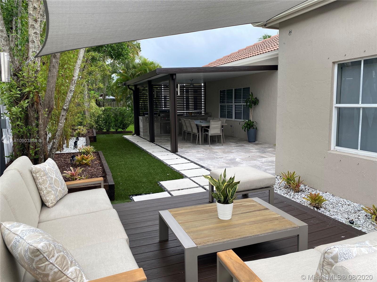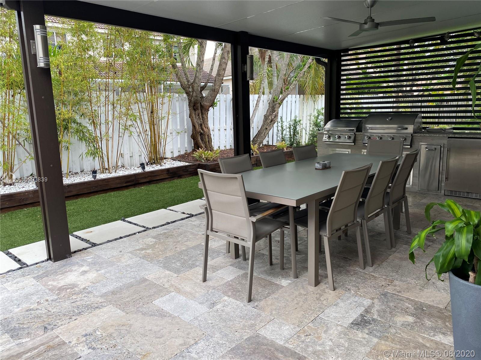 BEAUTIFUL HOUSE IN PRISTINE CONDITION IN A QUIET GATED COMMUNITY IN WESTON. TOTALLY REMODELED WITH A CONTEMPORARY LOOK. LIGHT CERAMIC FLOORS THROUGHOUT THE HOUSE. 4 BEDS, 2.5 BATHS. KITCHEN WITH 42" WOOD CABINETS, QUARTZ COUNTER TOP AND S/S APPLIANCES. ALL BATHS ARE RENOVATED. THIS HOUSE IS PERFECT FOR ENTERTAINMENT; IT COUNTS WITH A LARGE AND GORGEOUS TERRACE WITH A BUILT-IN BARBECUE GRILL, AN OUTDOOR FRIDGE, A BEVERAGE COOLER AND A HIBASHI GRIDDLE, SURROUNDED BY BAMBOO TREES. EXCELLENT LOCATION, CLOSE TO MAIN HIGHWAYS, A+ SCHOOLS. THIS IS A MUST SEE!!