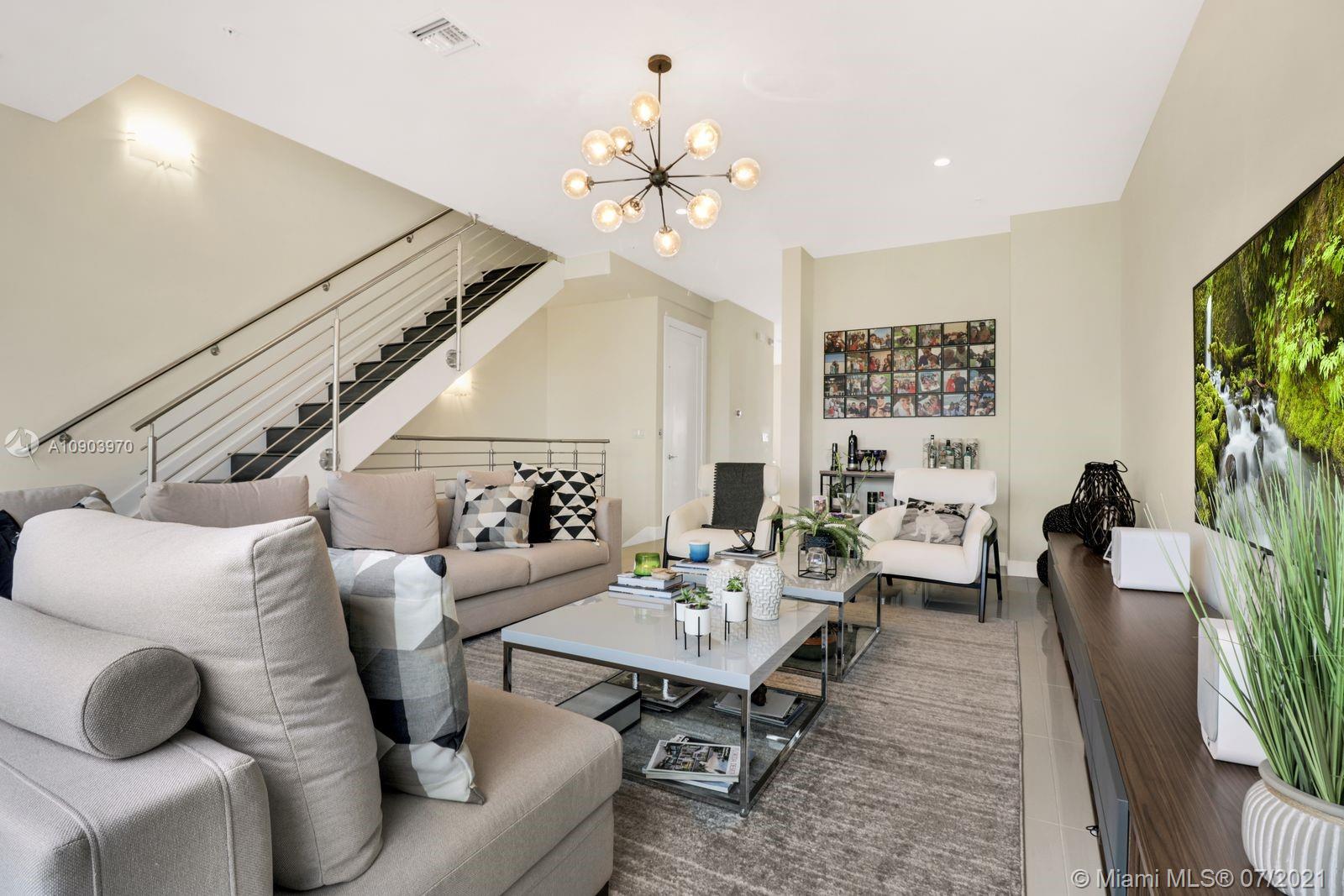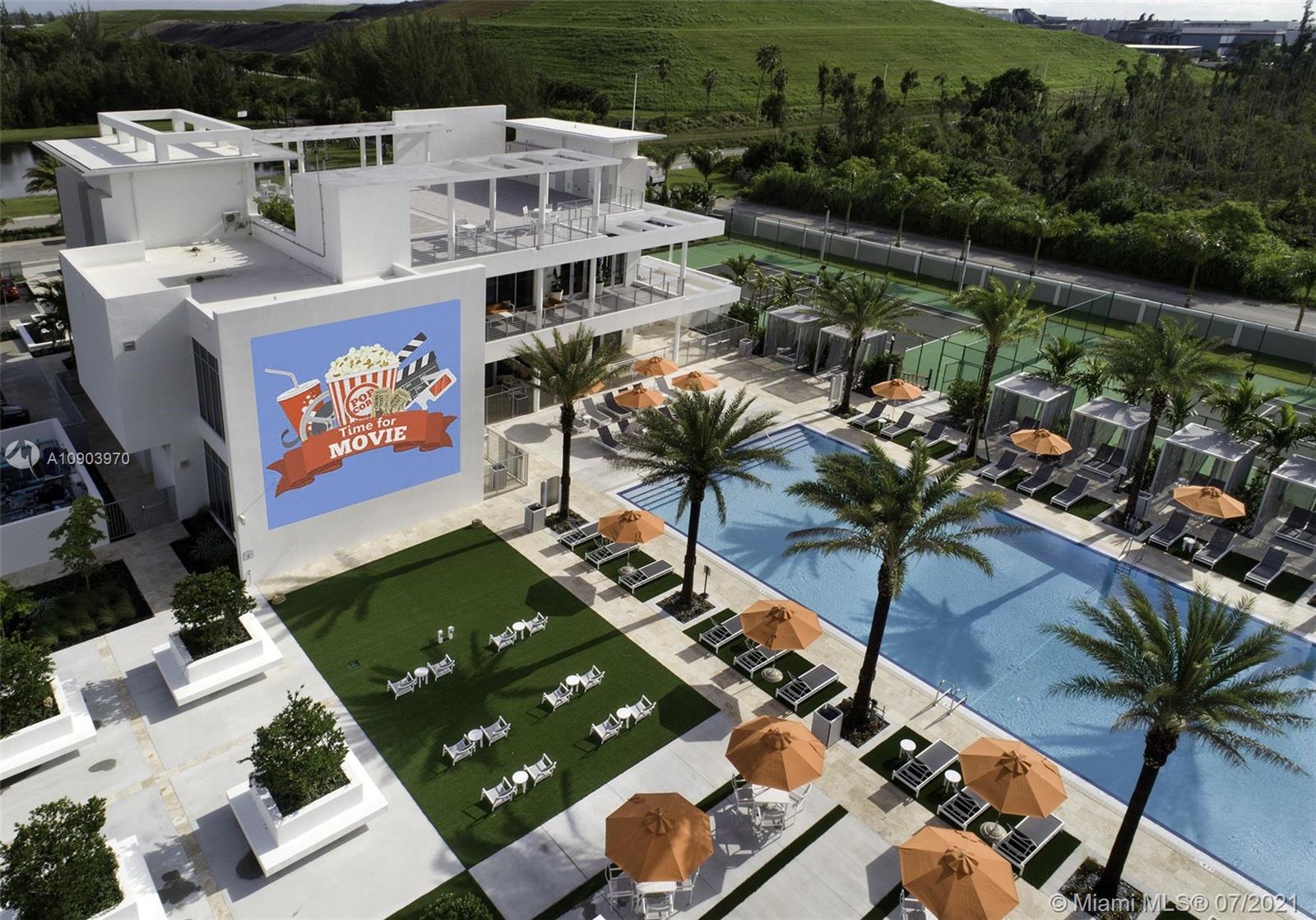3 bedroom 3 full bathrooms, 2 half baths three-story townhouse with ROOF-TOP TERRACE summer kitchen, and ELEVATOR. 1 full bedroom and bathroom on first floor! Spacious two car garage. Prime location in landmark community, located across the street from beautiful green linear Park. Ample parking for all your guests. This property is immaculately maintained and decorated and features top-of-the-line kitchen appliances including wall oven, wine cooler, quartz countertops, large porcelain tiles, wood stairs, large impact Windows and doors, Clubhouse features rooftop lounge, open air amphitheater, resort style swimming pool, splash pad, tennis courts, and top of the line fitness center.