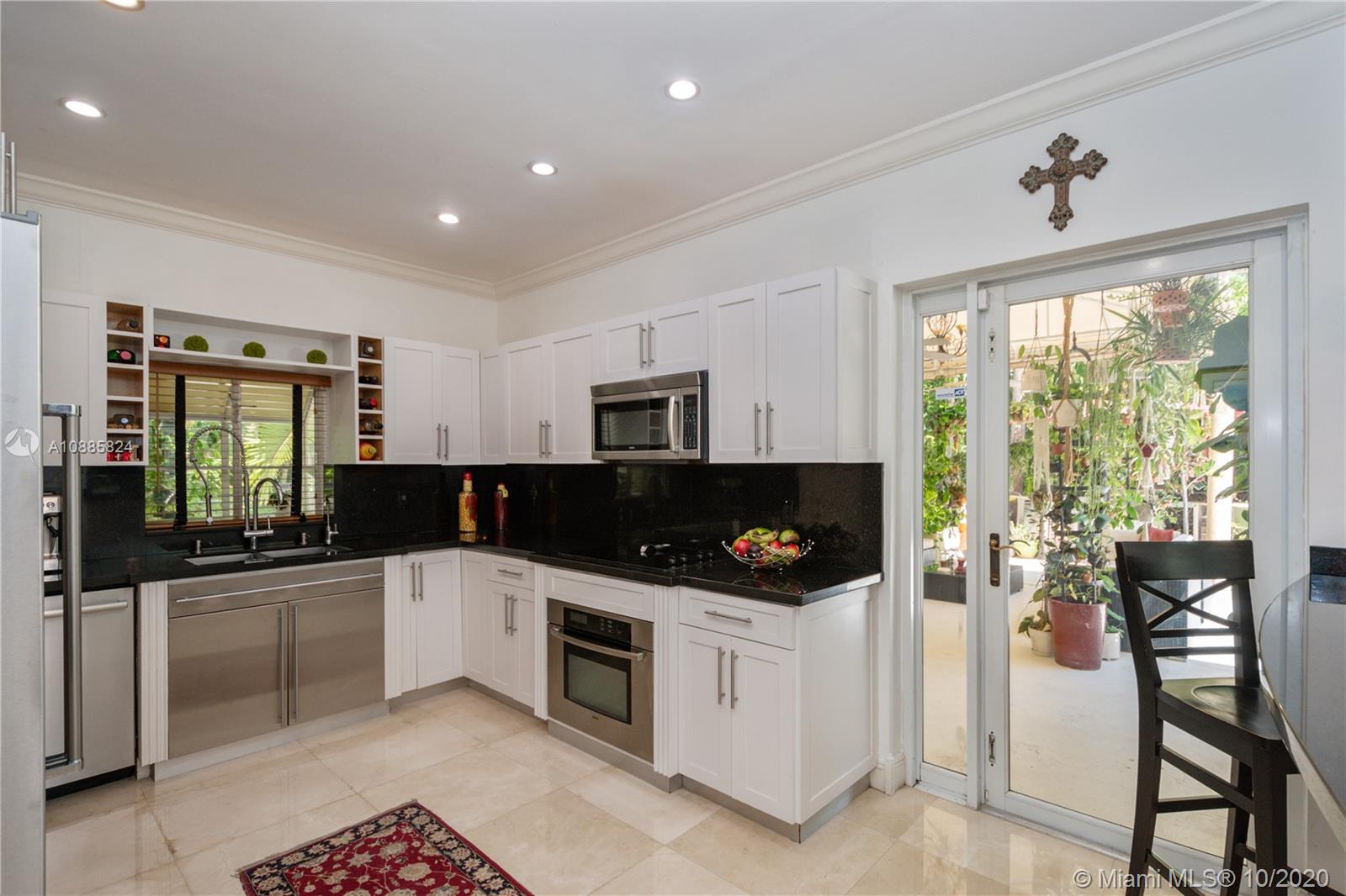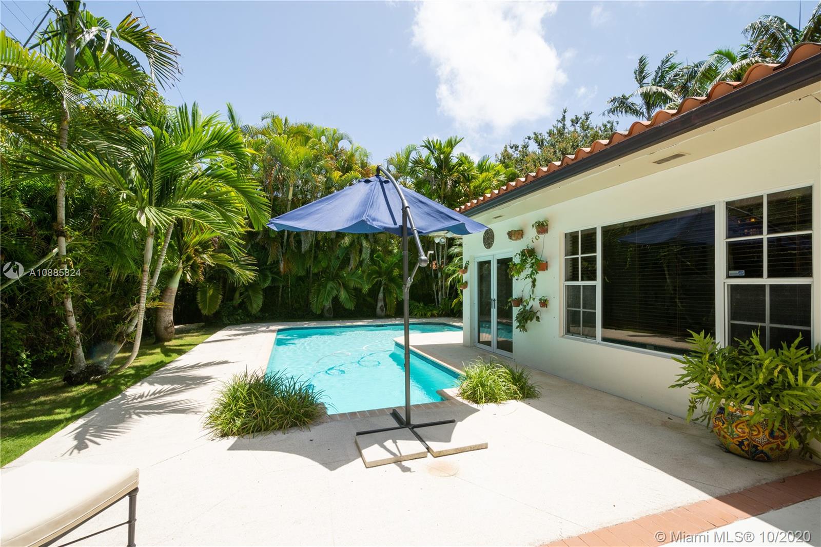 Charming walled and gated home on picturesque tree-lined Bayamo, situated in a central South Gables area. A foyer entrance leads to a lovely open concept layout: formal living room, spacious dining and a light and bright entertainment room open to a romantic pool area are all conducive to memorable gatherings in and outdoors. Great kitchen with open counter, stainless steel appliances and ample closet space throughout. Comfortable principal en-suite; two other bedrooms and bath. Marble floors, recessed lighting, two-car garage, two air conditioning units. Close to the University of Miami, A-rated public and private schools. Must see!