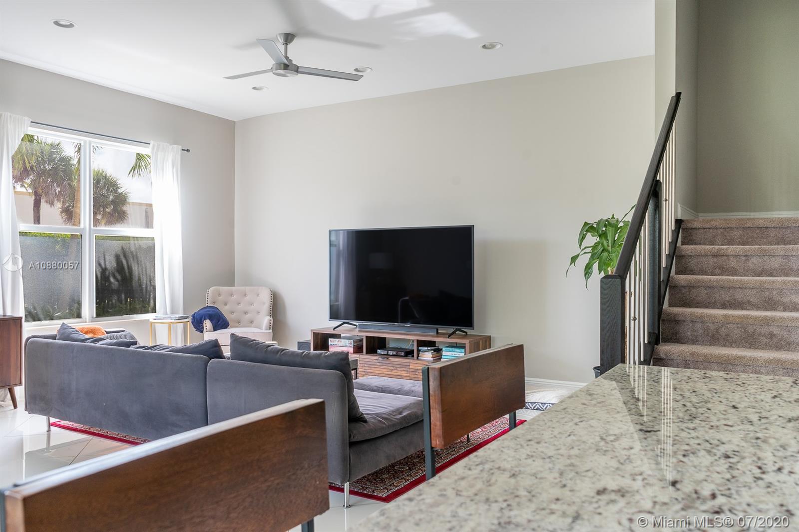 Don't miss out on this Gorgeous Modern 4 bedroom/3.5 bath, three story, End Unit townhome in the beautiful gated community of Centra Falls. This home is the only sky model unit in Centra falls west that has a Fenced front yard and is also an end unit. WOW!! This unit Boasts Tons of Tastefully selected upgrades! This home has a beautiful cook's kitchen with modern cabinets, huge granite island, with tons of Cabinetry. Two Car Garage and much much more. The Third floor loft is perfect for a sitting area, kid's playroom, or workout area and/or even a game room. Enjoy many amenities from the heated pool/spa, to the fitness room with relaxation areas. Loads of storage! Hurricane impact windows and doors throughout. Wont last