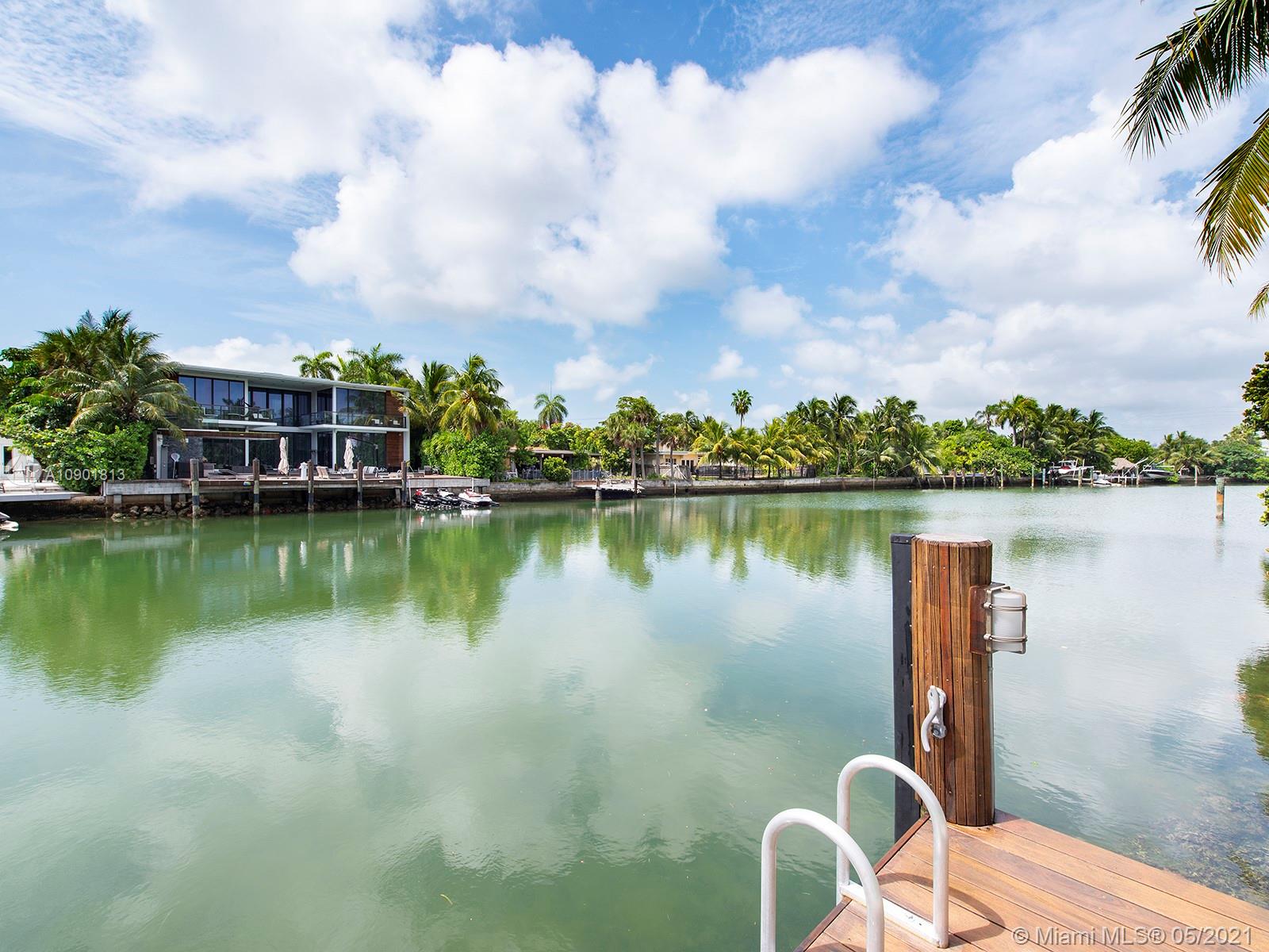 Centrally located in Miami Beach on a peaceful cul-de-sac street, this sleek modern residence has a spacious open floor plan with a beautiful interior garden and breathtaking scenery. Built in 2014, this home comes with luxurious amenities such as a living room with fireplace, a family room with water and pool views, a modern kitchen with granite countertops, wine cellar, and a second out dining are by a summer kitchen with pizza oven. Offering 5,132 Living SF, this 7 BD 7 BA residence combines concrete and wood flooring throughout the home. The master suite has two oversized terraces and a large walk-in closet. Outdoor amenities include a heated pool, IPE deck, a new boat lift, a dock, 70 FT of water frontage, and a large rooftop deck perfect for entertaining.