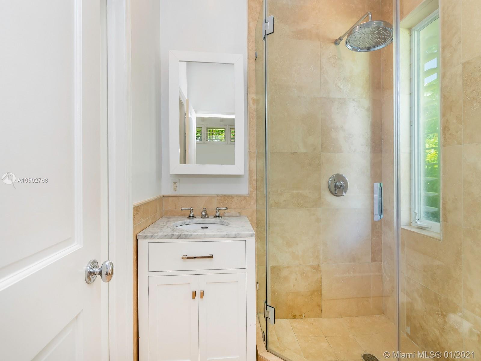 Palm beach chic garden style home with covered front porch and flow through views. This 4 bedroom 3 bath residence is unique in its style and vibe. A fabulous cabana style master suite overlooks the tropical garden and spa quality pool. A covered porch opens into a great room, dining, and family rooms. A white cook's kitchen overlooks a custom-designed pool with water features and private garden setting. A large gated yard both front and back allows for family entertaining. Impact glass. One story living at its finest.