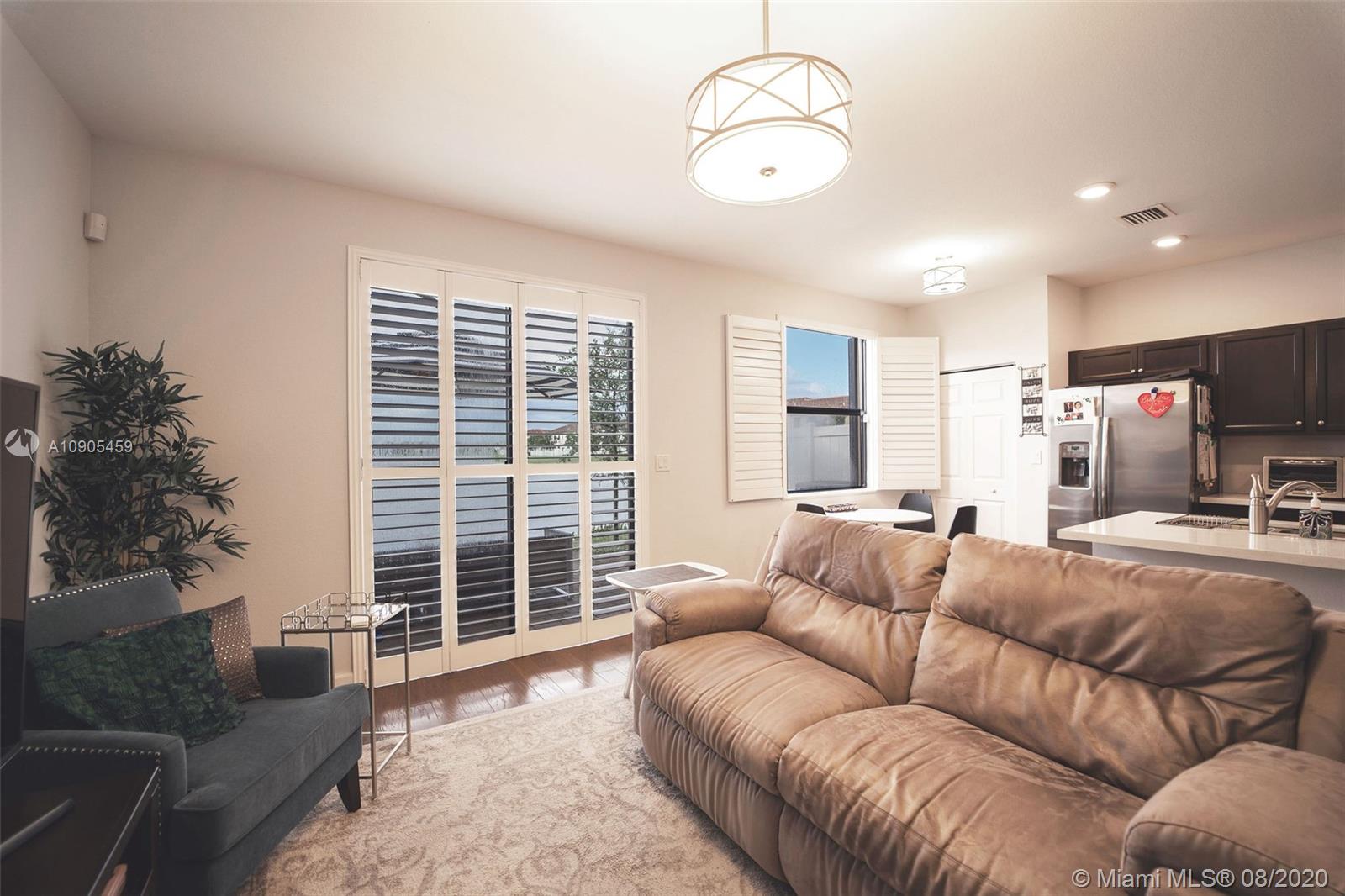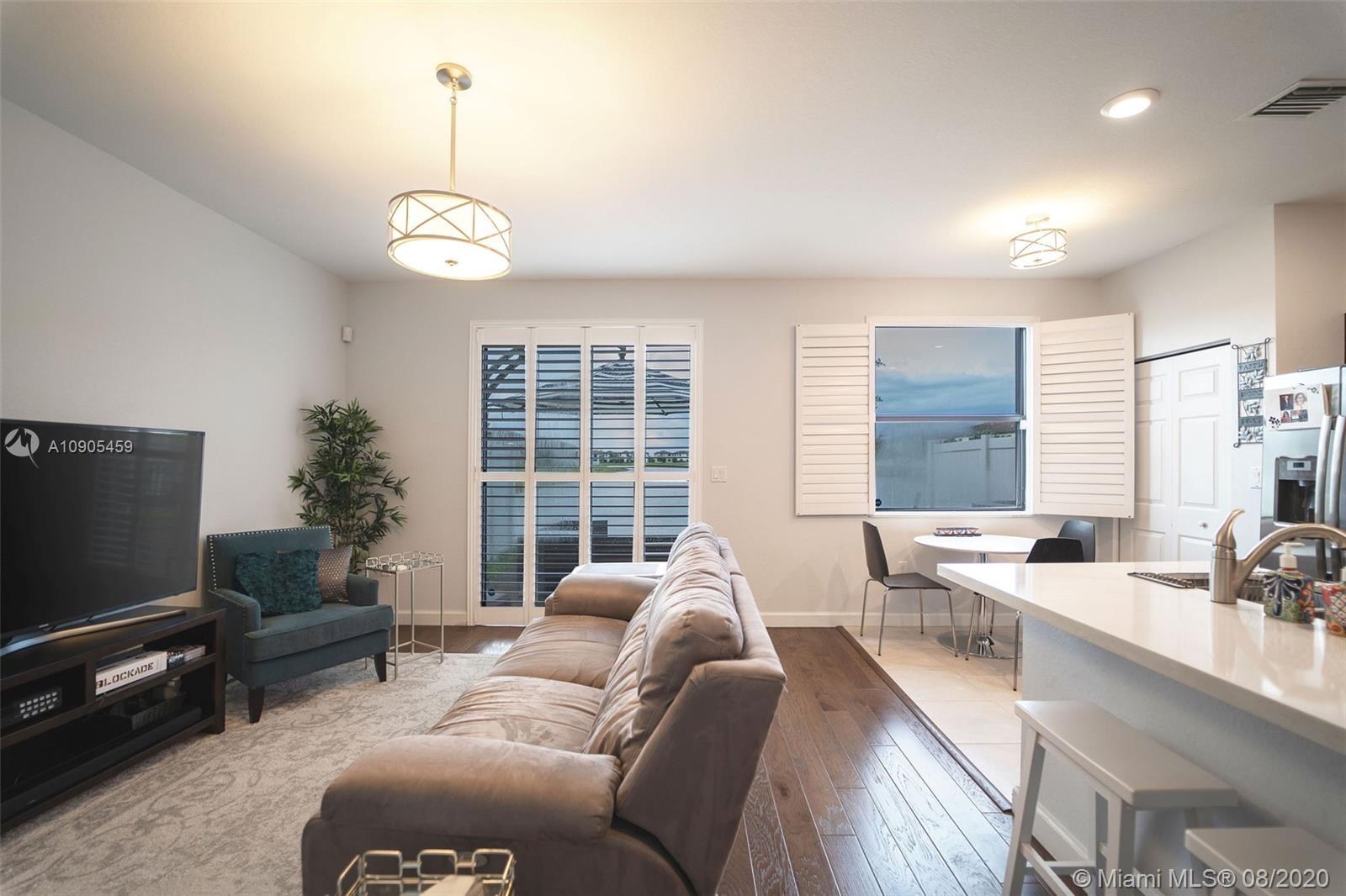 Gorgeous 4 Bedroom, 2.5 bath Bonterra corner townhome with stunning water views! Relax on your patio and enjoy the serenity that lakeside living brings. This unique unit has beautiful wood flooring on both the first and second floors. Freshly painted, open kitchen and family room overlooking the lake. The kitchen offers Modern style cabinetry, granite countertops and stainless appliances. All bedrooms are located on the second floor, along with the laundry area. Generous size master suite with a huge master bath. Accordion shutters throughout, attached single car garage plus additional driveway parking for 2 vehicles. Bonterra is a gated community with 24/7 security and luxury style amenities. Easy access to the surrounding communities of Doral, Miramar and Miami Lakes.