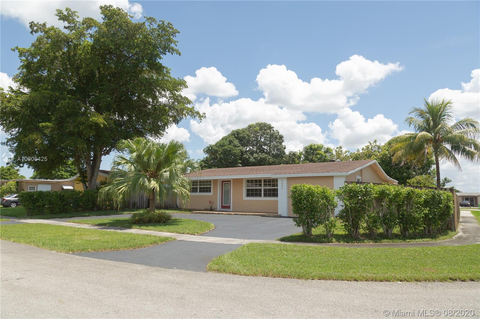 Beautiful and meticulously maintained 3 bedroom 2 bath single family, corner lot home in the much desired area of Sunrise Golf Village. Very spacious at just under 2,000 sq. ft. Additional family room with access to the patio, perfect for entertaining under a Tiki Hut and bbq area. Wrap around yard with plenty of room for a boat or RV. Circular driveway provides access to multiple cars. Kitchen has stainless steel appliances and wood cabinets with ample cabinetry for storage. Impact windows throughout. Upgraded bathrooms including a jetted tub in the en-suite. Plenty to see! Schedule a showing today.