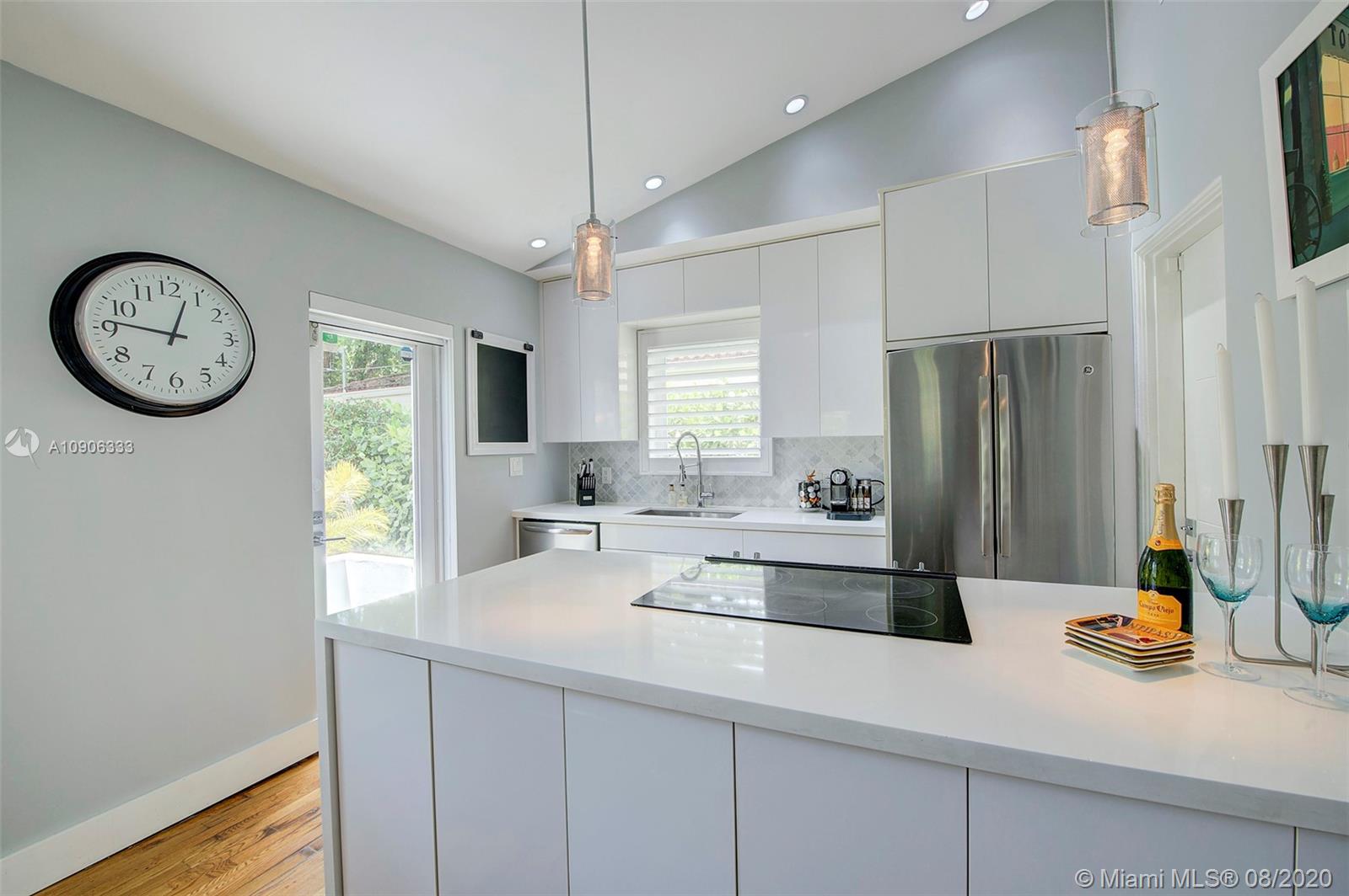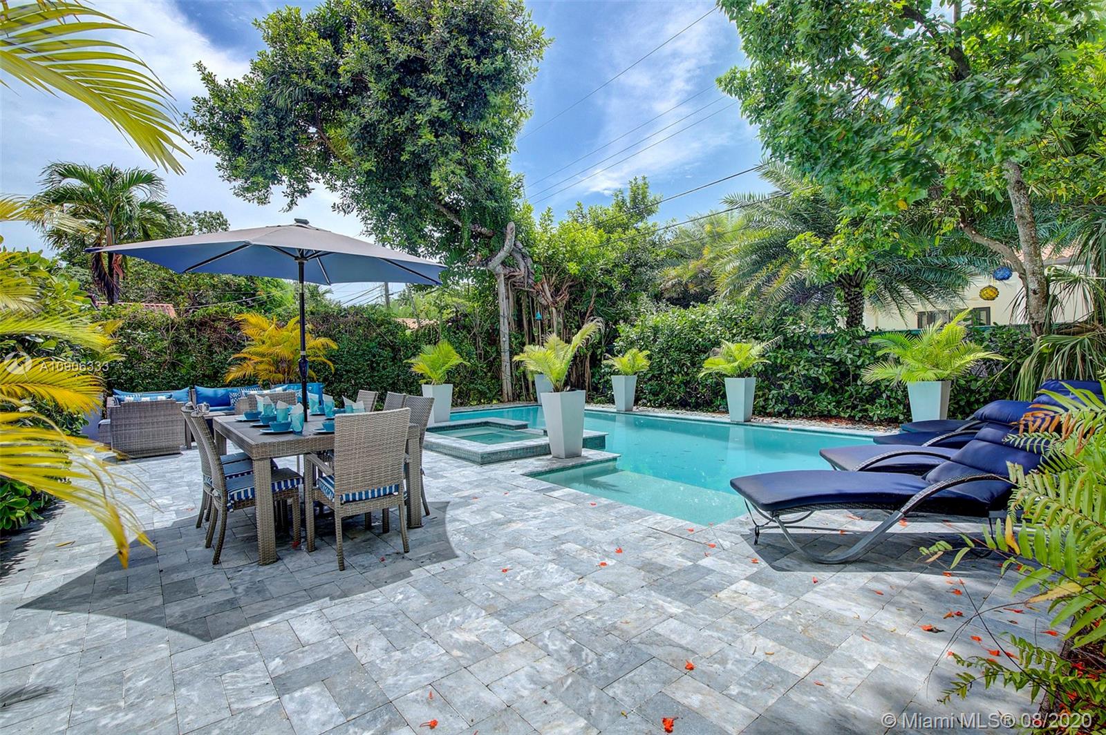 Lush and elegant tropical back yard pool oasis complementing a three bedroom two bath home from the 1940's that has been completely renovated but has kept the charm. The home boasts all the updated tech (Nest, Ring) while still featuring the original front door and hardwood floors. Heated Saltwater Pool and Spa, fire pit, mounted outdoor Smart TV to watch from the lounge chairs or while taking a swim. Living room features an original fireplace and vintage front door. Impact throughout including garage door except front door (has shutters). Everything is 5 years old or less, Roof, Plumbing, HVAC, Electrical, Kitchen, Bathrooms, Pool/Spa, plus a one car garage and NO septic! Showings by appointment and only to serious qualified Buyers.