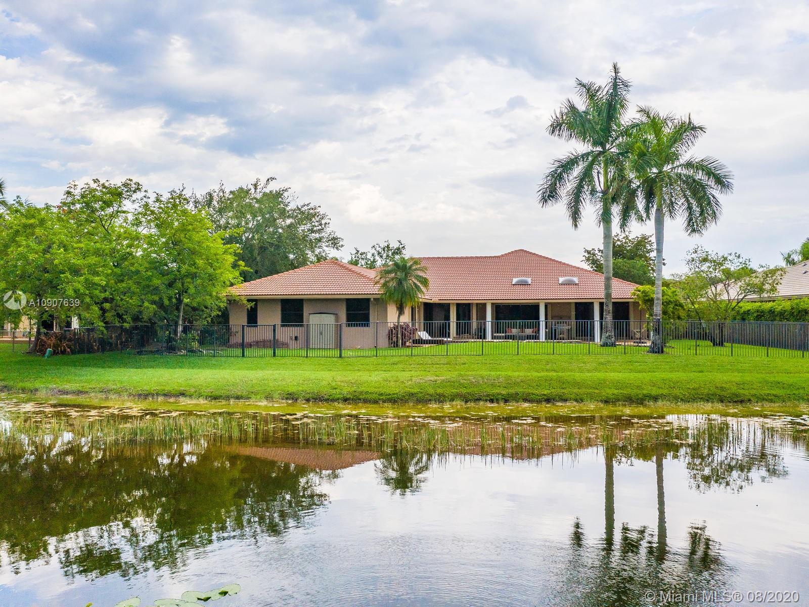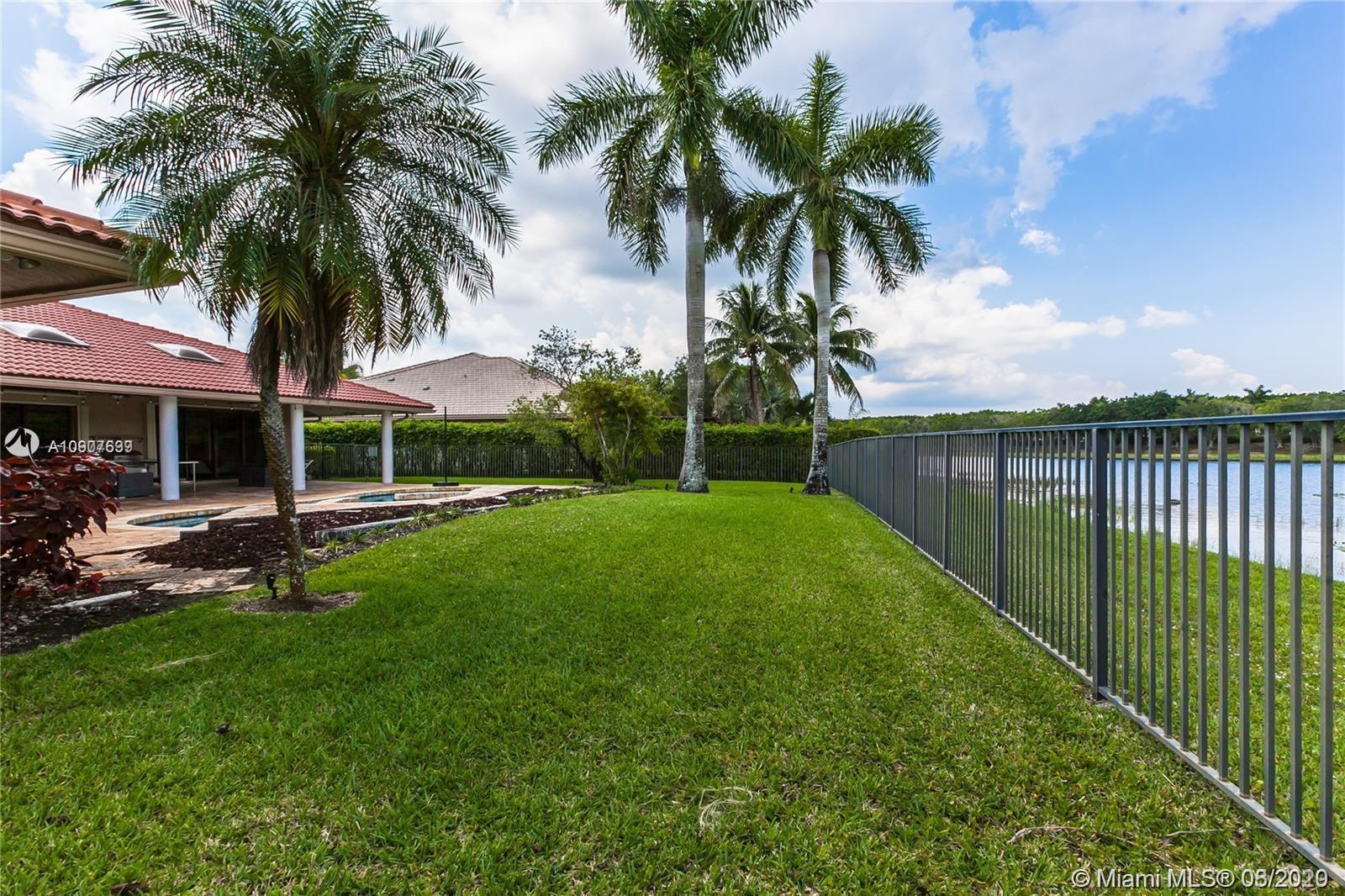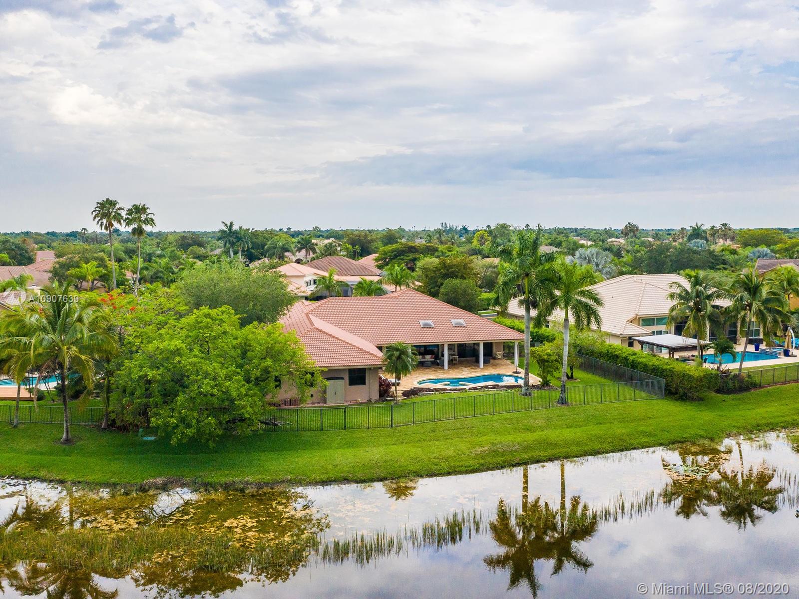 Enjoy this Stunning open floor plan with 4 bedrooms, 3.5 baths, office, plus a 30 x 31 Bonus game room! Beautiful spacious kitchen with granite countertops, huge island, double oven, breakfast area, pantry and much more! Huge master bedroom with sitting area, overlooking lake and pool. Electric Blinds in Living room and Master bedroom with blackout just installed! Perfect home for entertaining, amazing covered patio with travertine floors, meticulously kept landscaping, serene water views, can't ask for more! Very Private lot, rare find! Located in the Heart of Weston, A+ school district, family oriented community, perfectly maintained with brand new paved roads and Palm Trees! Close to everything!