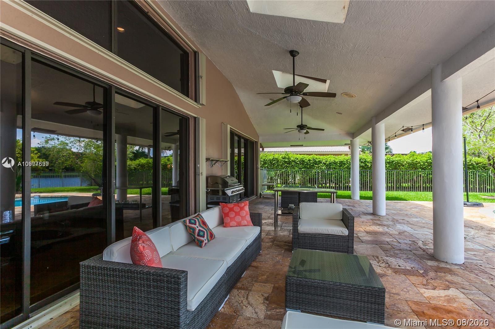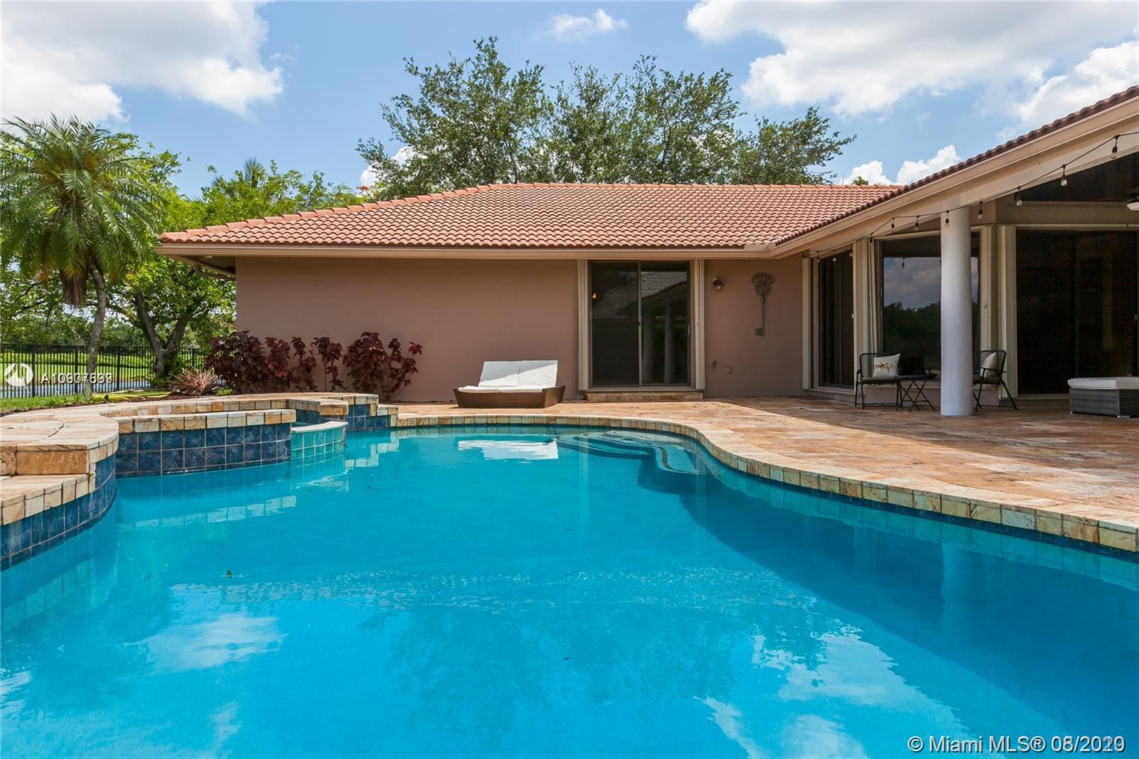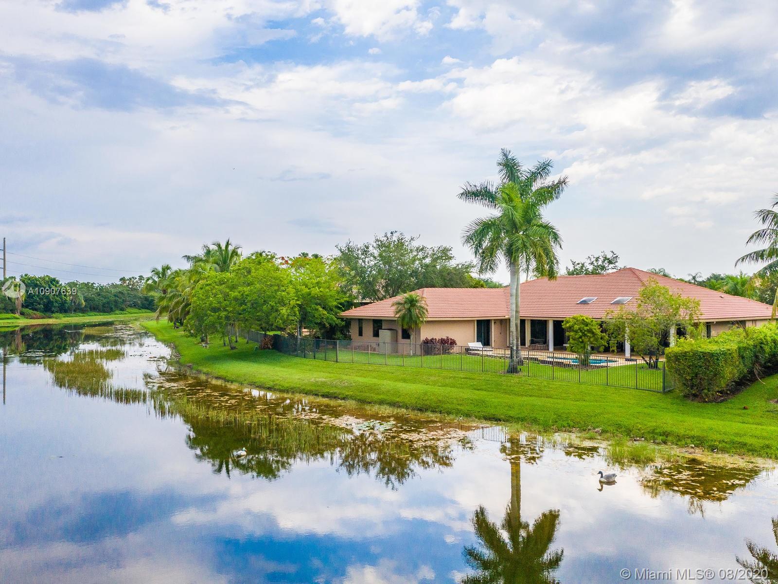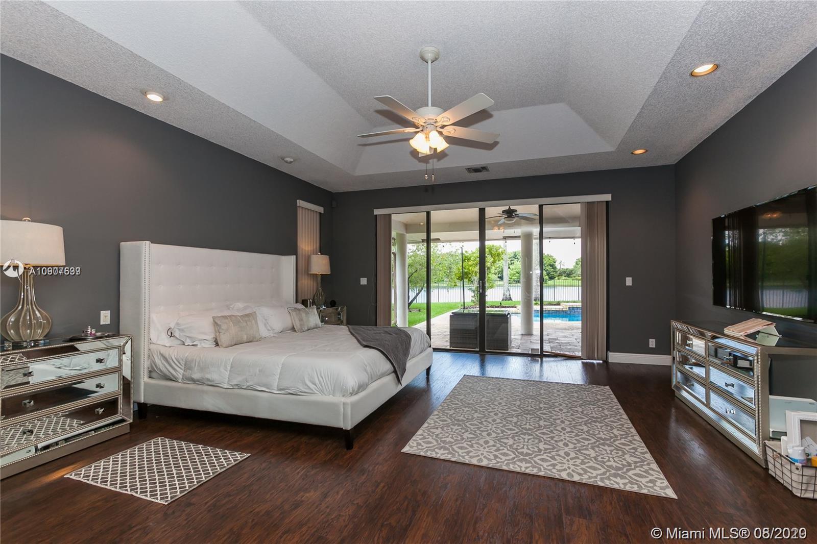 Enjoy this Stunning open floor plan with 4 bedrooms, 3.5 baths, office, plus a 30 x 31 Bonus game room! Beautiful spacious kitchen with granite countertops, huge island, double oven, breakfast area, pantry and much more! Huge master bedroom with sitting area, overlooking lake and pool. Electric Blinds in Living room and Master bedroom with blackout just installed! Perfect home for entertaining, amazing covered patio with travertine floors, meticulously kept landscaping, serene water views, can't ask for more! Very Private lot, rare find! Located in the Heart of Weston, A+ school district, family oriented community, perfectly maintained with brand new paved roads and Palm Trees! Close to everything!