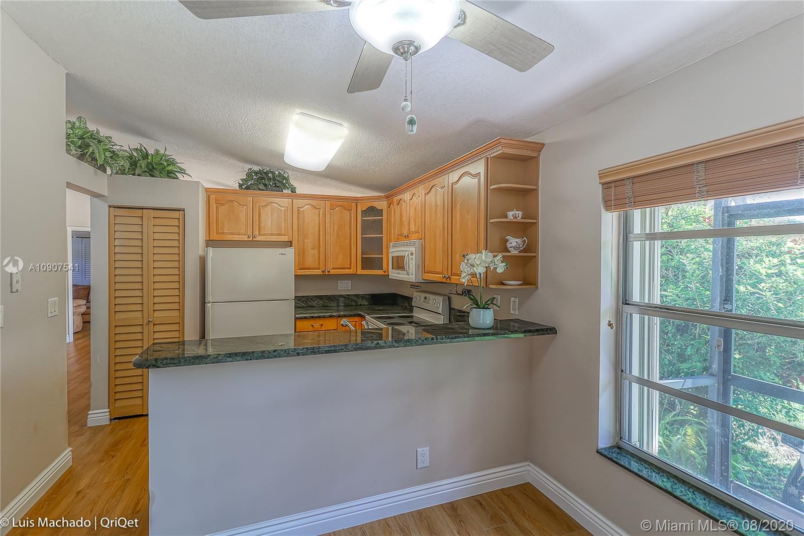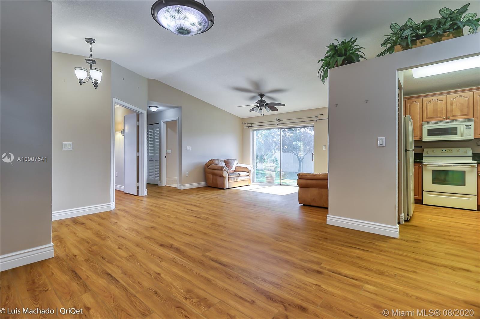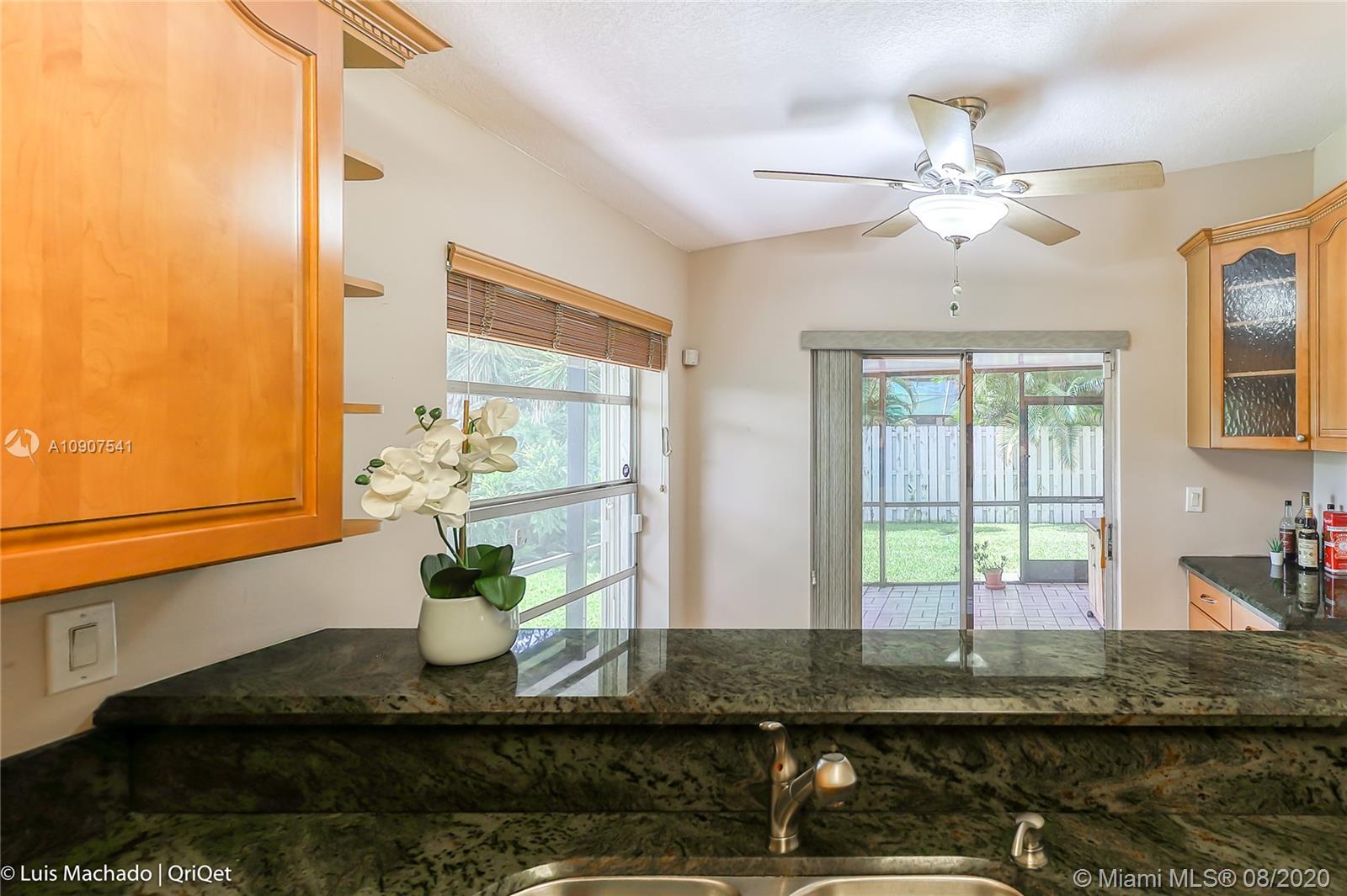 Come and see this great 3 bedroom 2 bath home. Nice newer wood laminate flooring throughout the house, master bathroom has been tastefully remodeled. Kitchen features oak wood cabinets and unique granite counter tops. Cover patio opens up to the nice a great size fully fenced yard were you can entertain and have the kids play securely. Roof was redone after Wilma. House located across from community pool.