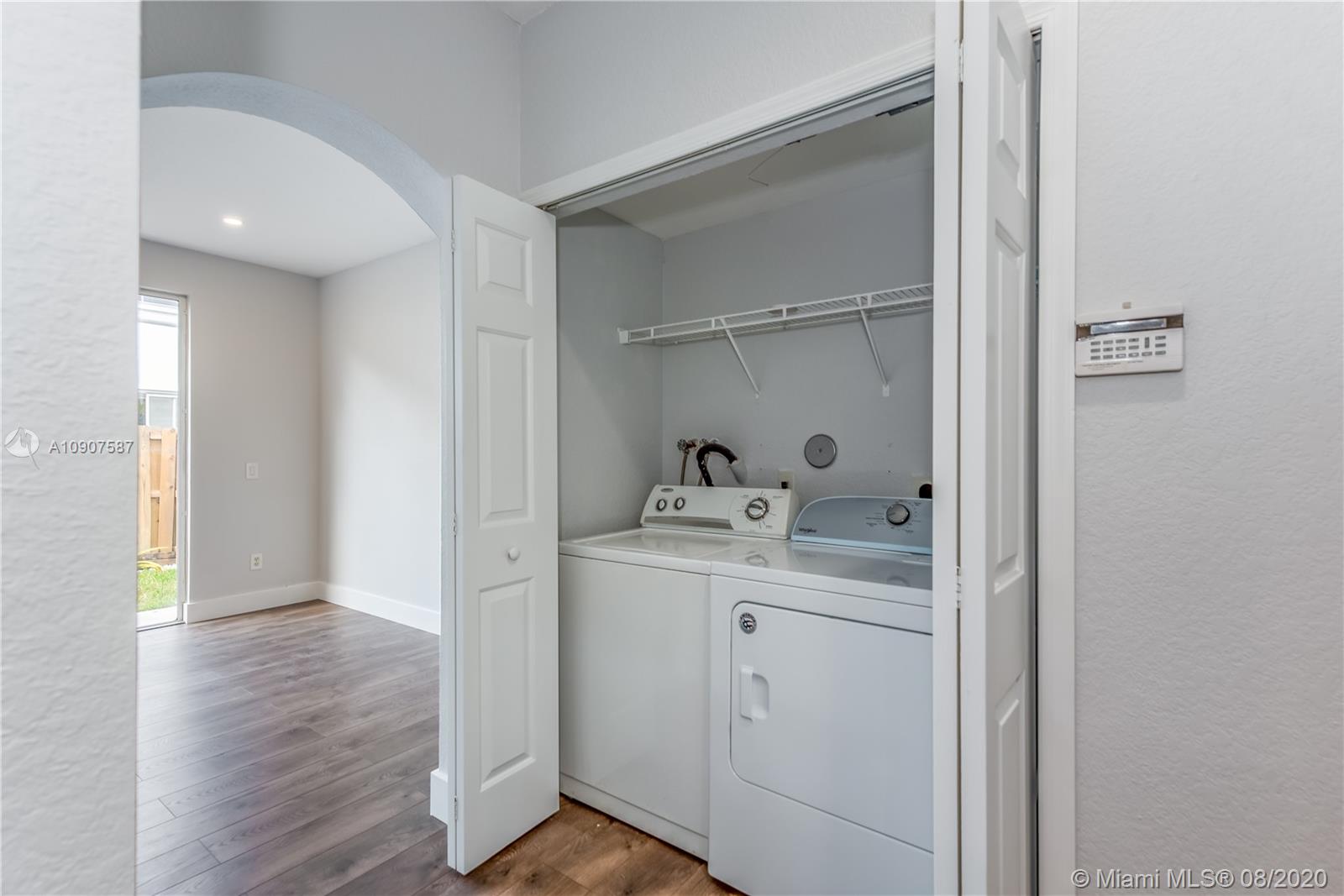 Most beautiful townhouse in Villas at Nautica! This gorgeous, charming and bright two-story townhouse in Miramar would welcome you upon entering the front door. Spacious living room and beautifully remodeled kitchen with new stainless steel appliances and large counter quartz kitchen table. 3 bedrooms and 2 1/2 beautiful modern bathrooms fitted with new vanities. Fenced backyard, hurricane shutters and wonderful new wood floors throughout the property. Remodeled with a tasteful design. Modern brushed gold finishes in the kitchen and guest bath. Located in a gated community with 24 hrs security, clubhouse with large pool, kids pool, gym, children's playground. Near Grade A schools, plazas, regional parks and minutes from all major roads and highways.