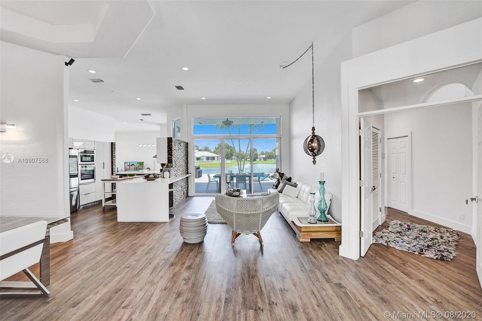 YOU FOUND IT! Weston Hills priced to sale one story home on a waterfront premium lot. Originally used as a developer's model home and as a vacation home since it was remodeled from top to bottom in 2018. 5 bed/4 bath on a triple split floor plan with amazing water views and 3 car garage. The gorgeous open concept kitchen features a huge custom made white quartz double counter top and modern white/grey dual tone cabinets complemented by a glass orange back splash. New waterproof flooring in the entire house and the bathrooms featuring no step down walk-in showers, main bath with double ceiling shower heads and barn glass shower door. Prepare to be amazed with a unique style pool deck made with maintenance free engineered wood and resort style glass perimeter fence. Impact windows and doors