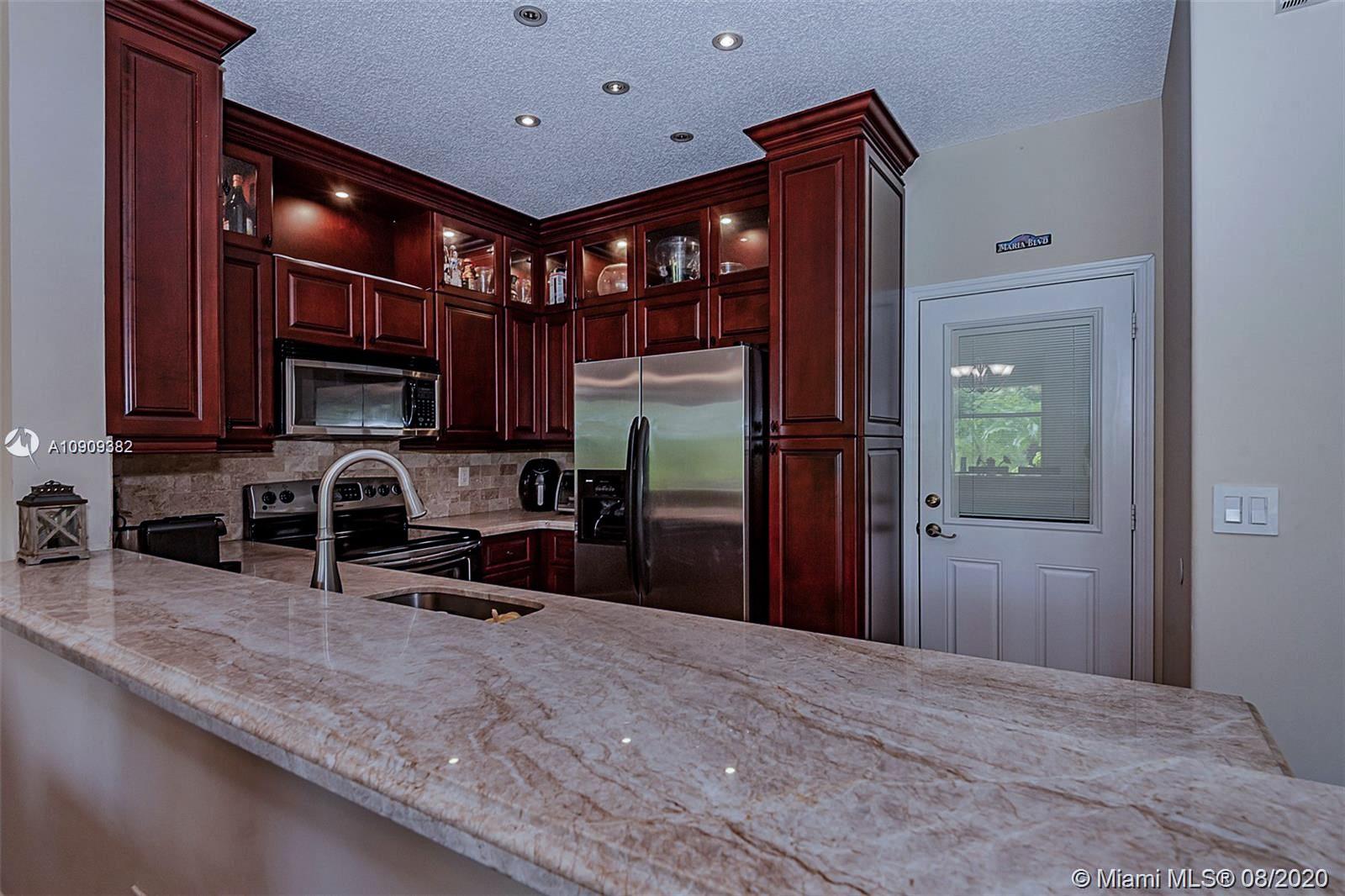 Beautiful & perfectly maintained Townhouse with 3-bdrs, 2.5 bthrs, 1 car garage. This is a rare opportunity due to the level of upgrades you will find in it. COMPLETELY UPGRADED!! Kitchen w/customized cabinetry, granite counters, SS appliances & upgraded bathrooms. The Patio was extended by 300 sqft. w/terrace & accordion shutters that enclose it from outside so, in case of a hurricane you never will lose that space and don't have to worry about your patio's furniture (no other property has a feature like this). New top of the line A/C (just 4years old) w/electric filter system, UV light & tray water sensor. The accordion shutters include a roll-down shutter at the main entrance. HOA includes cable & internet, roof repairs, exterior paint, landscaping, and amenities.