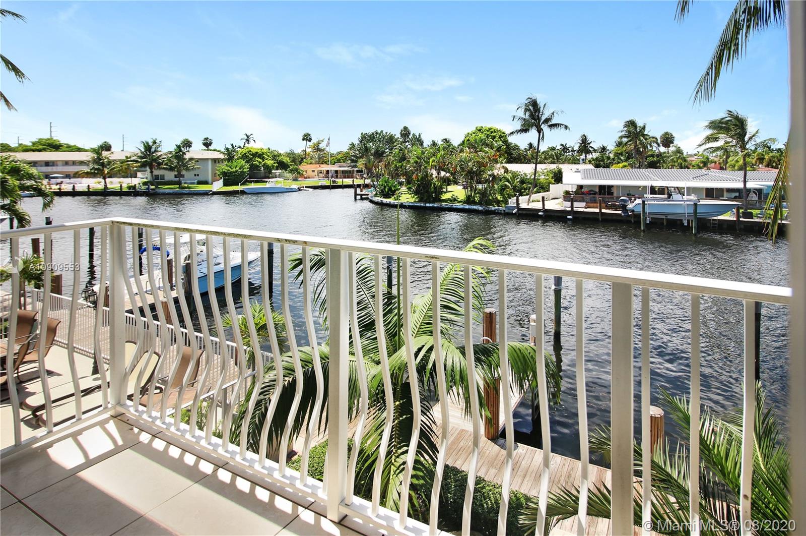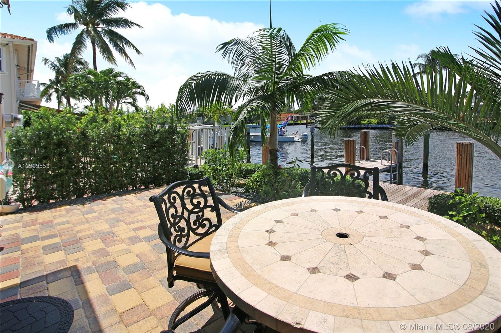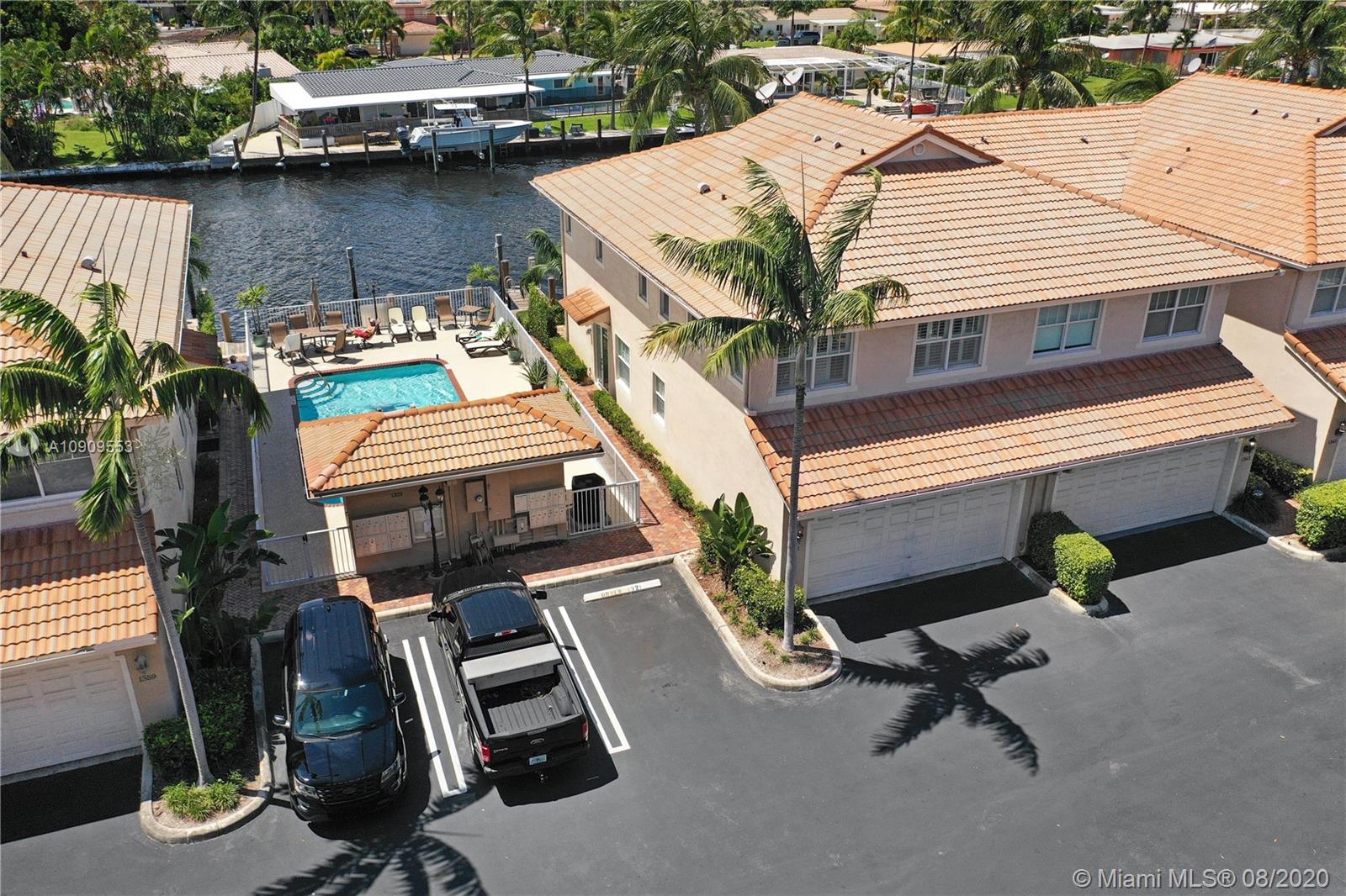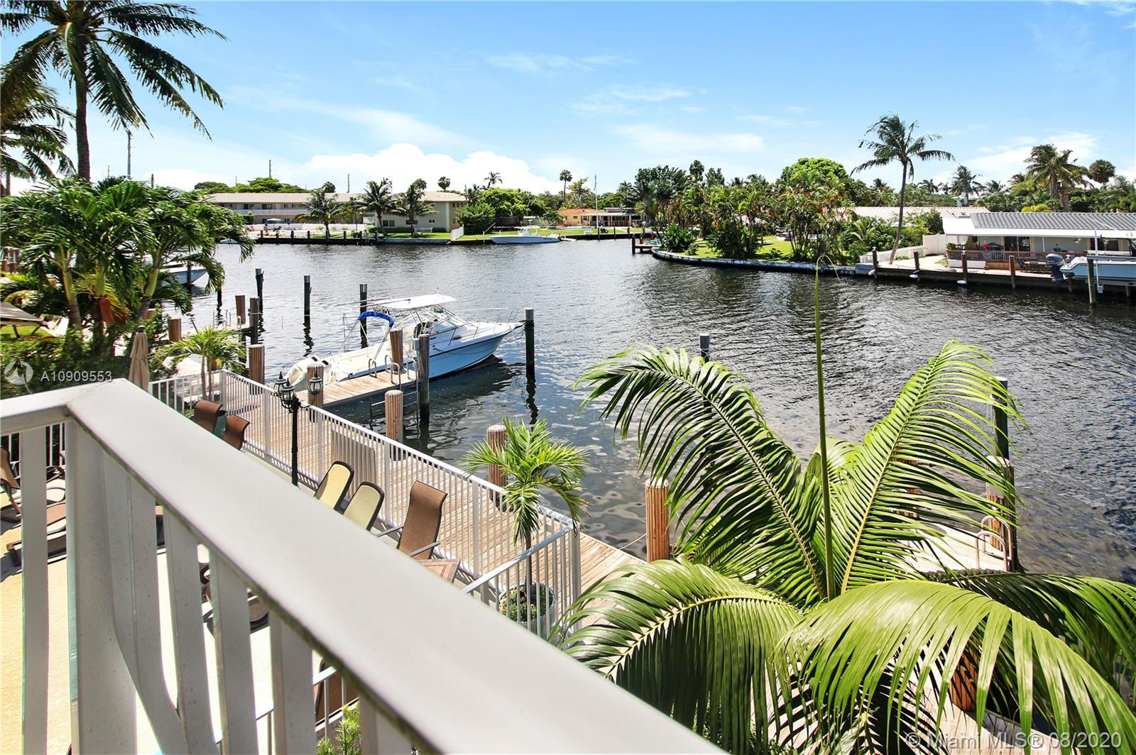 THIS absolutely gorgeous remodeled end unit town home directly on the water! Three bedroom two and half bath home comes with your personal dock right out the back door! Private gated community of only 26 homes. This home has all IMPACT WINDOWS, beautiful wood floors upstairs, plantation shutters on every window and retractable awning on patio. Kitchen has top of the line stainless steel appliances, granite counter tops, 42 inch cabinets and tons of storage! Master bedroom has large balcony with sliders, seating area, his and hers walk in closets, and completely updated bathroom. This home also has an attached 2 car garage and community does have guest parking. Furniture can be included or purchased separately. 1 fixed bridge separates you from the inter coastal with 9.5' clearance!