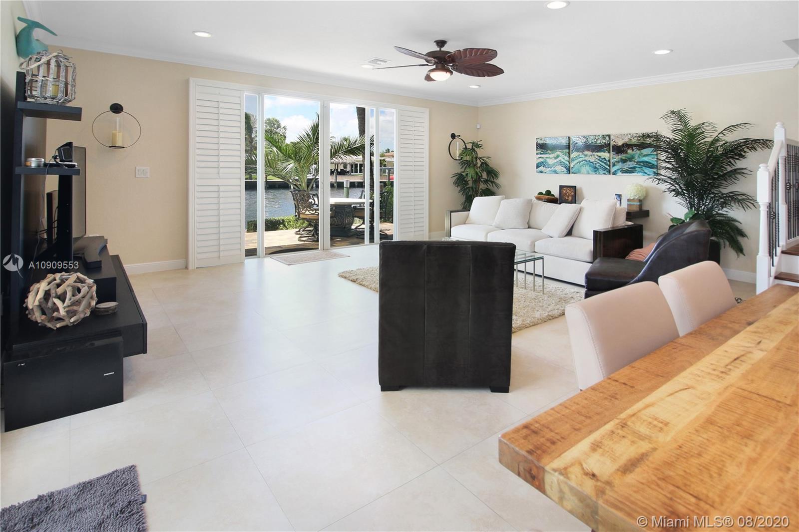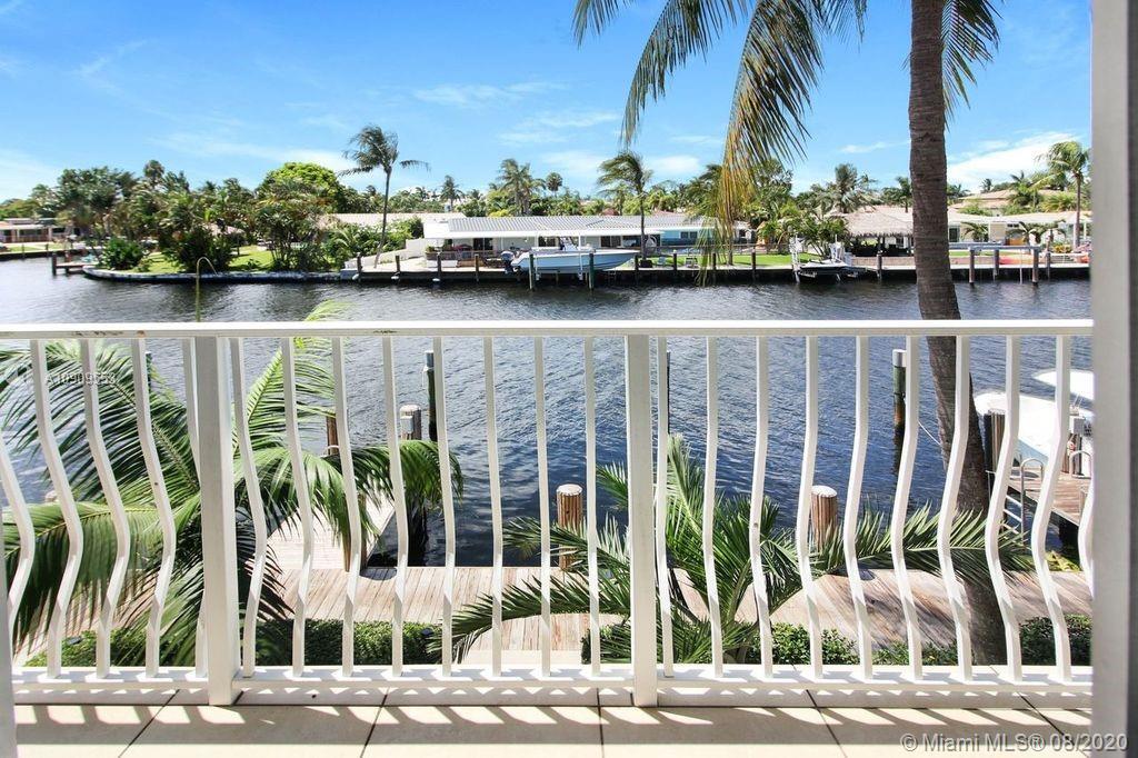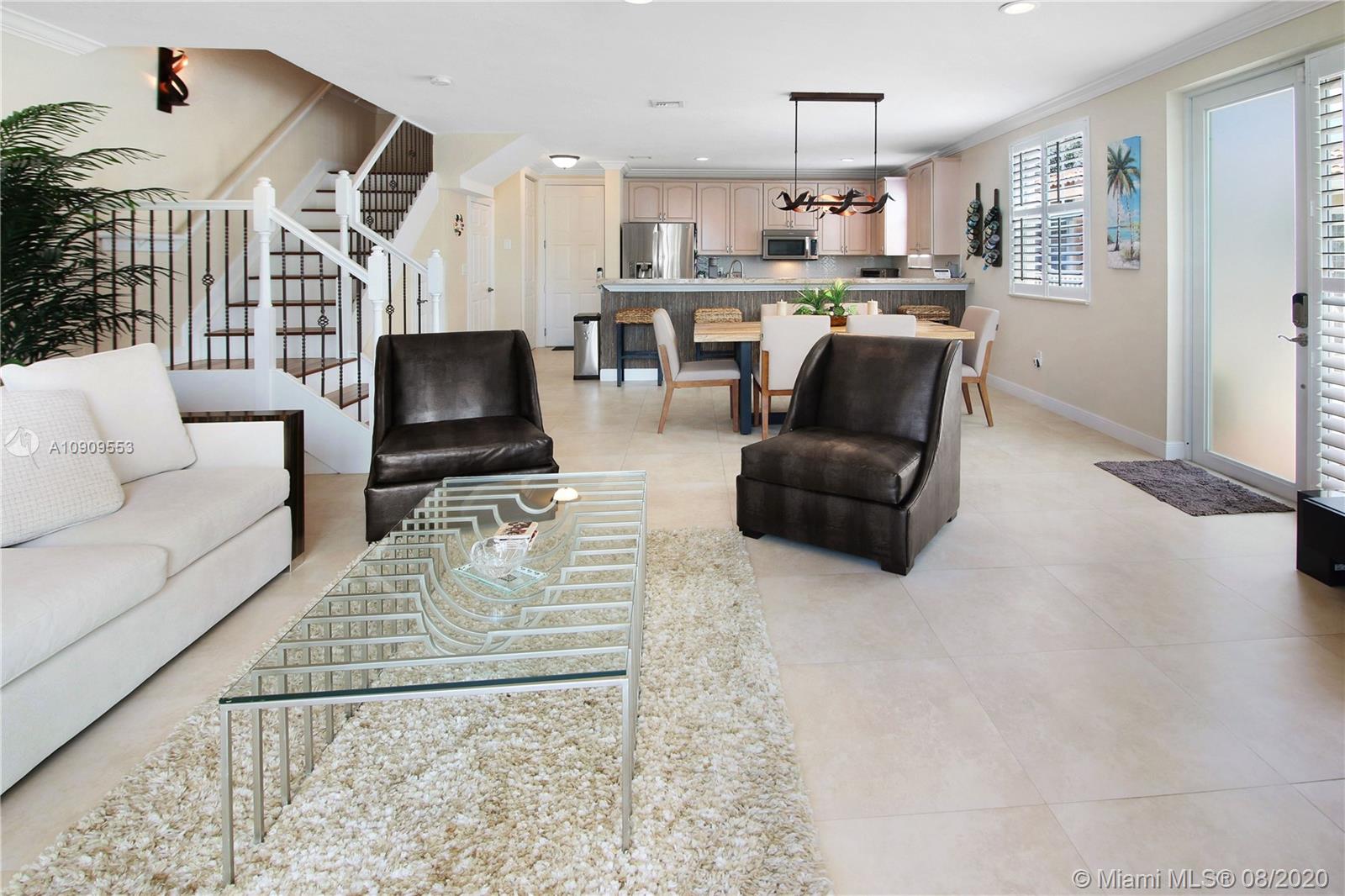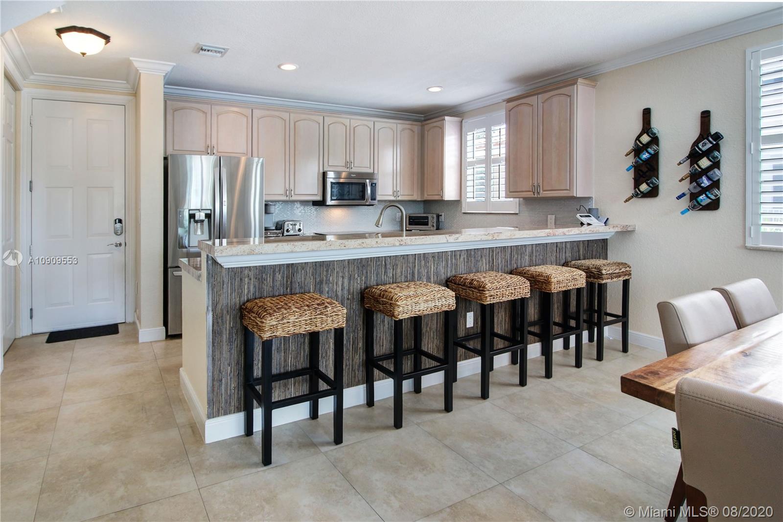 THIS absolutely gorgeous remodeled end unit town home directly on the water! Three bedroom two and half bath home comes with your personal dock right out the back door! Private gated community of only 26 homes. This home has all IMPACT WINDOWS, beautiful wood floors upstairs, plantation shutters on every window and retractable awning on patio. Kitchen has top of the line stainless steel appliances, granite counter tops, 42 inch cabinets and tons of storage! Master bedroom has large balcony with sliders, seating area, his and hers walk in closets, and completely updated bathroom. This home also has an attached 2 car garage and community does have guest parking. Furniture can be included or purchased separately. 1 fixed bridge separates you from the inter coastal with 9.5' clearance!