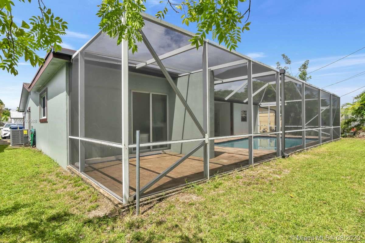 Enjoy Florida Life in this 4 Bed (Garage Conversion is 4th Bedroom & Iis Tiled) 2 Bath 1 Story POOL Home in Central Miramar-INTERIOR FEATURES: Custom Dark Cherry Wood Cabinets/Granite Counters/Stainless Appliances in the Kitchen (W/pass thru to Pool Area)•Wood Floors in All Bedrooms•20" Tile in Common Areas•6" Baseboards•Crown Molding Throughout•Custom Mirrored Walls•Interior Laundry•BRAND NEW A/C System!•EXTERIOR FEATURES: Screened Pool w/Oversized 12x12 Paver Pool Deck•Fenced Yard•Composite Fascia Boards•Close to shopping and entertainment•