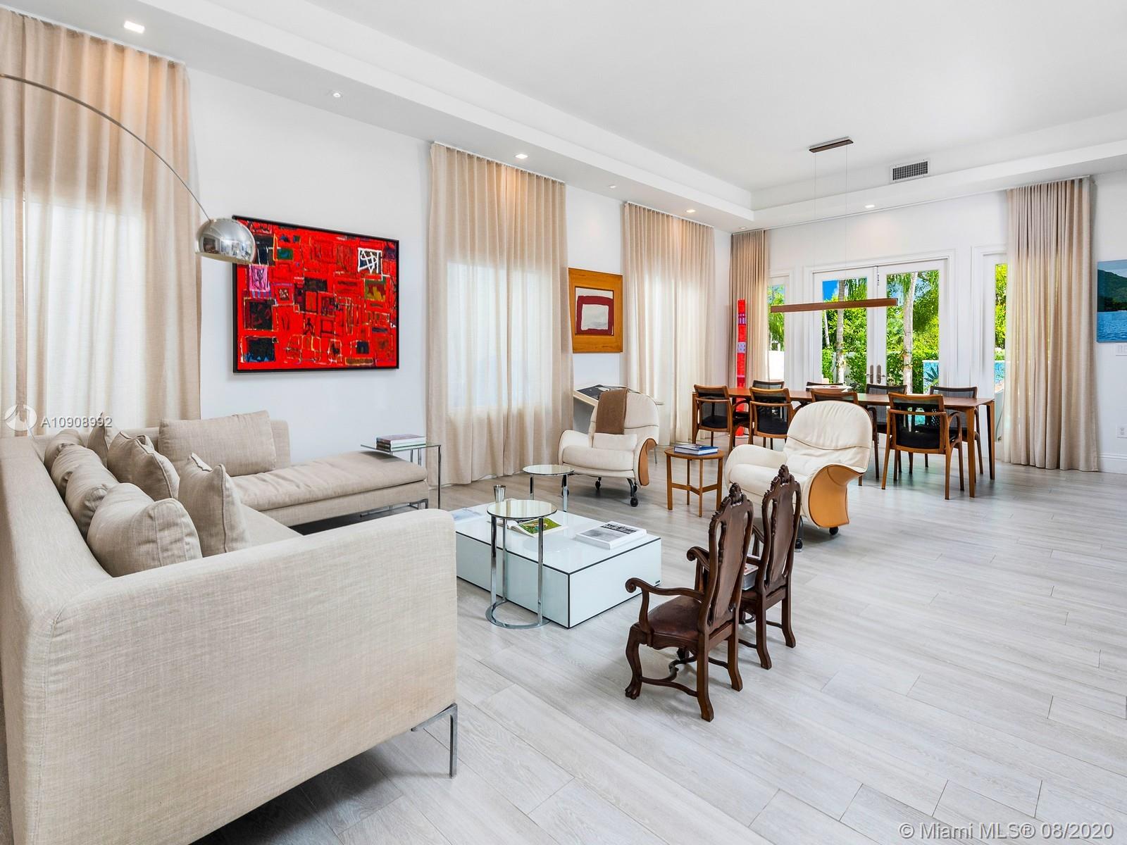 Walk to the beach from this completely renovated Key Biscayne gem which offers five bedrooms plus maid's quarters and six full bathrooms and a stunning private pool. Beautiful and bright floor plan with full guest suite on 1st floor. Living room has been enhanced with two large windows giving extra light. Large Family Room adjacent to kitchen area and a Full cabana bathroom. Upstairs you have 4 bedrooms and 4 full bathrooms. Master suite has its a balcony & large walk-in closet. Master bath offers shower, Jacuzzi, double sinks. Enclosed garage. Grand Bay Villas is a gated privately-owned community with only 36 houses. The community offers its residents a private park with kid's playground, plus an optional Club Membership with restaurant, pools and beach service.