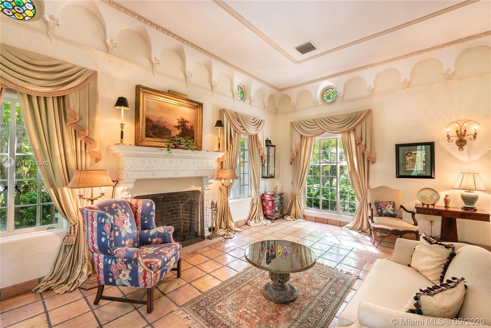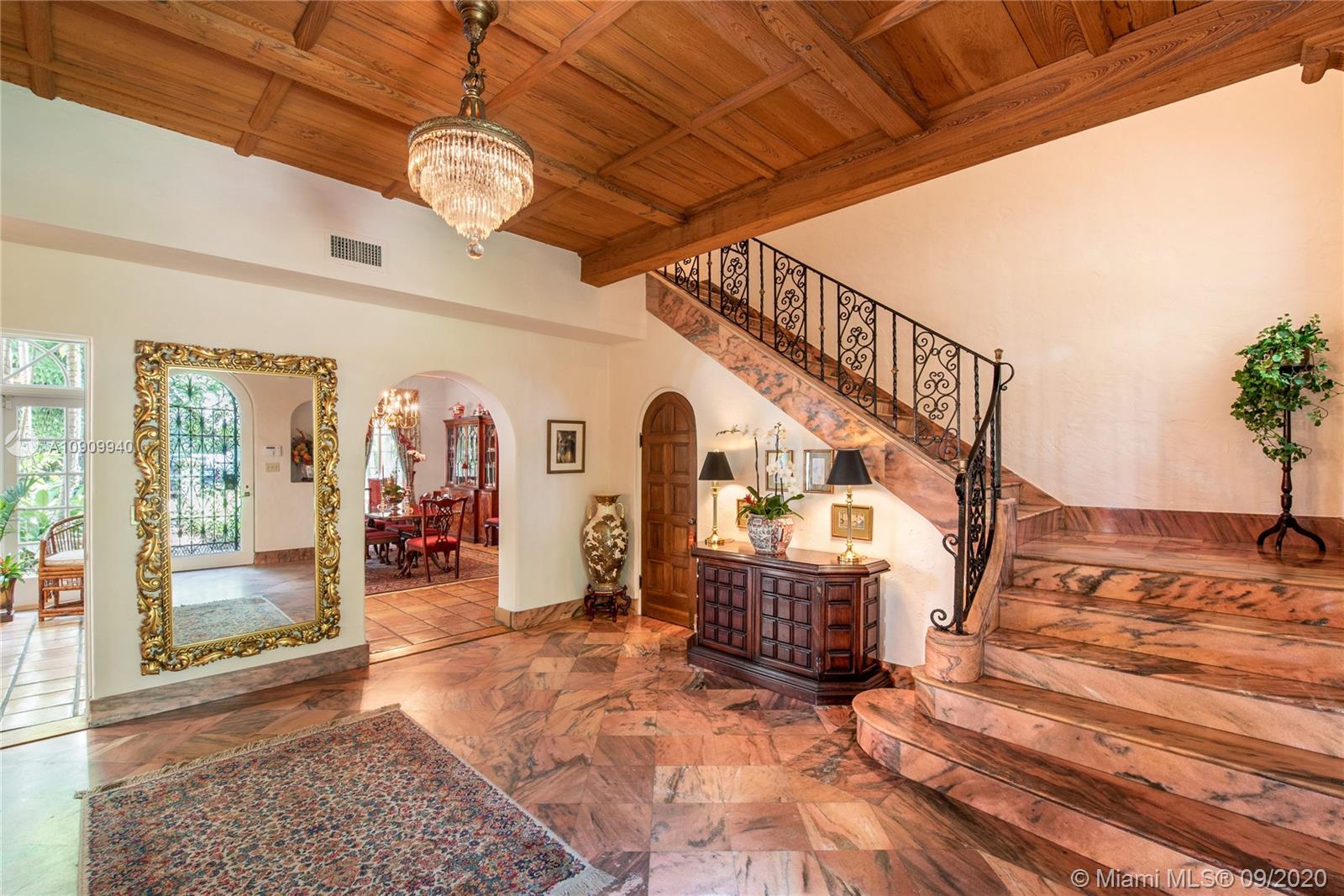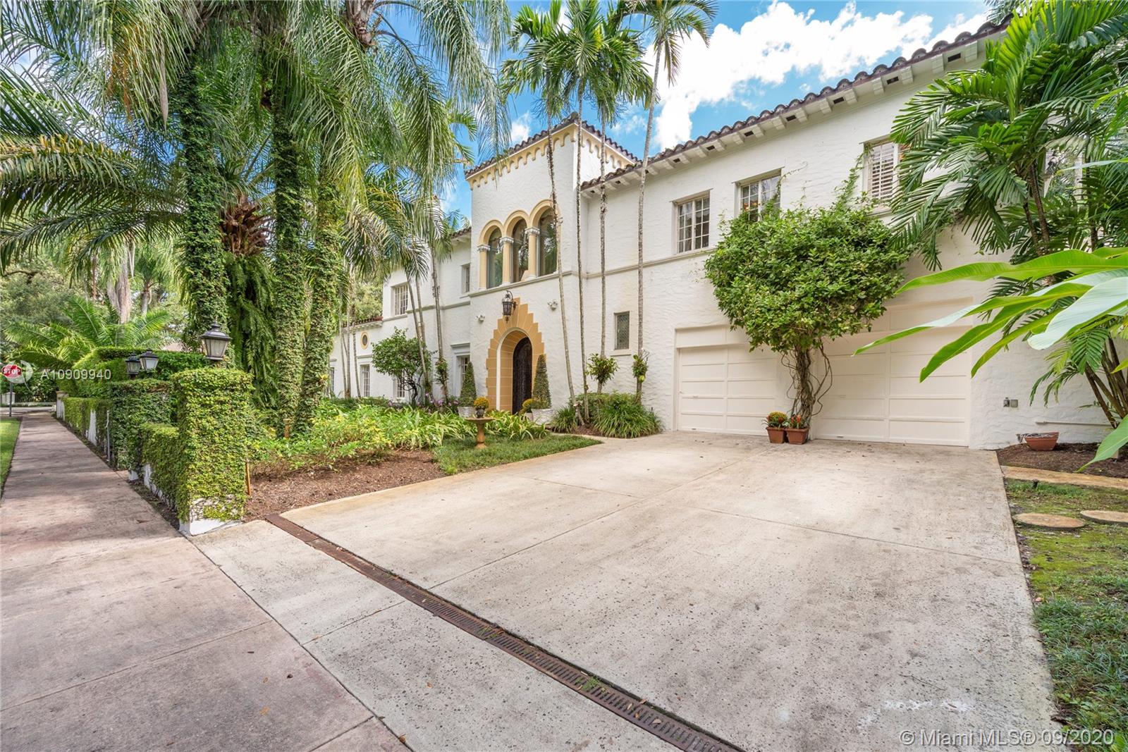 This Mediterranean classic, built by renowned architects, John and Coulton Skinner, has almost 5,000 adj. sq. ft. on a 17,500 sq. ft. lot. The 45-ft ballroom with a huge fireplace encourages entertainment on a grand scale. The foyer on the Toledo Street side has a sweeping staircase/marble floors. LR has12' high coffered ceilings. The Garden room opens to a tranquil courtyard with a fountain (room for a pool). Formal DR next to kitchen/breakfast rm. Half bath under the stairs. 2-car garage. Upstairs Master Suite has a fireplace, sitting room, plus walk-in closet. Also, find 4 bdrms/2 baths, and a screened porch. This Merrick-era Mansion, steps from the Granada Golf Course, is unique and exquisite in every detail.