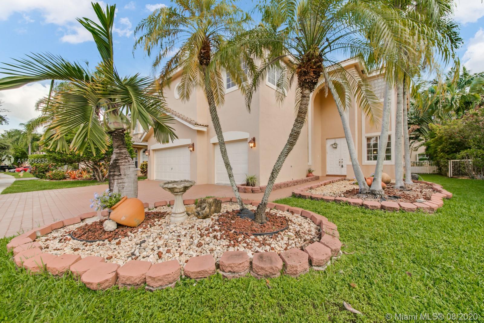 Beautiful 2 story POOL home in the gated community of Pembroke Shores.The home features 6 bedrooms (Huge Master upstairs w/sitting area)+open loft and 4 full bathrooms.One bedroom & bathroom are on the ground floor. Enjoy family gatherings and cook delicious meals in the beautiful kitchen.3 car garage and large paved driveway and patio.TWO newer A/C units,volume ceilings, and spacious laundry room.The backyard area with its inviting pool and private oasis is waiting to host large family events or small late night stargazing.This community offers its residents two 24 hour guarded entrances and an additional resident’s entrance, children's Playground