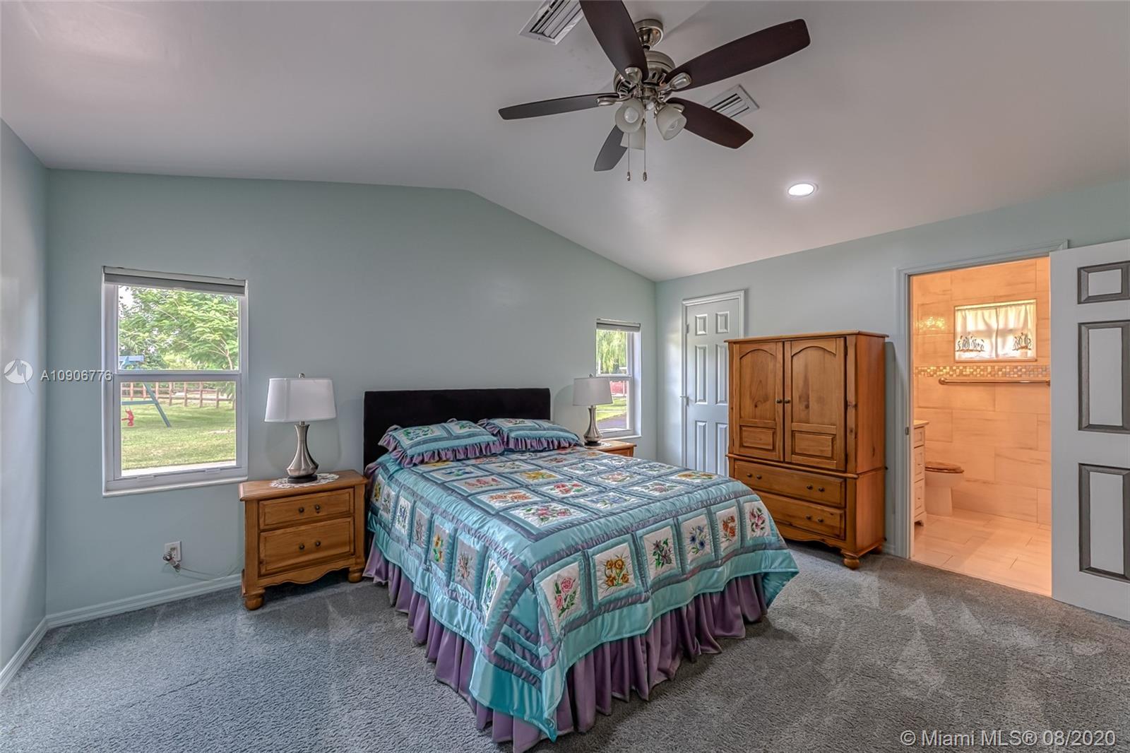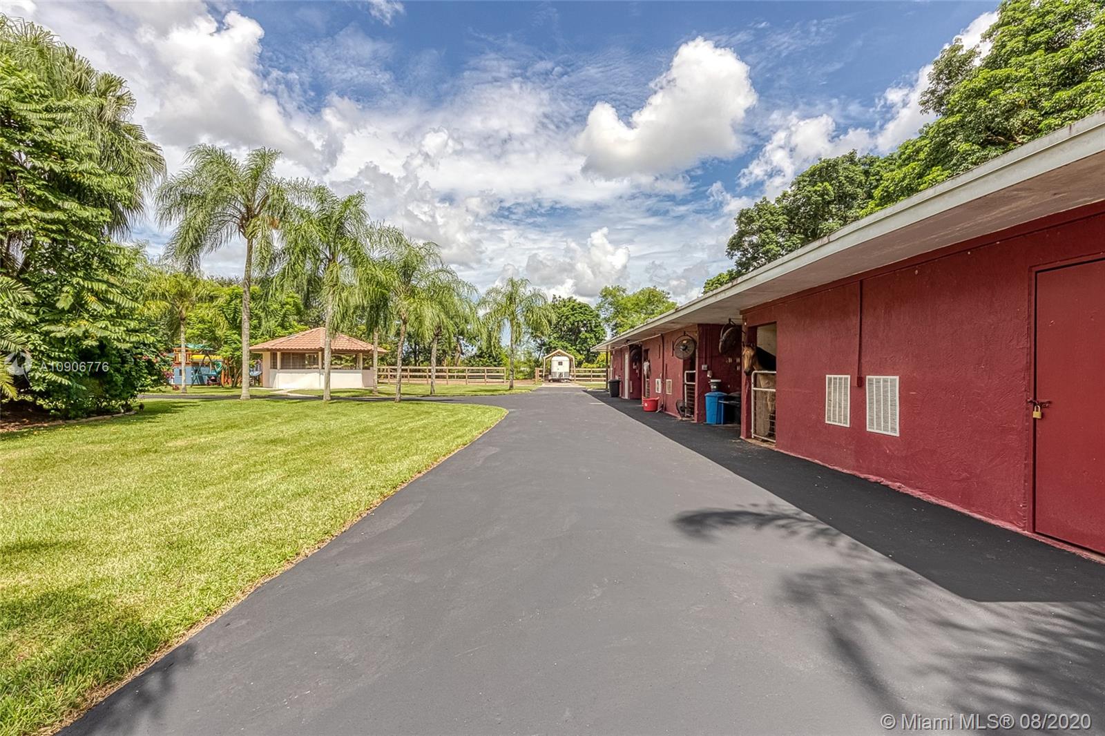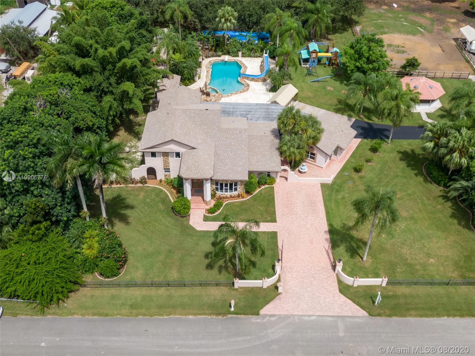 Sprawling Equestrian Estate Home that sits on over 2 fenced-in acres. Magnificent home that was fully remodeled in 2013, extravagant kitchen with custom cabinets, granite counters/backsplash, island, and ss appliances. A majestic wooden staircase leads up to the Master Suite that exhibits a massive bathroom with spa tub/oversized shower, and private bathrooms. Downstairs enjoy the 2 additional suites with private baths, 3 bedrooms, hobby room/office or additional bedrooms. Windows and doors are hurricane impact. French doors lead out to the resort style pool deck with a heated pool, slide and diving board, built in bbq, playground, gazebo, and additional storage buildings. Horse Lovers enjoy a 6 stall stable with 2 breezeways which one stall has been converted to an a/c tack room.