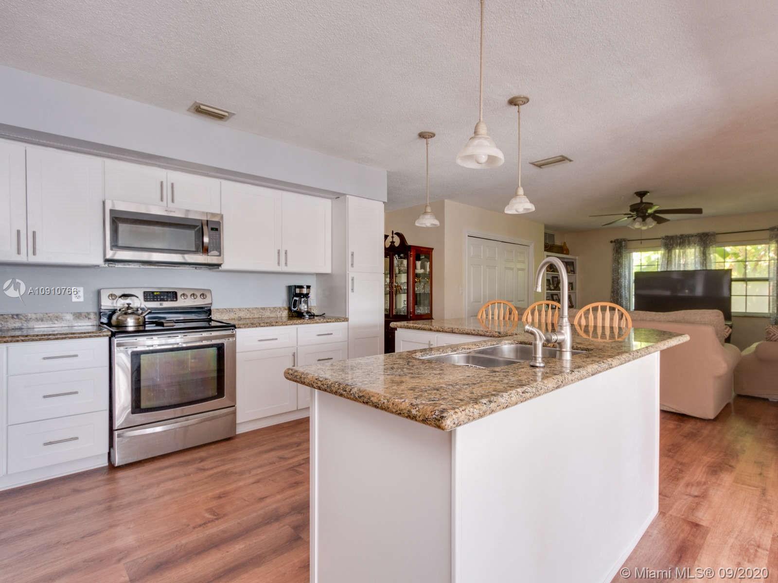 Waterfront home in Plantation on 1/3 acre. New PVC & Perma Plumbing under slab New Shaker White soft close cabinets, new flooring 5 ton AC 50 gallon WHTR roof 10/2013 Granite counters Large Island Formal living & Dining room eat in kitchen family room fresh paint in & out oversized two car garage used as storage and 4th bed. Laundry and additional storage room. Double front Fiberglass dr. Three bed two bath Large screened in patio, pool fenced yard Fruit trees circular drive 4 zoned sprinkler garage dr. opener & keypad 7 ceiling fans Stainless steel appliances, service contract, tented with termite warranty & lawn service. Walk to Fig Tree & Heritage Parks Close to all schools and amenities This is a nature lover and artist dream home in great location with a beautiful private water view