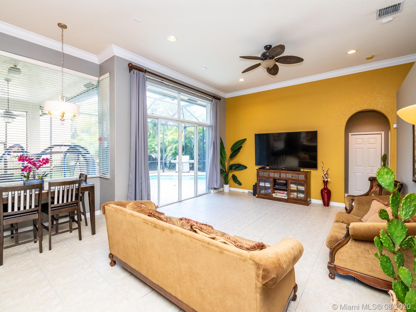GORGEOUS ONE STORY POOL HOME IN SUNSET LAKES! THIS HOME FEATURES FOUR BEDROOMS PLUS OFFICE/ 5TH BEDROOM AND A THREE CAR GARAGE. TILE FLOORING IN THE MAIN LIVING AREA, WOOD LAMINATE FLOORING IN DINING ROOM AND BEDROOMS, VOLUME CEILINGS AND BEAUTIFUL DETAILS THROUGHOUT. LARGE OPEN KITCHEN WITH CORIAN COUNTERTOPS, SS APPLIANCES, REAL HARDWOOD CABINETRY, SNACK BAR COUNTER. LARGE MASTER SUITE OVERLOOKING A BEAUTIFUL PRIVATE BACKYARD WITH A SCREENED IN FREE FORM POOL, COVERED OUTDOOR DINING AND SITTING AREAS WITH ALSO A SIDE GRASSY AREA. BACKYARD IS COMPLETELY FENCED-IN, HOME IS PROTECTED BY ACCORDION SHUTTERS AND FULL HOUSE GENERATOR. GREAT GATED COMMUNITY WITH 5 STAR AMENITIES, SCHOOLS, SHOPPING, DINING AND PLACES OF WORSHIP. VIRTUAL TOURS, FACE TIME TOURS OR VIDEOS AVAILABLE UPON REQUEST!