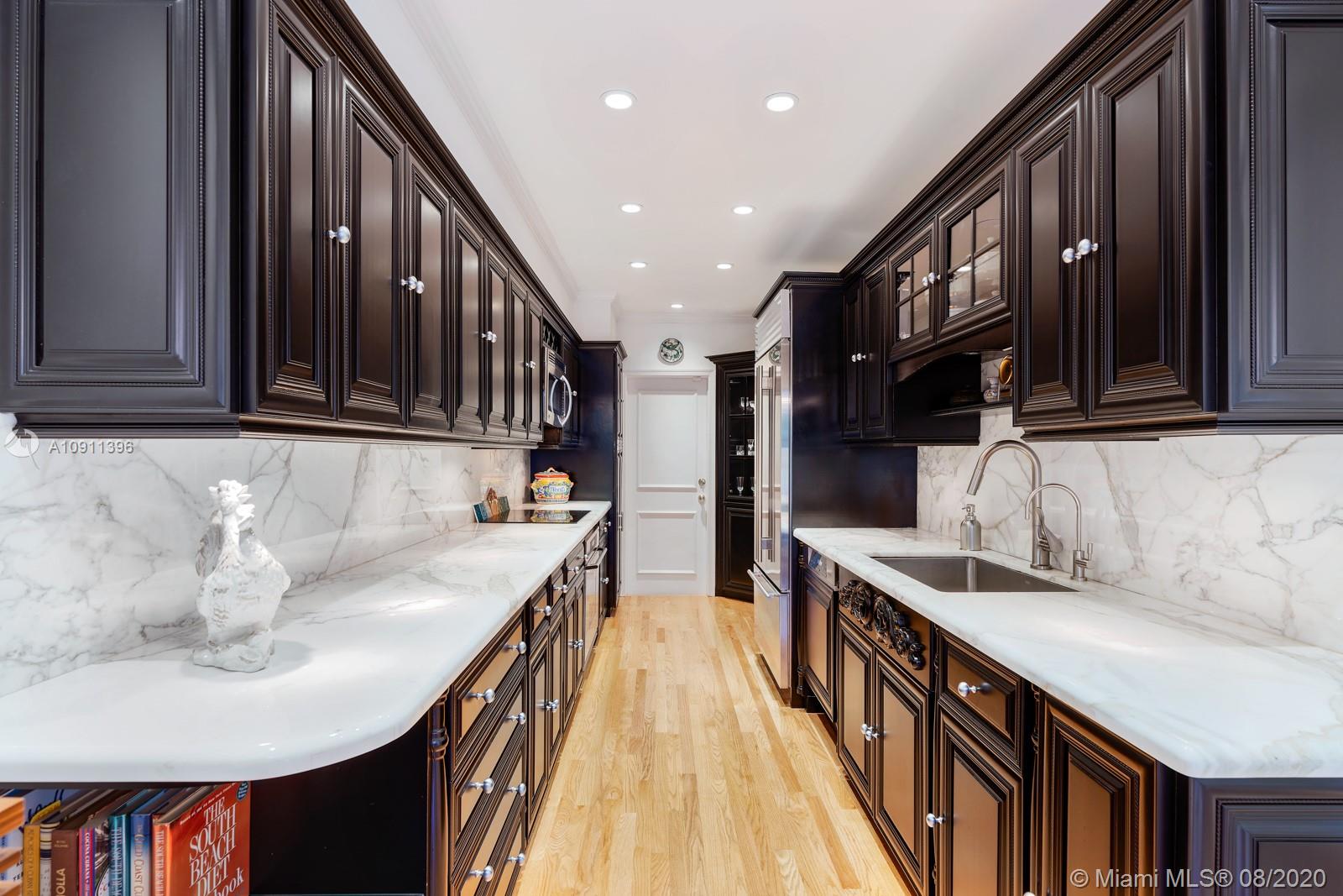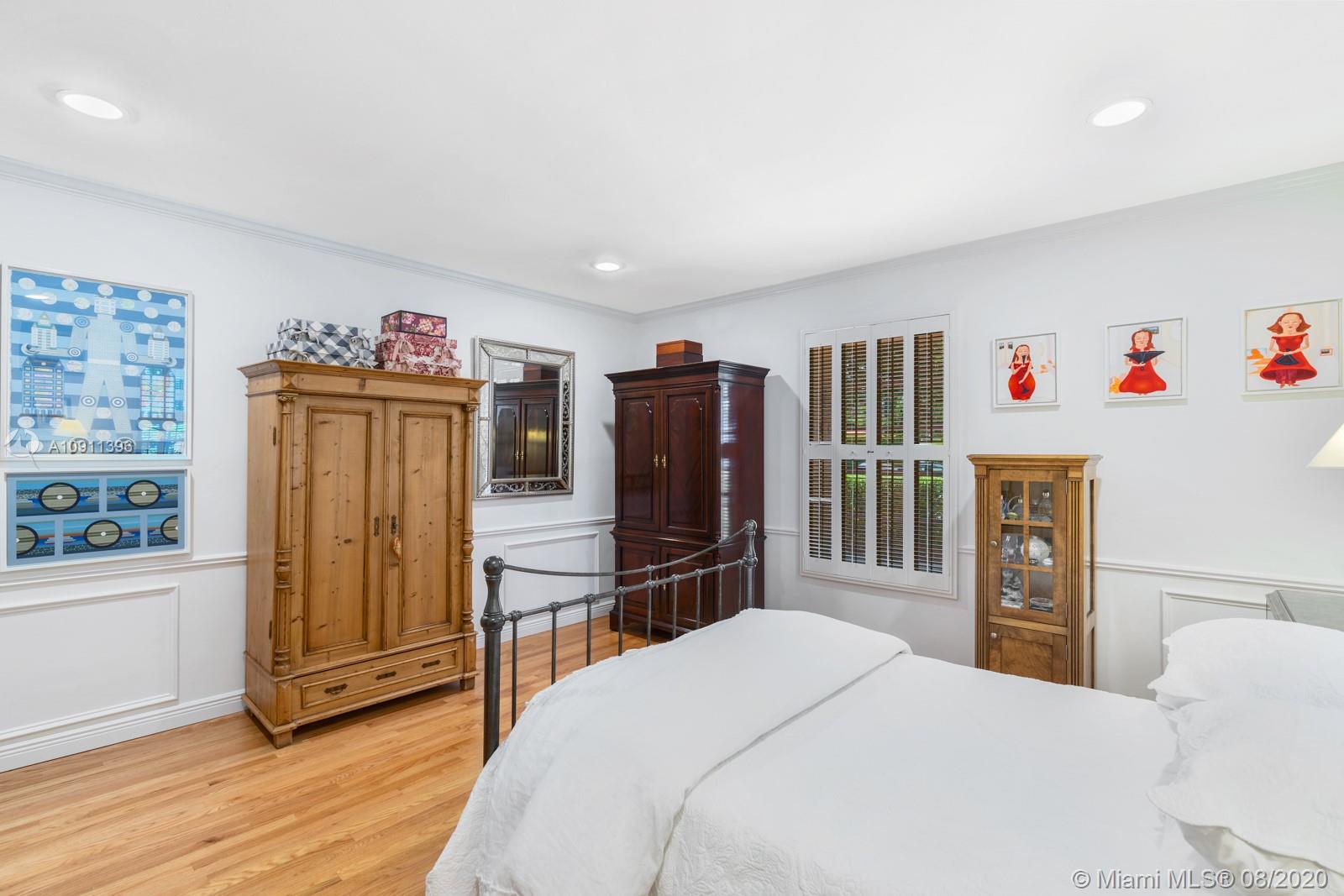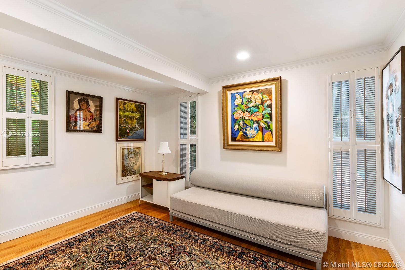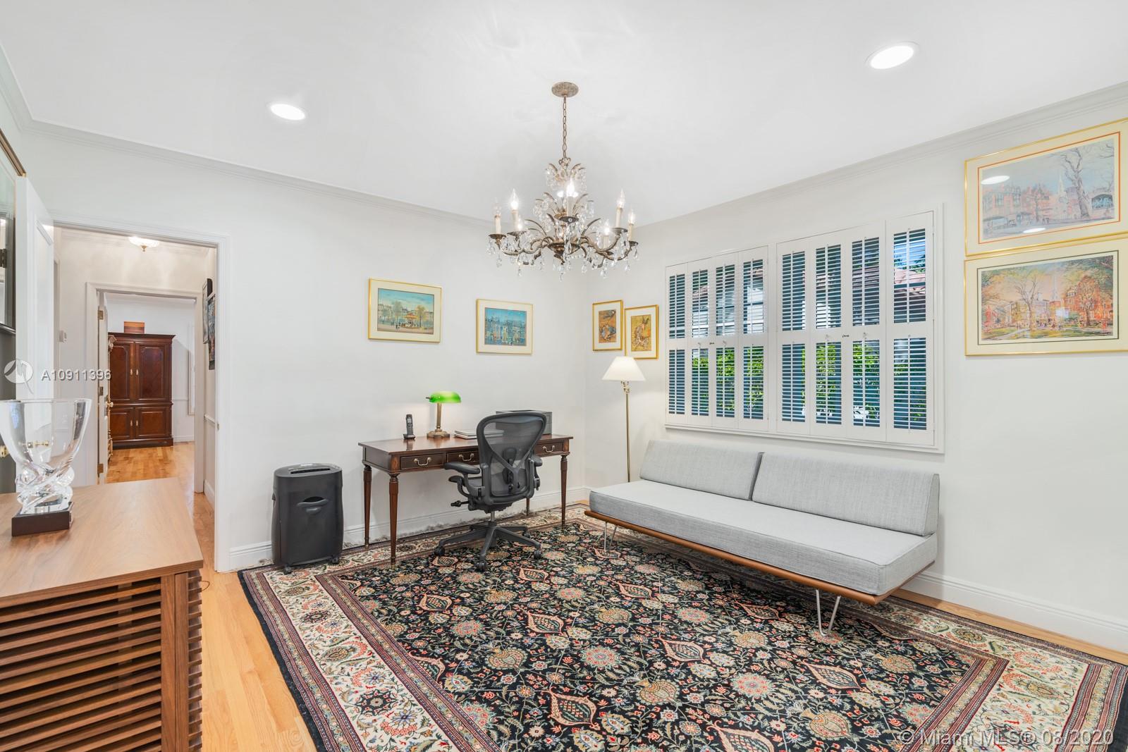 South of France inspired Jewel box home, turn-key in central Gables, a short walk to restaurant/galleries/shops/cinema/Biltmore/Venetian Pool/golf. One story original details, fully and lovingly restored & updated. Brick driveway and iron gate courtyard lead to foyer and spacious living room. Statuary marble and elegant black wood kitchen features top of the line appliances. Sunny breakfast/Dining Room. Covered patio, sparkling pool and private garden. 3rd room currently used as office/media but can easily add closet. New: IMPACT, bathrooms, wood floors throughout, Sub-Zero refrigerator, LG washer/dryer, Miele dishwasher. 2015/2016 roof/ac/gutters/electric and garage door. Appraiser sketch Living Area is 1,834 sf and Total Area is 2,381 sf. Five chandeliers are excluded.