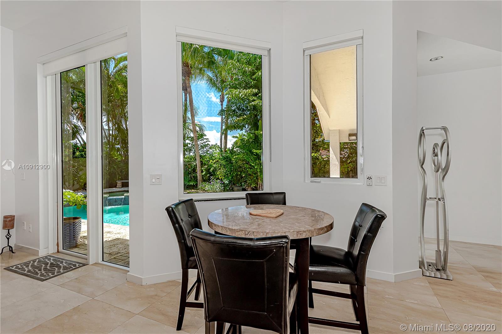 Great location on a quiet street, #D Matterport tour available with floorplans, newer construction 1 story contemporary design home with high vaulted ceilings and marble floors. This home features 4 Bedrooms (4th bedroom has no closet) 2.5 Bathrooms, 2 car garage and pool. Impact windows throughout, open floor plan with large kitchen, Quartz counter-tops and stainless steel appliances. Split floor plan, enormous master suite with waiting area, roman tub and walk-in-shower. Large pool with fenced backyard, large front driveway with space for at least 6 cars. New A/C and freshly painted. Easy to show.