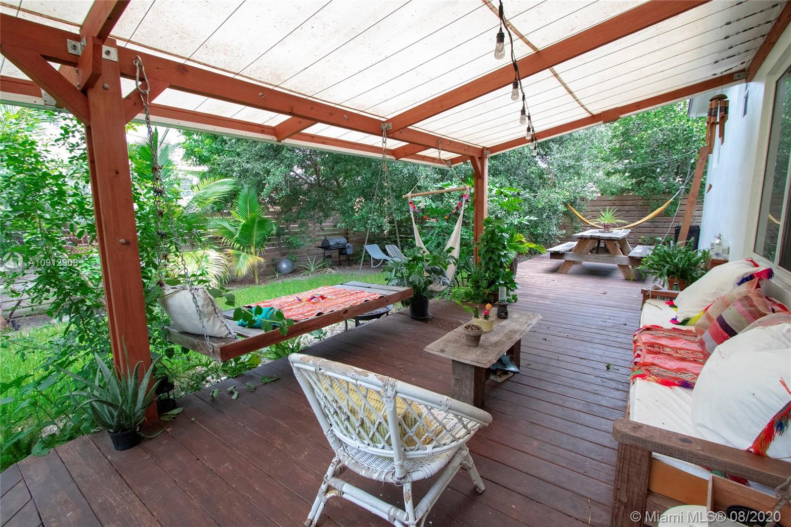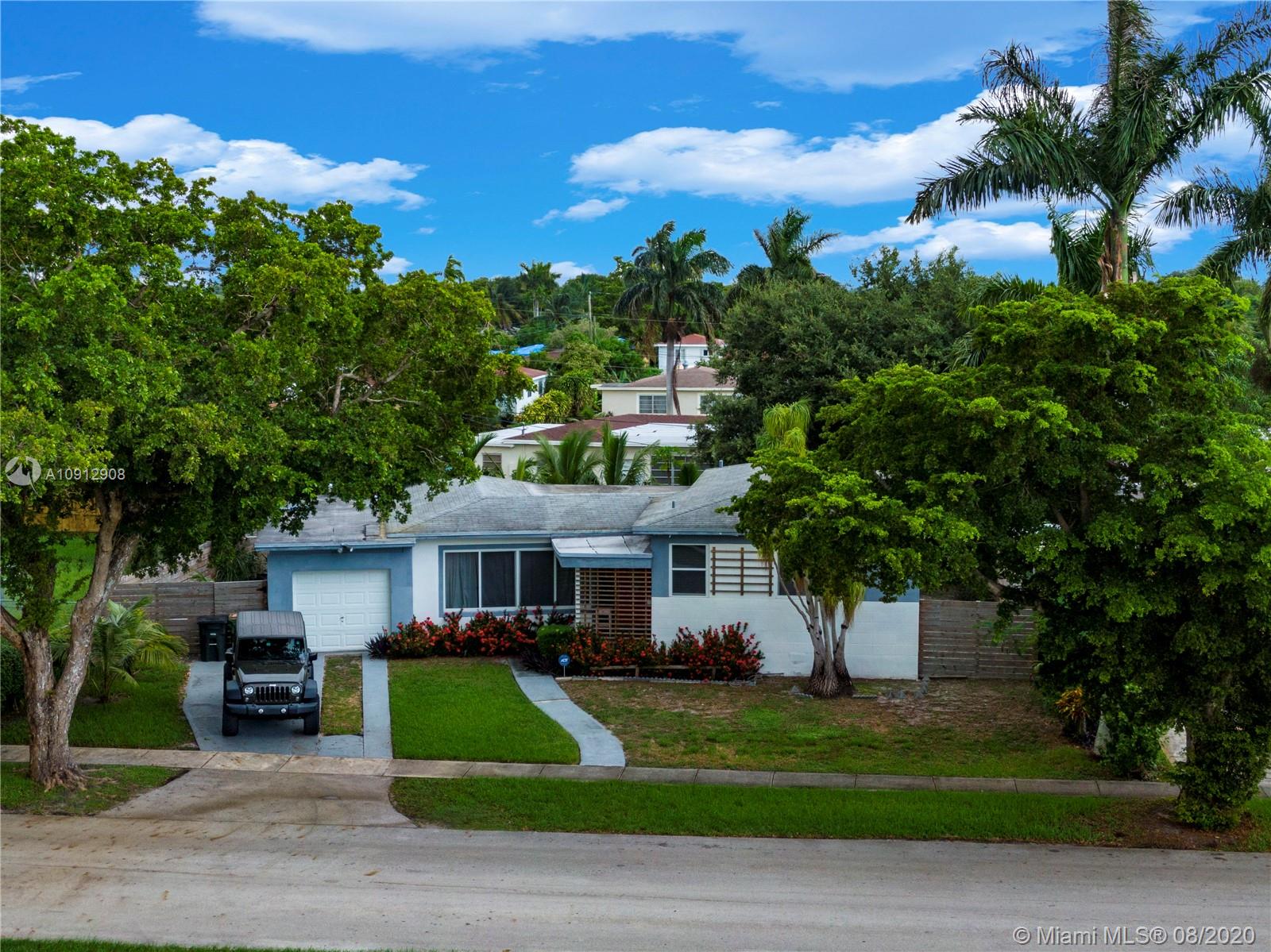 Get ready to fall in love with this charming home, nestled on a quiet tree lined street. The second you open the front door, you feel the good vibes of this modern mid century home. Open flow design, with a tropical garden out back. Once you step into the backyard, you feel how special this entertainers paradise really is. Covered back patio, with outdoor BBQ area, picnic bench, hammock,tropical plants, huge tree canopy and outdoor shower all makes this the perfect home in the perfection location, right in between Miami and Fort Lauderdale.