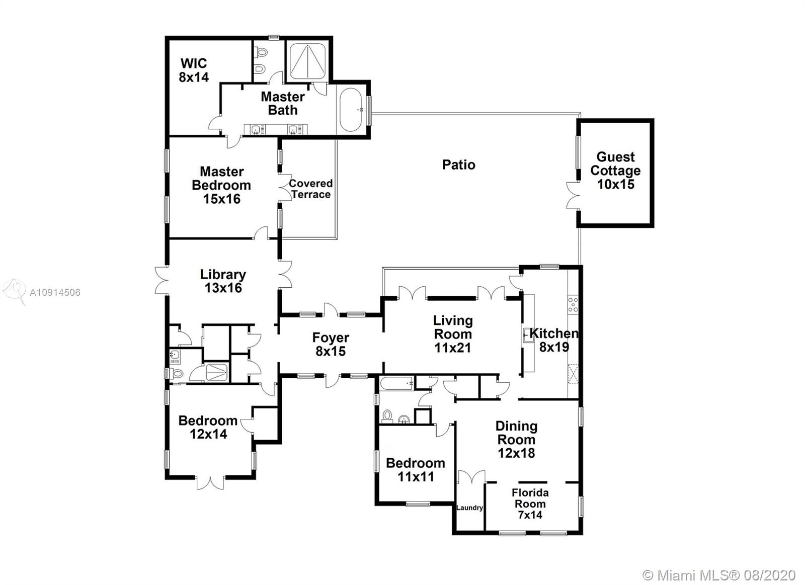 Distinctly unique residence with numerous upgrades, superior details, designer finishes and high ceilings. An oasis in Coral Gables. Upon entering the home your eyes are drawn to the 20ft vaulted ceiling in the foyer. The living areas, home library and generous bedrooms with custom closets are filled with natural light filtered through the floor to ceilings impact windows and French doors. Master bedroom with seating area, custom walk-in closet and large master bath with steam shower. Private terrace off of the master has marble pavers and is a sanctuary for meditating, relaxing or greeting the day. A separate detached guest suite or home office is adjacent to the back terrace. At the end of a long day enjoy alfresco dining and entertaining under the beautiful pergola in the backyard.
