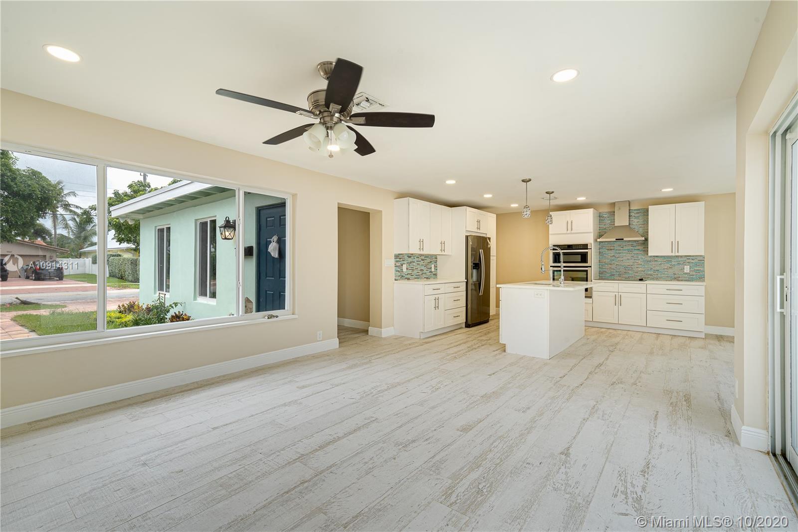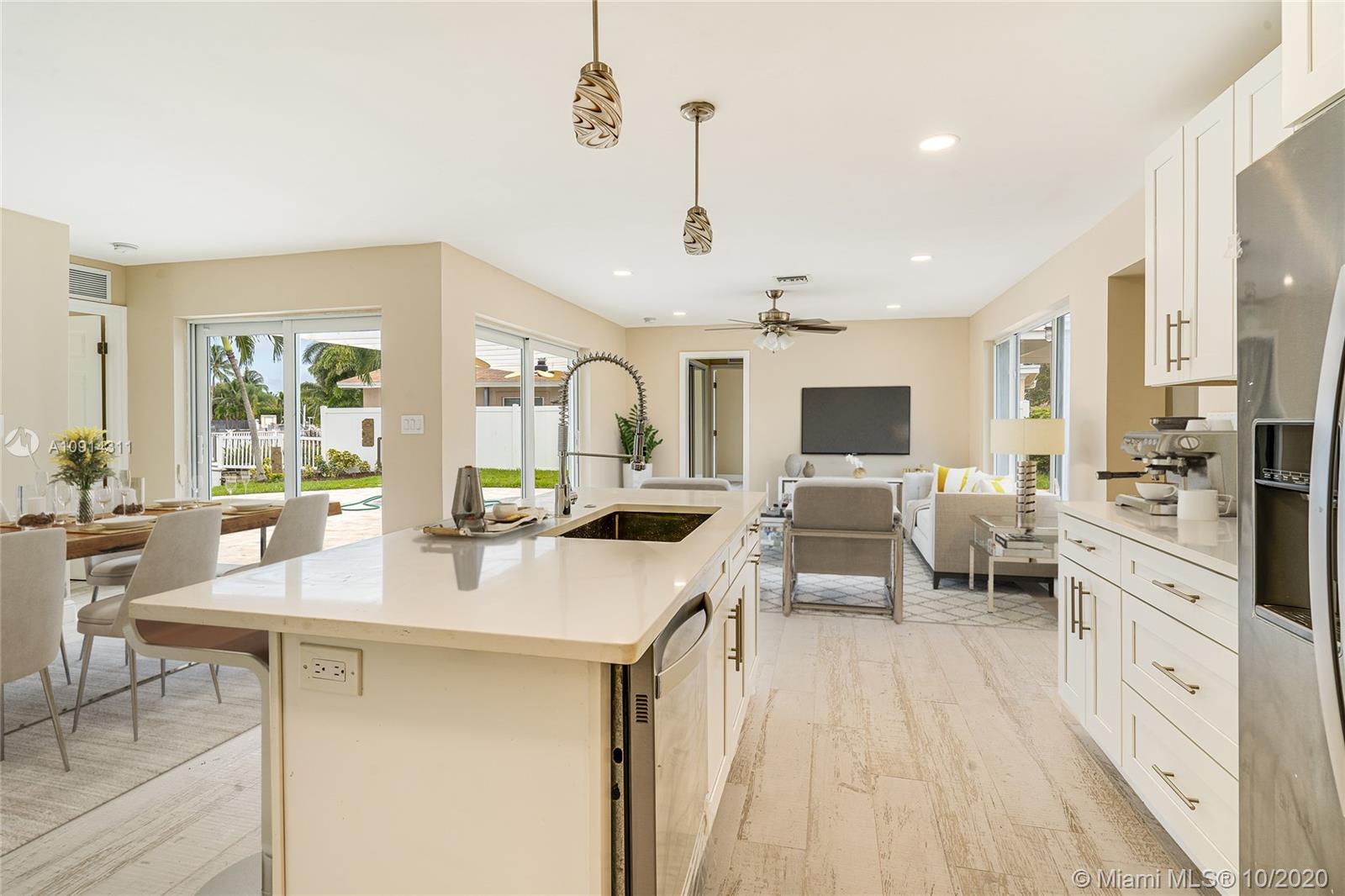 Live on an island! 3/3 completely remodelled split floor plan. New kitchen with stainless steel appliances, quartz counter tops. New baths, new A/C, new electrical, brand new pavers in the driveway and back deck area, new dock with custom lighting throughout. Spacious master bedroom and bath. Impact windows and doors. Lots of natural light. Freshly painted. Unrestricted ocean access. Federal highway bridge only minutes away. Survey available.