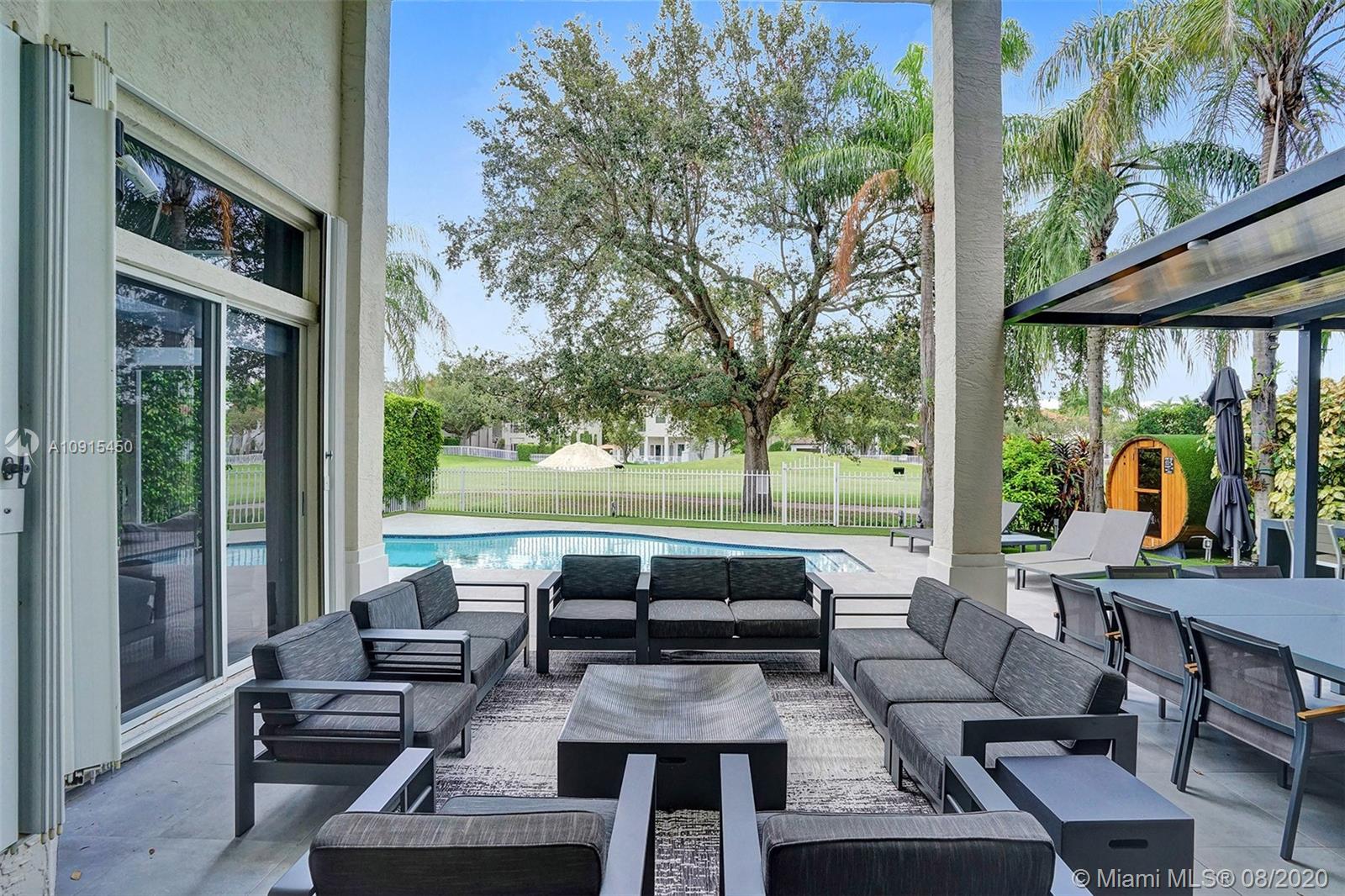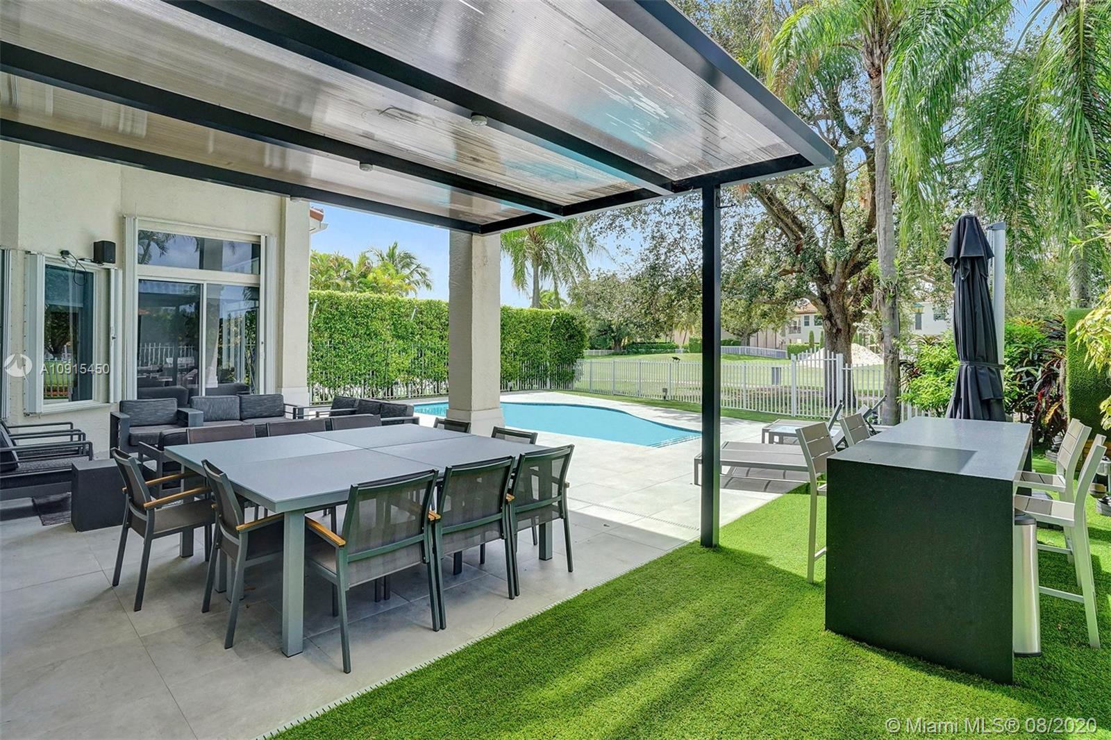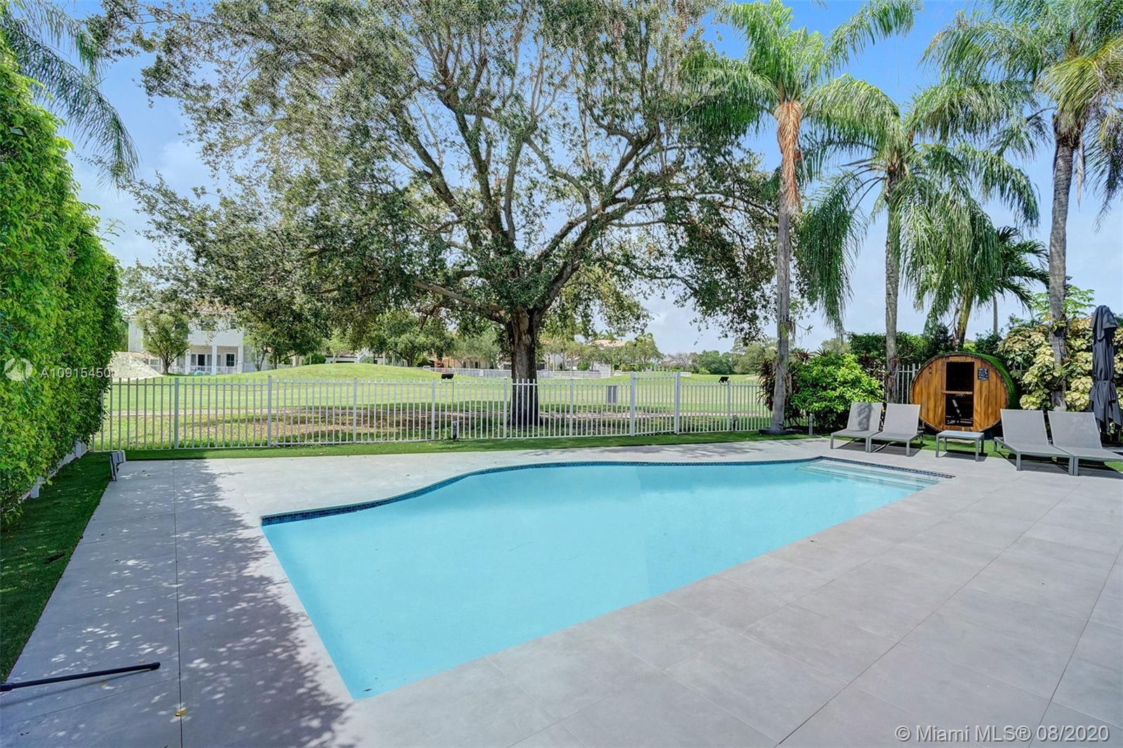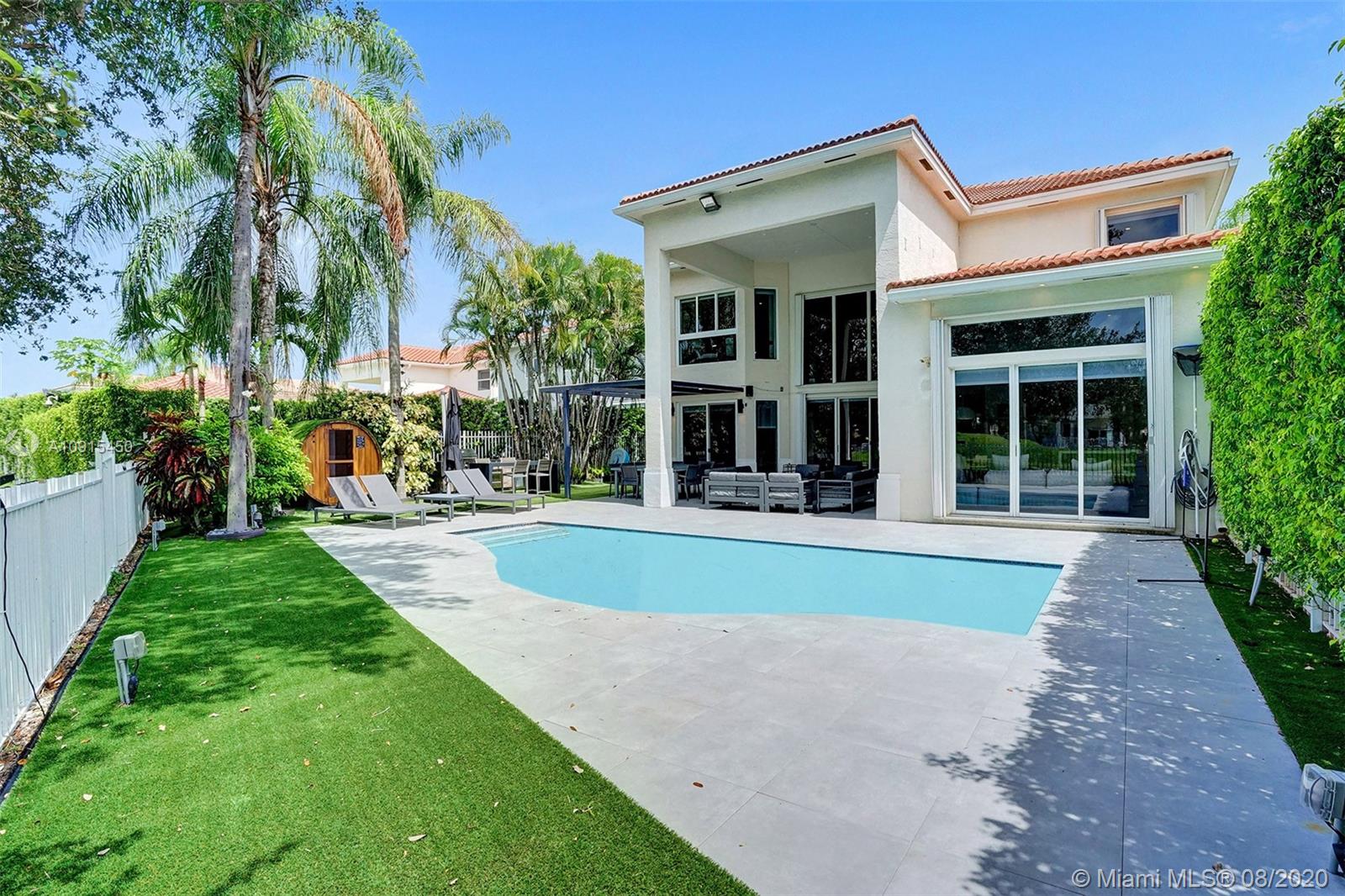 This newly remodeled estate was masterfully designed to blur the lines of modern-residential living, with over 4,266 SF of interior space on a spacious 8,936 SF lot. This Garland Model features 5 bedrooms plus maid's quarters and 6 ½ baths. Completely redesigned, this home showcases a glass staircase, high ceilings, impact windows, office /den space, an in-home gym, and much more. Upon entrance, you are greeted by an open living area with views of the pool/golf course. Many other amazing details throughout.