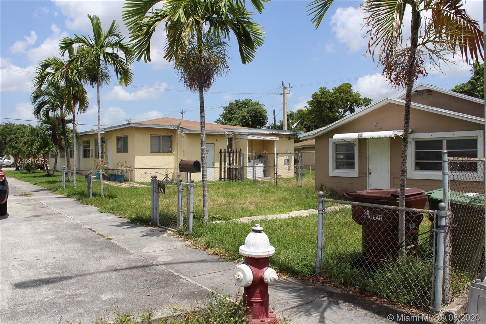 This frame house has 3 bedrooms, 2 baths, central air, circuit breakers, a detached carport, and separate storage building at the rear of the lot and is being sod "AS IS". The value in this property is in the lot. The Hialeah Planning & Zoning Department has advised that up to 4 units can be built with the current zoning on this lot.