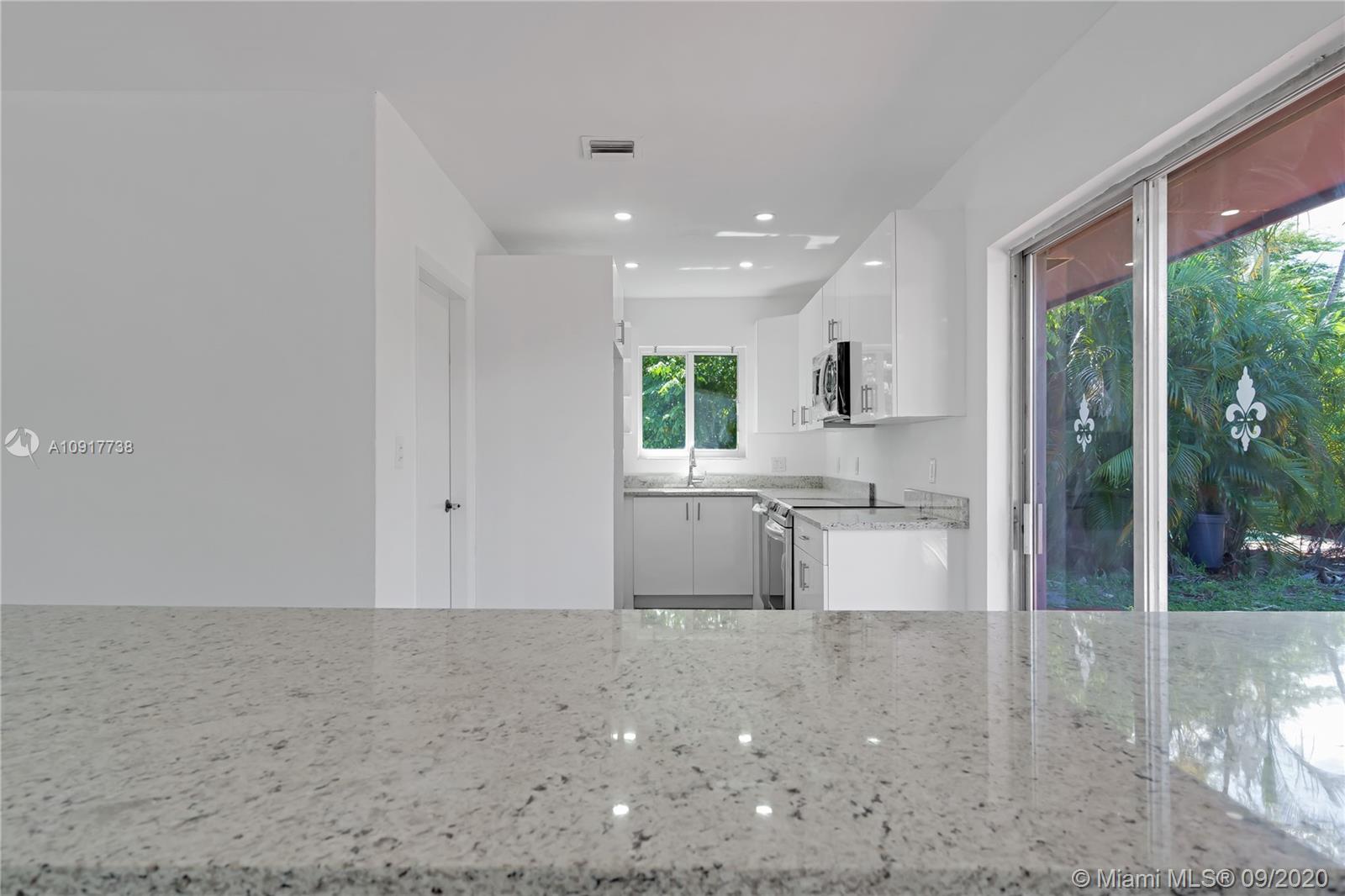 Beautiful updated home with a modern theme ready to move in featuring 3 bedrooms / 2 bathrooms, located in a very quiet neighborhood minutes from the beach. As you walk in you are greeted with an open floor plan with a stunning completely renovated kitchen featuring an 8 foot island with quartz countertops and SS appliances. Brand new light fixtures, ceramic tile floors, and updated bathrooms. Home features impact windows, and a new AC. Barrel tile roof replaced in 2016. Home also features a walk in laundry room and storage area with new Samsung washer & dryer. No HOA. Minutes from great schools, major highways, banks, and new shopping centers.
