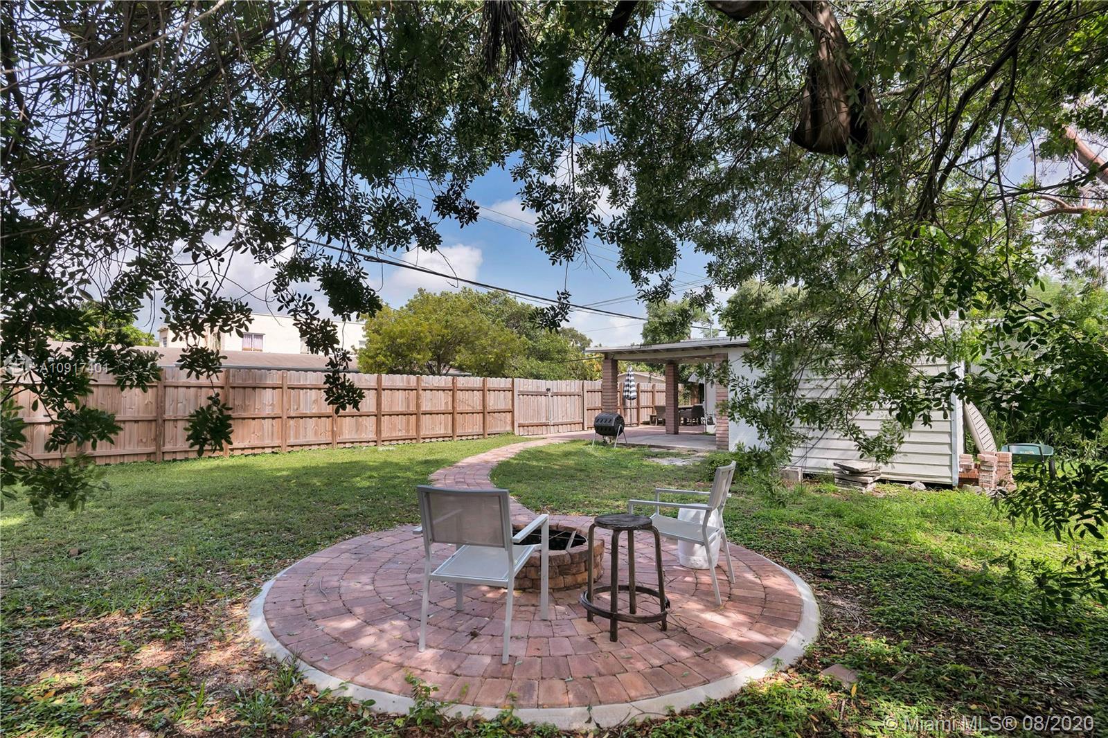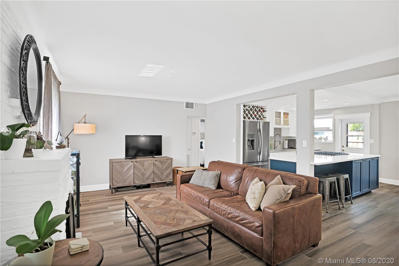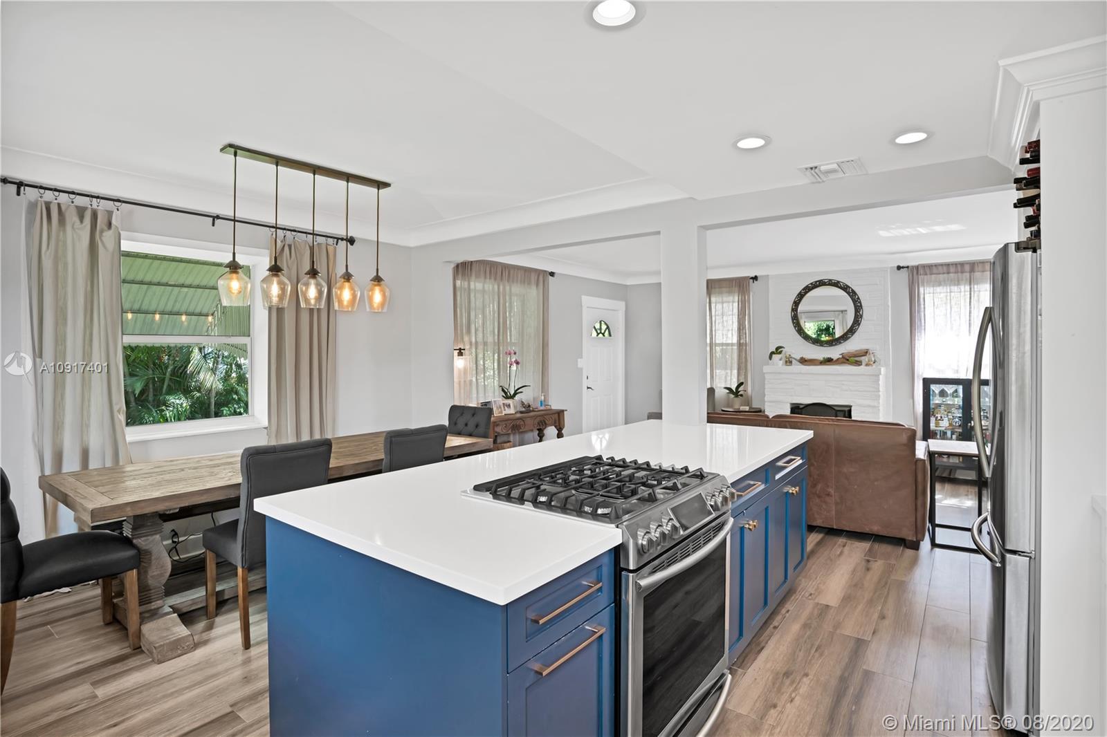 The total interior renovation of this old Florida home was done with style and taste! The open floor plan shows off new ceramic "wood" floors, crown molding, a decorative fireplace, and a spectacular chef's dream kitchen. Anchored by an oversized slate blue island with gleaming white quartz countertop and brass hardware, the kitchen features a 5-burner gas oven, French Door refrigerator/freezer, wine cooler fridge, open shelving, soft close drawers, glass front cabinets, and recessed lighting. The master bedroom features a uniquely designed huge walk-in closet. A/C system from 2016. Tank-less gas water heater. The large newly fenced corner lot is enhanced by a private interlock brick patio by the kitchen door as well as a charming circular patio with fire pit. Gated access to carport.