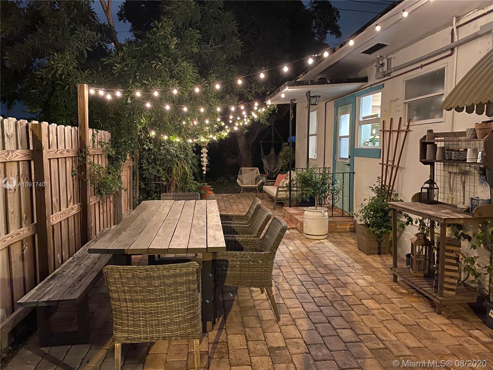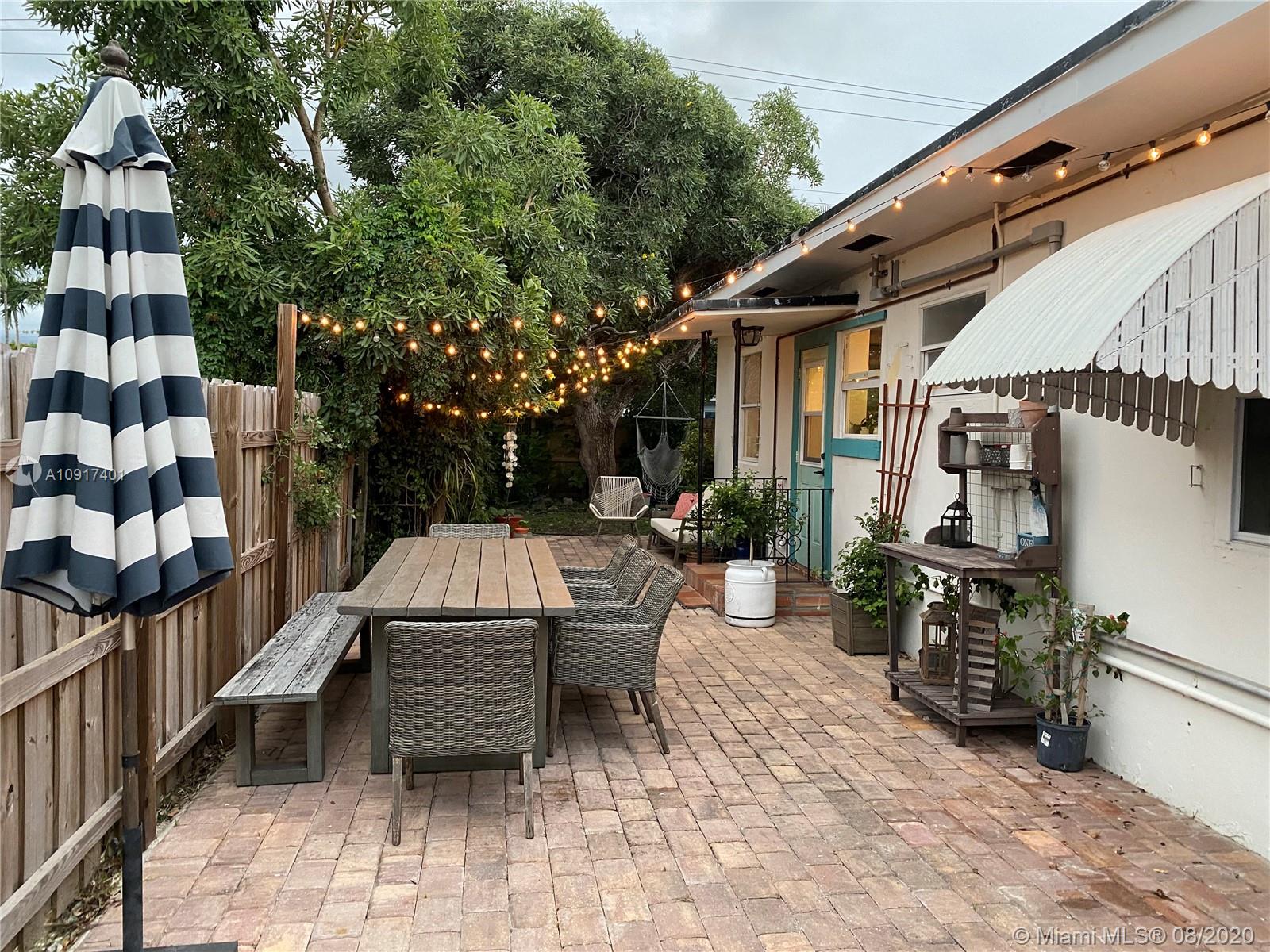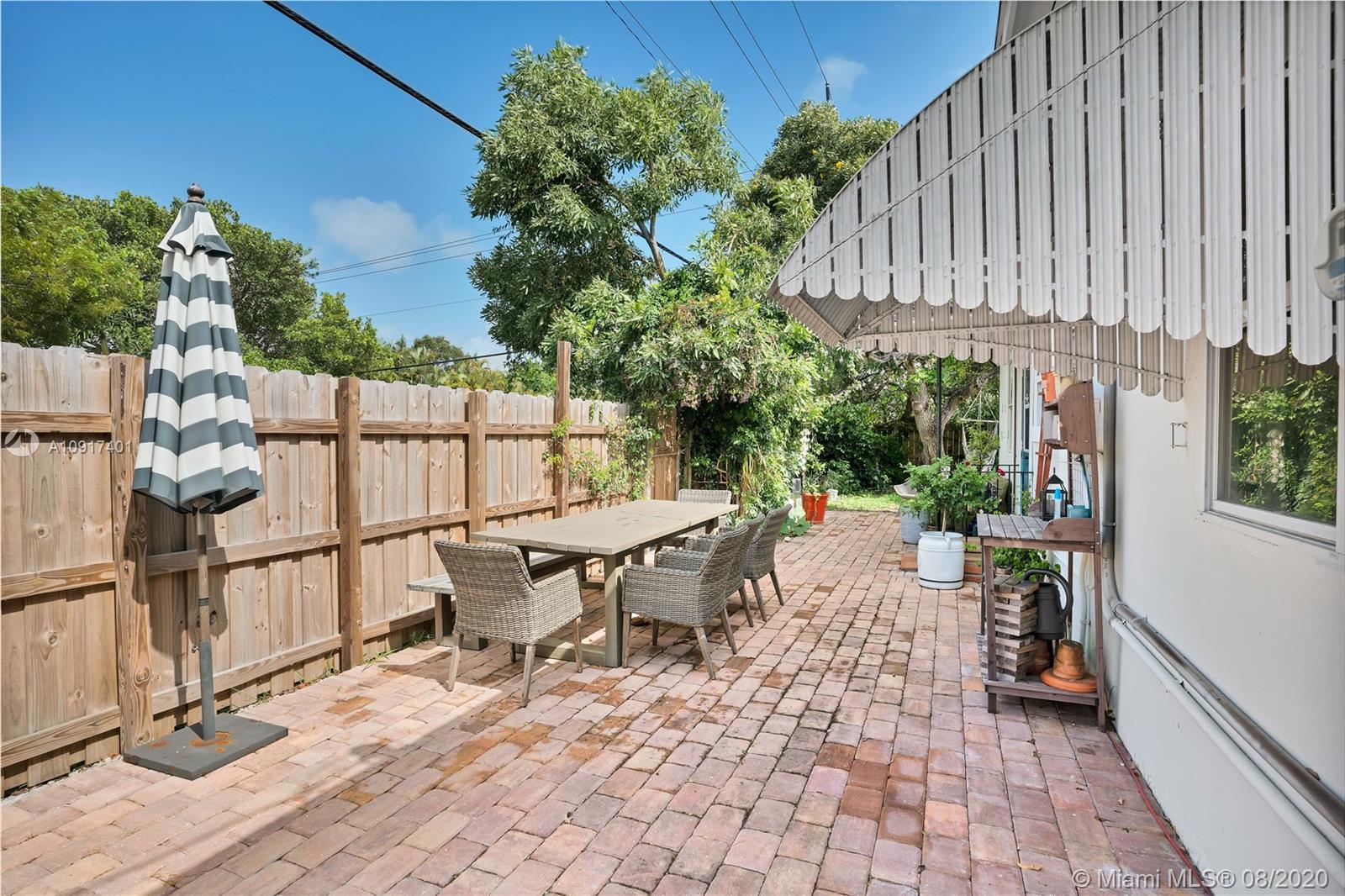 The total interior renovation of this old Florida home was done with style and taste! The open floor plan shows off new ceramic "wood" floors, crown molding, a decorative fireplace, and a spectacular chef's dream kitchen. Anchored by an oversized slate blue island with gleaming white quartz countertop and brass hardware, the kitchen features a 5-burner gas oven, French Door refrigerator/freezer, wine cooler fridge, open shelving, soft close drawers, glass front cabinets, and recessed lighting. The master bedroom features a uniquely designed huge walk-in closet. A/C system from 2016. Tank-less gas water heater. The large newly fenced corner lot is enhanced by a private interlock brick patio by the kitchen door as well as a charming circular patio with fire pit. Gated access to carport.
