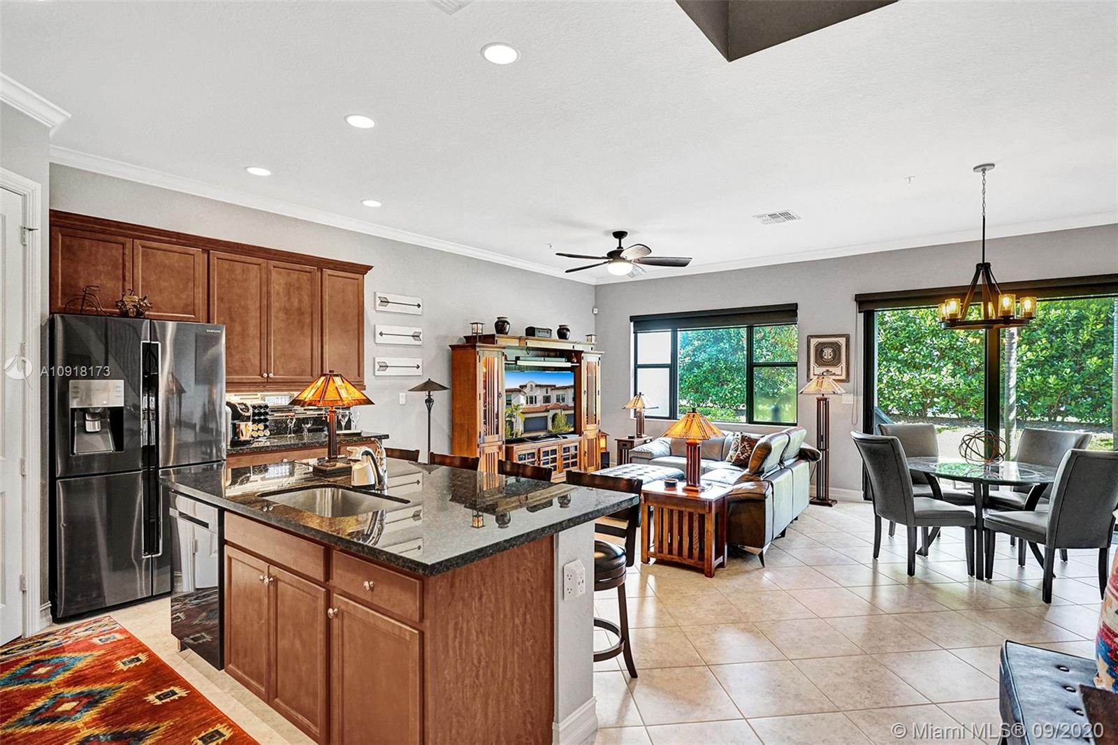 Paradise at Raintree villa townhouse with over 2,000 completely tiled interior square feet. Downstairs boasts an open concept kitchen,solid oak cabinets, cooks island, Brazilian granite counters, top line Samsung appliances, half bathroom & attached 2 car garage. Magnificent views of lush patio garden delight family & friends as they relax in the living/dining area. The custom wrought iron & wood staircase leads upstairs to the 2nd & 3rd bedrooms & bathroom with granite counter double sink vanity with European glass bathtub/shower enclosure and full laundry room. The master suite is complete with 2 separate granite & wood dual sink vanities, luxurious octagonal shower with custom glass enclosure and a huge walk-in closet. Resort style swimming pool and club house are just steps away