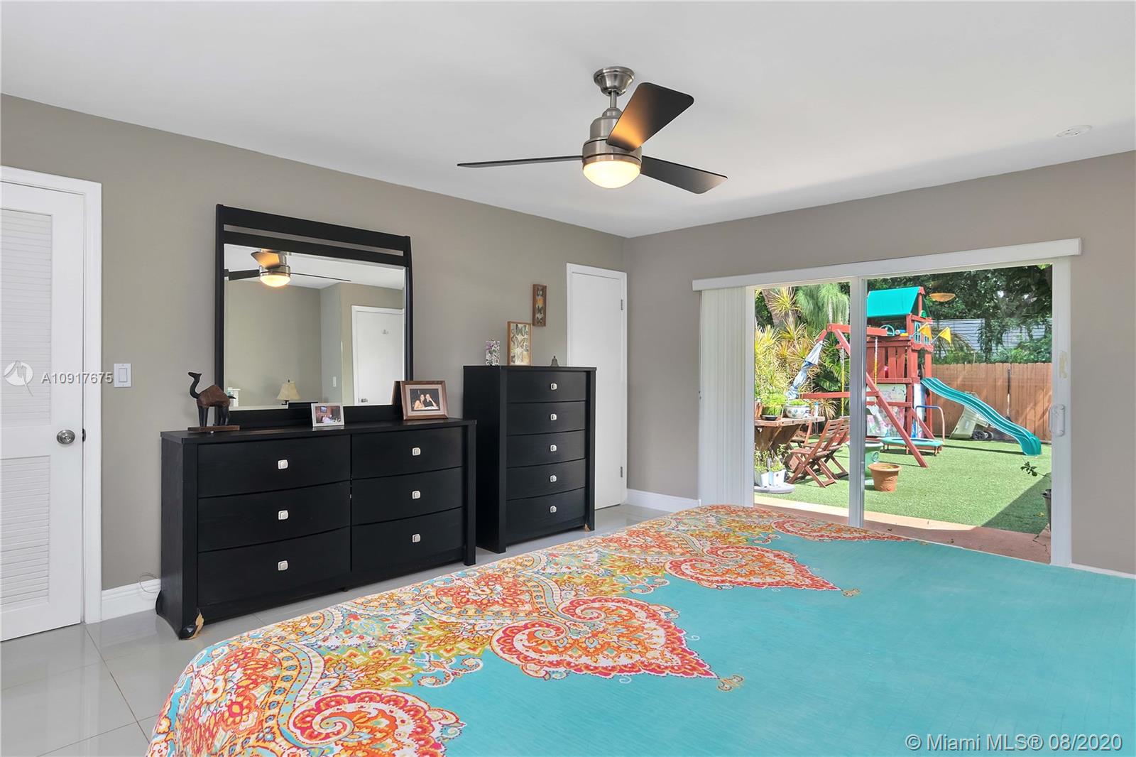 A Gem in Hallandale Beach. 4 bedroom, 3 bath with 2 car garage residence tucked away on a private and secluded road with low traffic. Move in Ready! Upgrades throughout include full replacement of roof in 2018, Impact window, Impact sliding doors, 2 master suites with sliding doors opening to the backyard, porcelain tile throughout, split floor plan bay windows in the living room. Open layout kitchen with stainless steel appliances, mosaic tile backsplash, granite countertops, custom pantry lots of storage and an island great for entertaining, formal dining room. Kids playground and wooden backyard table will stay. Just minutes from the Beach, Gulfstream Park & Casino, Aventura and Major Highways.