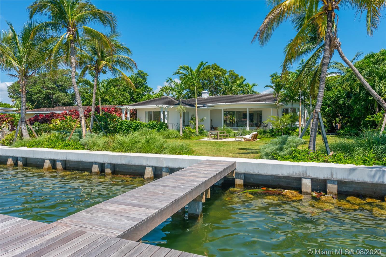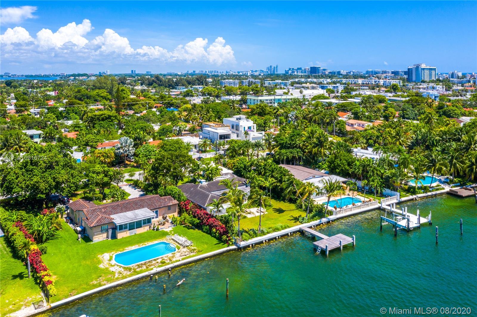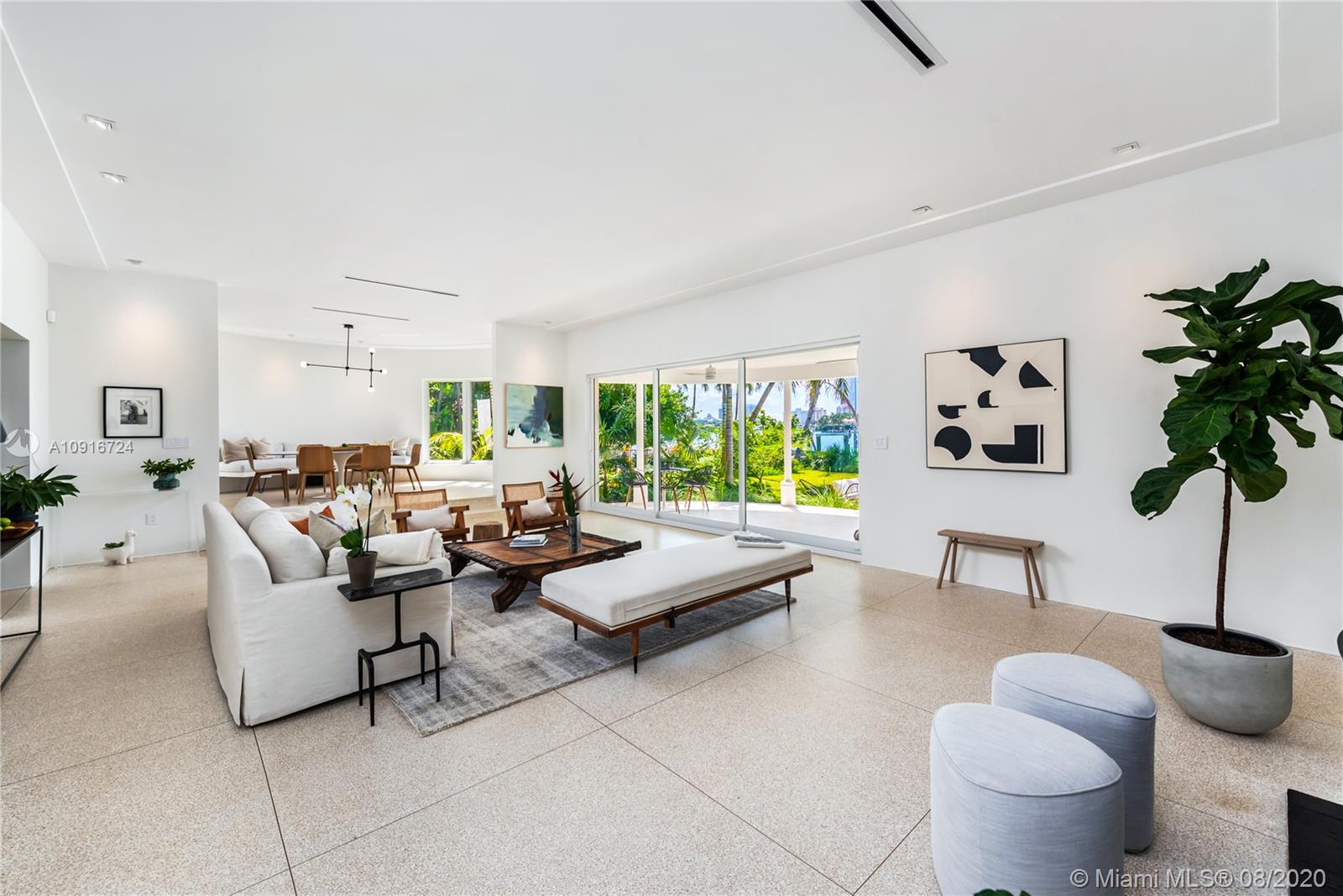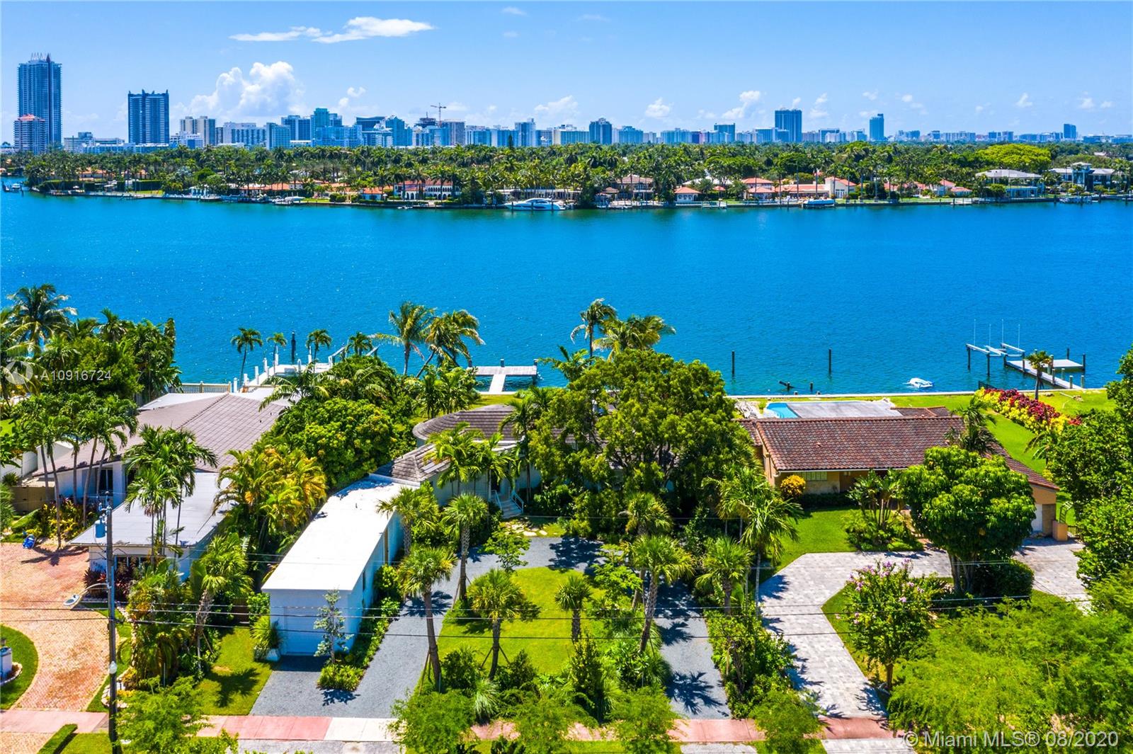 Beautifully renovated to perfection, this mid-century modern gem is located on the wide bay in Miami Beach. From the moment you step inside, you feel serenity from the captivating water views to the intimate setting created by lush landscaping. The house has been modernized while maintaining its architectural details and original era charm. SE exposure adds an abundance of natural light. Features include Terrazzo and new white oak floors, telescope doors in living room and master, Miele appliances, honed Statuary marble kitchen counters, spa-like bathrooms, impact windows, 85ft water frontage with a brand new seawall and Ipe dock and plenty of room for a pool. Open concept living areas and covered patio great for entertaining. One car garage. 2,339/SF per architect.