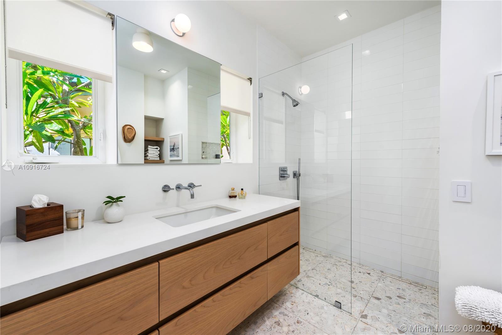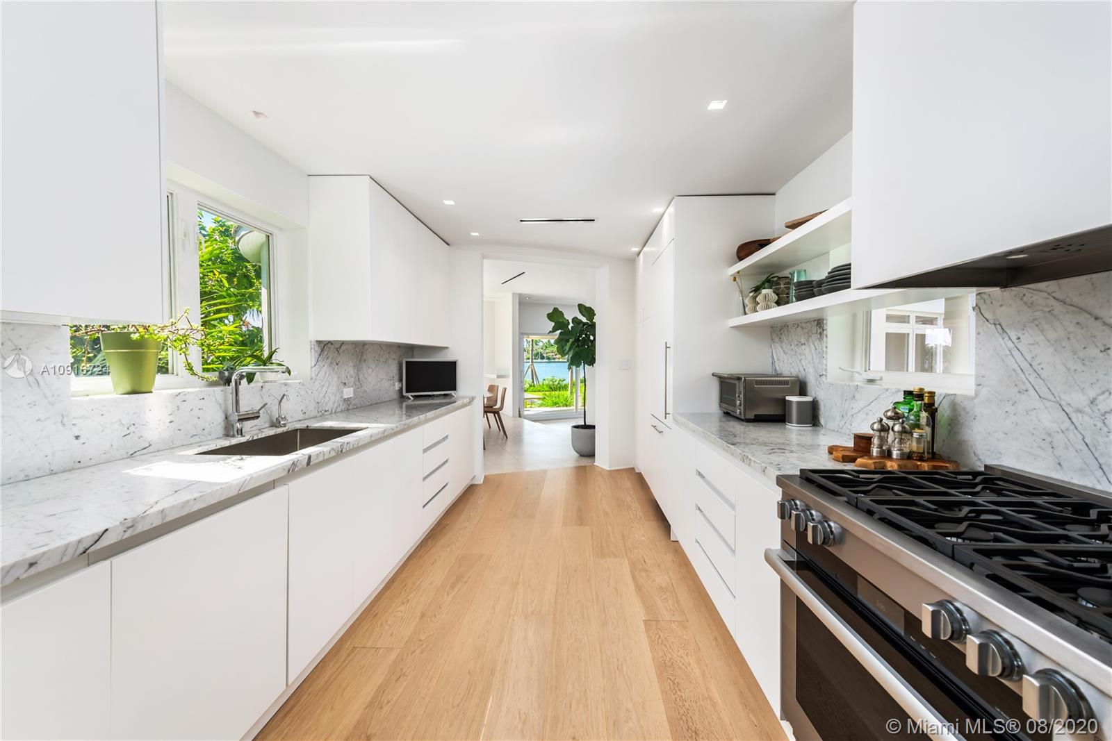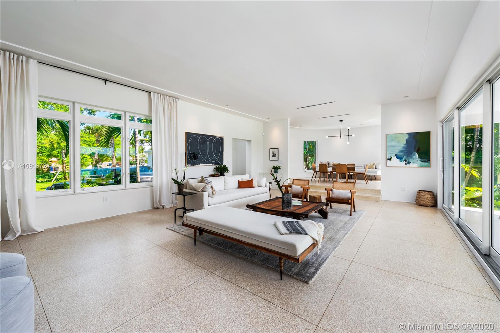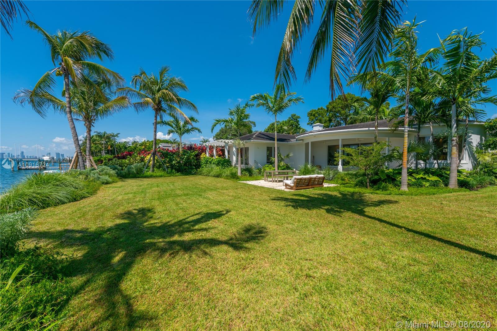 Beautifully renovated to perfection, this mid-century modern gem is located on the wide bay in Miami Beach. From the moment you step inside, you feel serenity from the captivating water views to the intimate setting created by lush landscaping. The house has been modernized while maintaining its architectural details and original era charm. SE exposure adds an abundance of natural light. Features include Terrazzo and new white oak floors, telescope doors in living room and master, Miele appliances, honed Statuary marble kitchen counters, spa-like bathrooms, impact windows, 85ft water frontage with a brand new seawall and Ipe dock and plenty of room for a pool. Open concept living areas and covered patio great for entertaining. One car garage. 2,339/SF per architect.