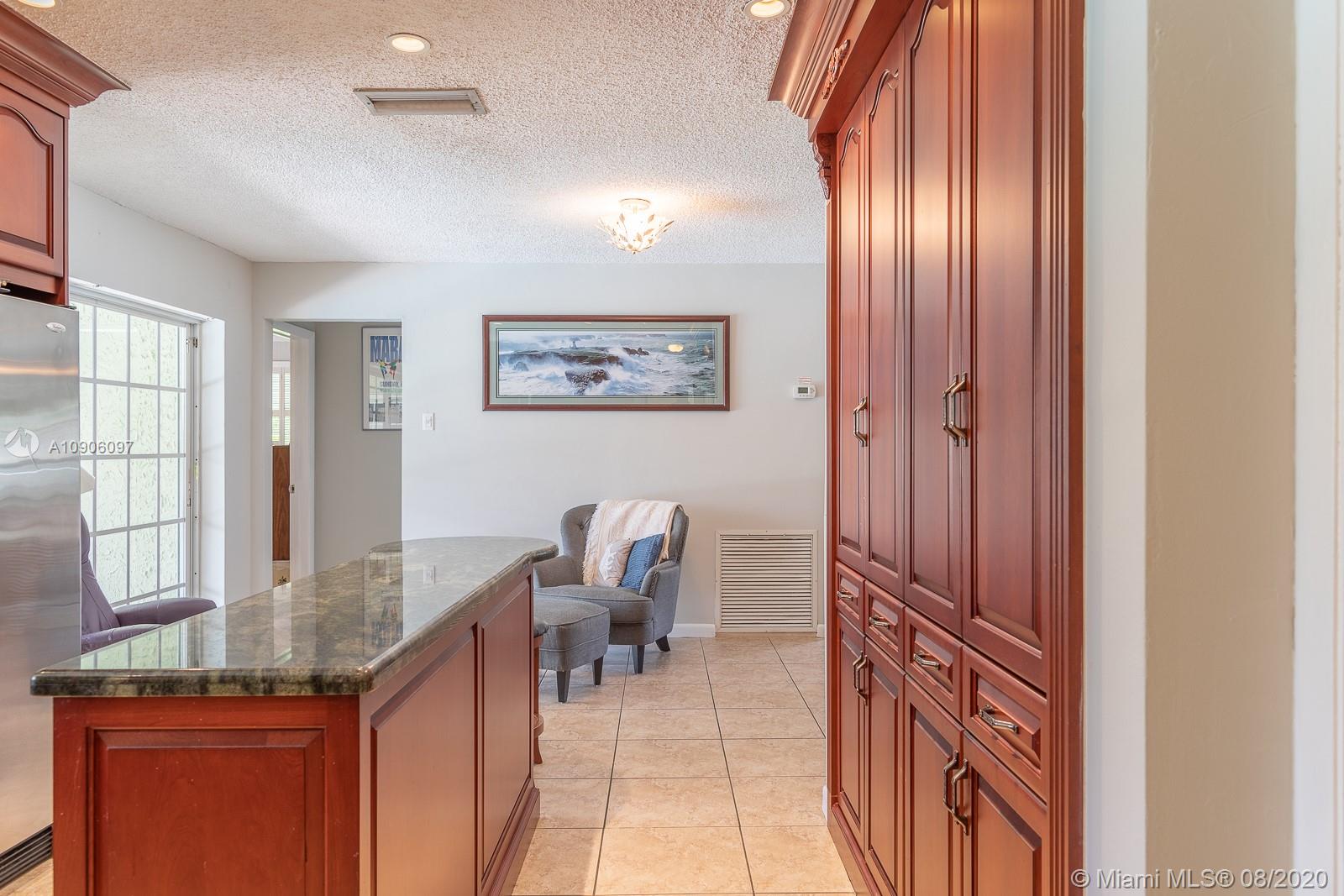 DREAM KITCHEN IN A DREAM HOUSE. Great location w/ high walkability scores and just 1/2 block from 2 of Broward’s top private schools. Featuring 4 beds, 2 baths, formal dinning and living rooms, GOURMET KITCHEN, 180 SQFT open porch, 280 SQFT workshop, laundry-utility room, carport, and resort like screened-in pool area. Gorgeous kitchen w/ beautiful cherry wood cabinets, imperial green granite counter tops, stainless steel appliances, kitchen island, recessed lights, crown moulding and natural gas. Large bedrooms w/ ample closet space and laminate floors. In addition, IMPACT WINDOWS AND DOORS, 2019 flat roof, 2019 central air, gas tankless water heater, gas dryer, TERMITE WARRANTY, 2020 pool filter, 2020 interior paint, 2020 interior doors and boat/RV parking. A HOME YOU’LL BE PROUD TO OWN.