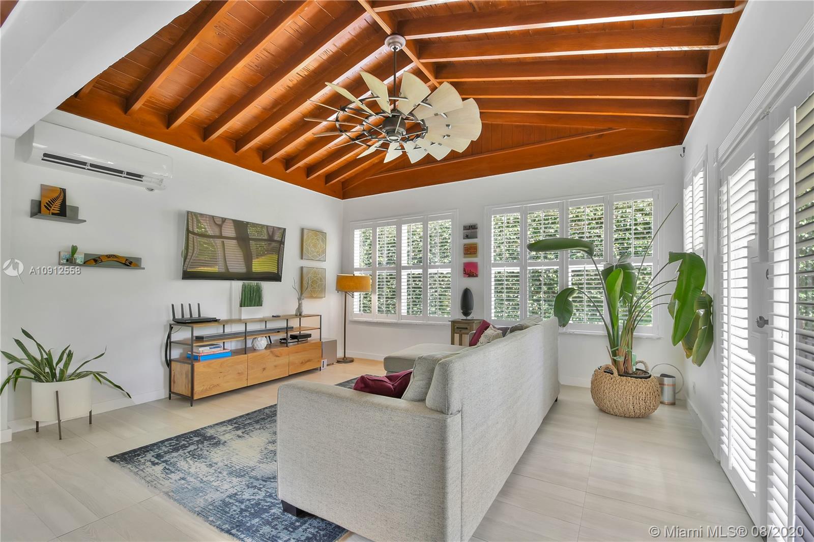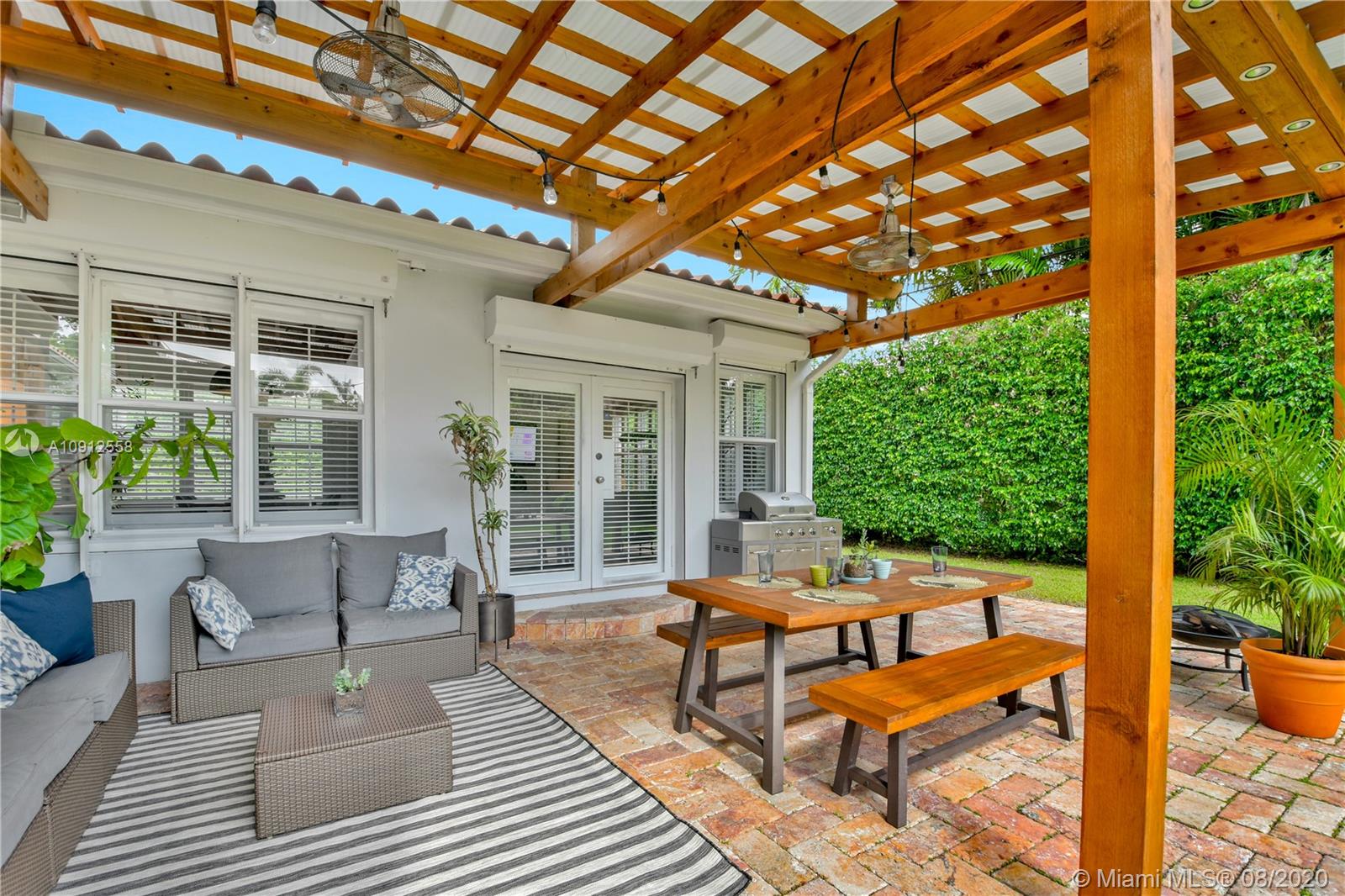 This elegant and lovely Mediterranean/Modern home sits on a quiet dead end tree-lined street in the heart of Coral Gables. The seamless spacious floor plan is truly amazing, with lots of natural bright light shinning throughout. Exquisitely remolded with Italian porcelain tile across all rooms with a state-of-the-art kitchen, which includes top of the line Bosch oven, microwave, cook-top, and downdraft. White cabinetry and a 12-ft quartz island with a waterfall finish, including a stainless steel farmhouse sink, while the kitchen sidebar includes a wine fridge. Enjoy your private and delightful oasis of tropical landscaping for relaxing and entertaining under your beautiful natural cedar wood pergola. Close to Miracle Mile, which is filled with world class restaurants and art galleries.