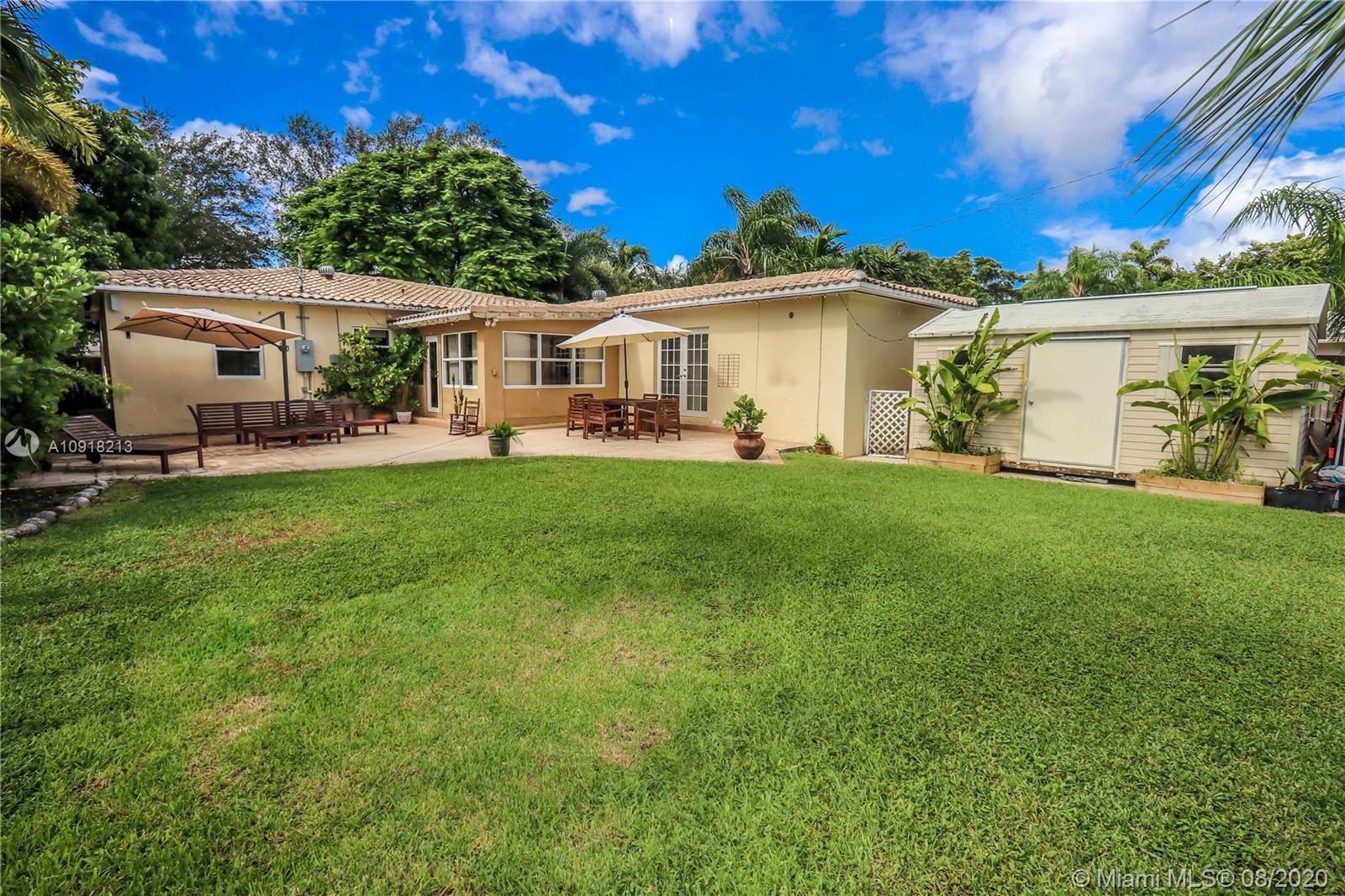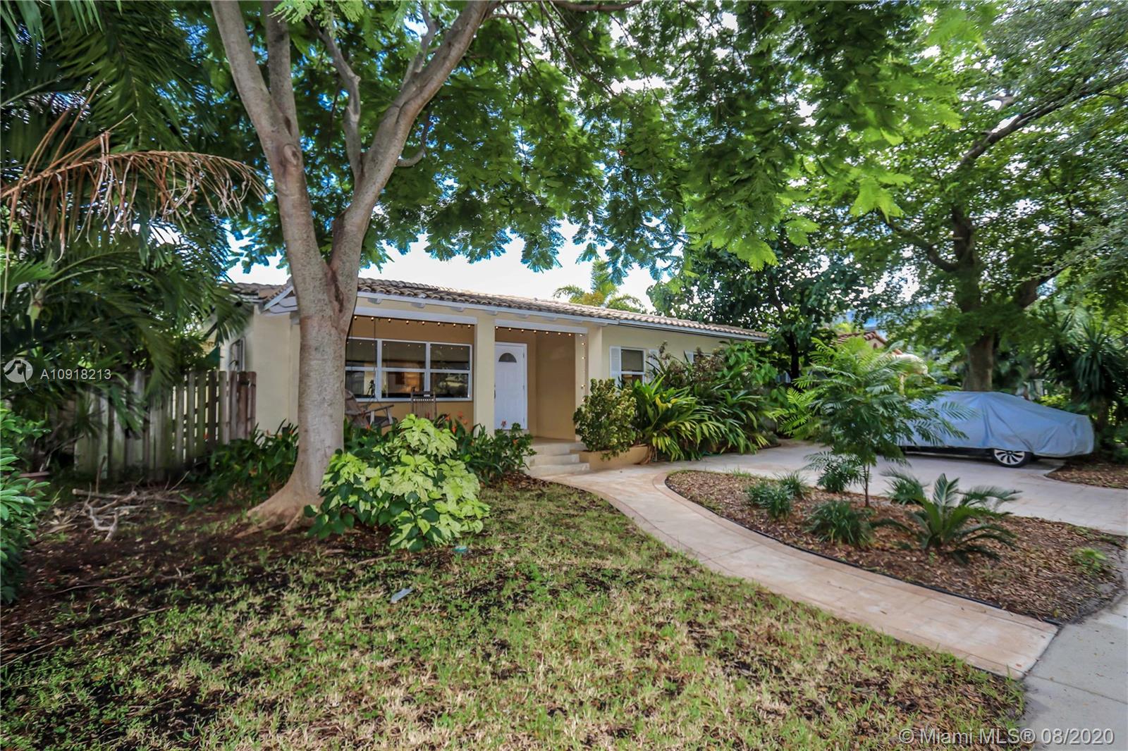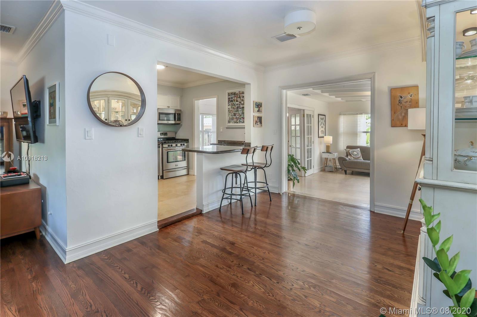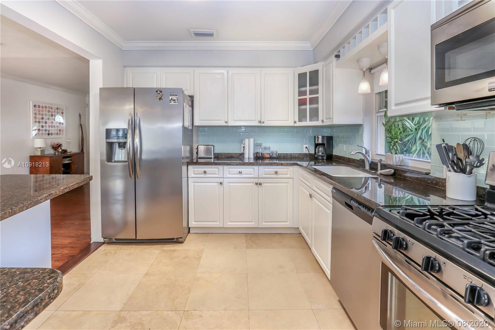 Welcome to your dream home nestled in the beautiful Historic Hollywood Lakes community. This 3 bedroom, 3 bath offers functionality and privacy with its split floor plan layout. Home features beautiful designed kitchen with stainless steel appliances, gas stove, granite countertops with subway glass backsplash, formal dining room, family room with exposed wood beams in ceiling, original, wood floor in living room, 2 master suites, updated bathrooms, crown molding throughout, impact windows and doors. Outside of the home features a spacious, fenced backyard with stamped concrete patio, covered porch, and a storage shed. Stamped concrete driveway and parking for 2 cars.
