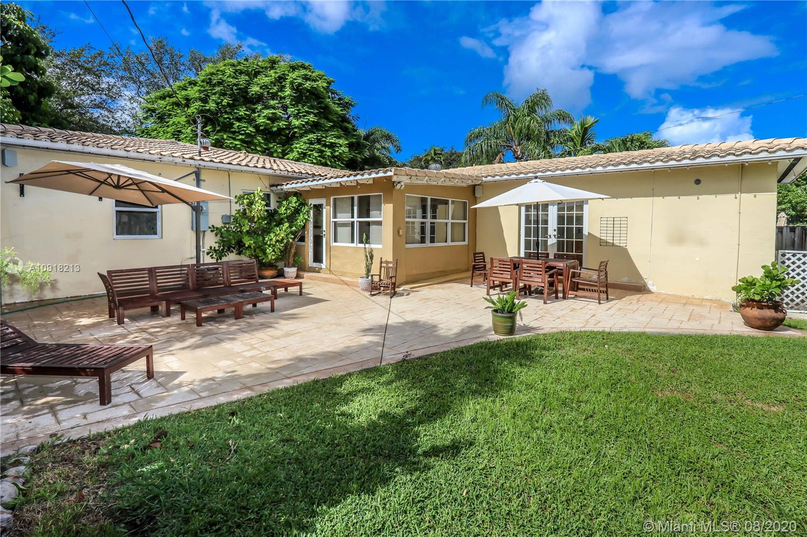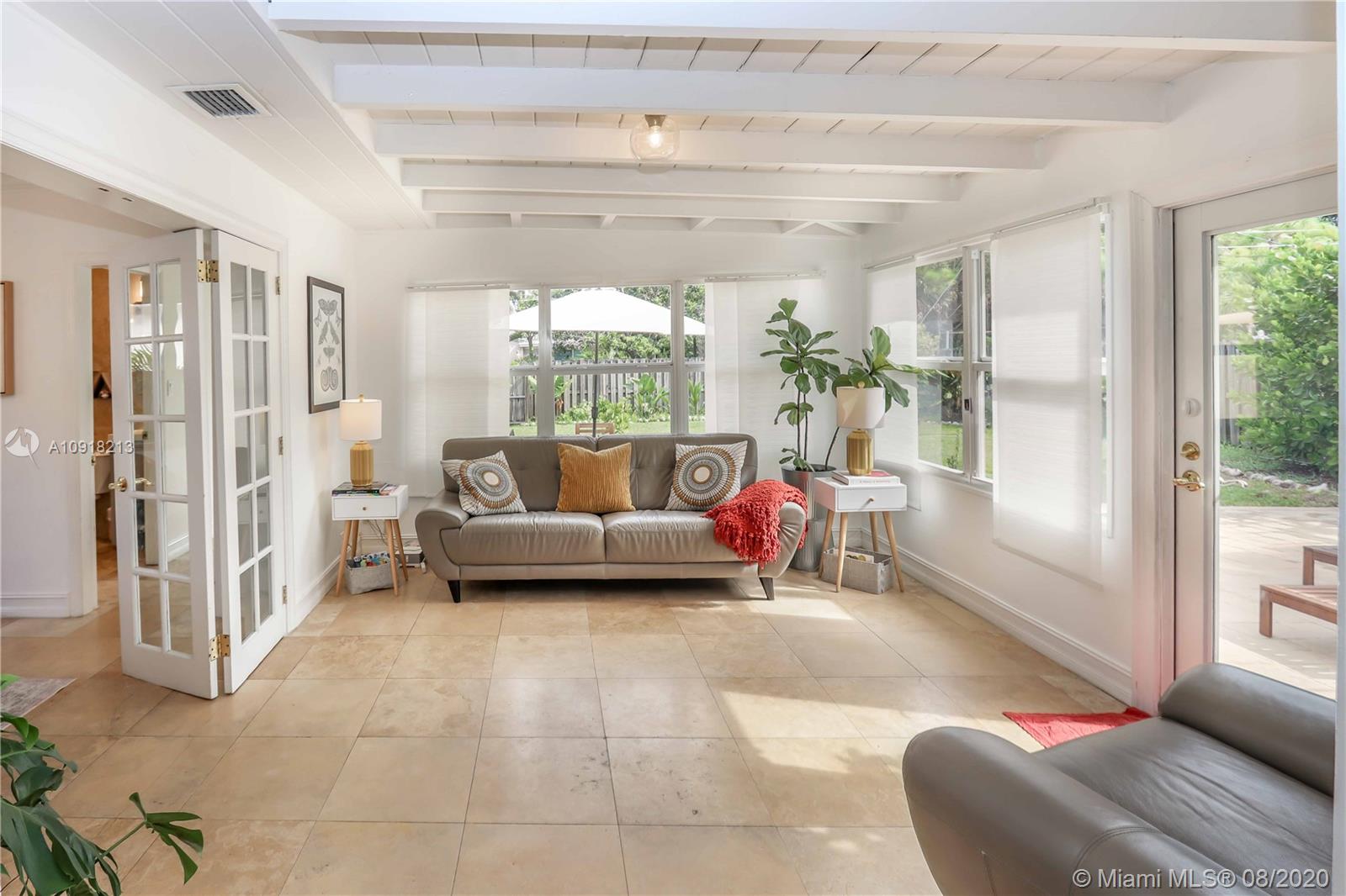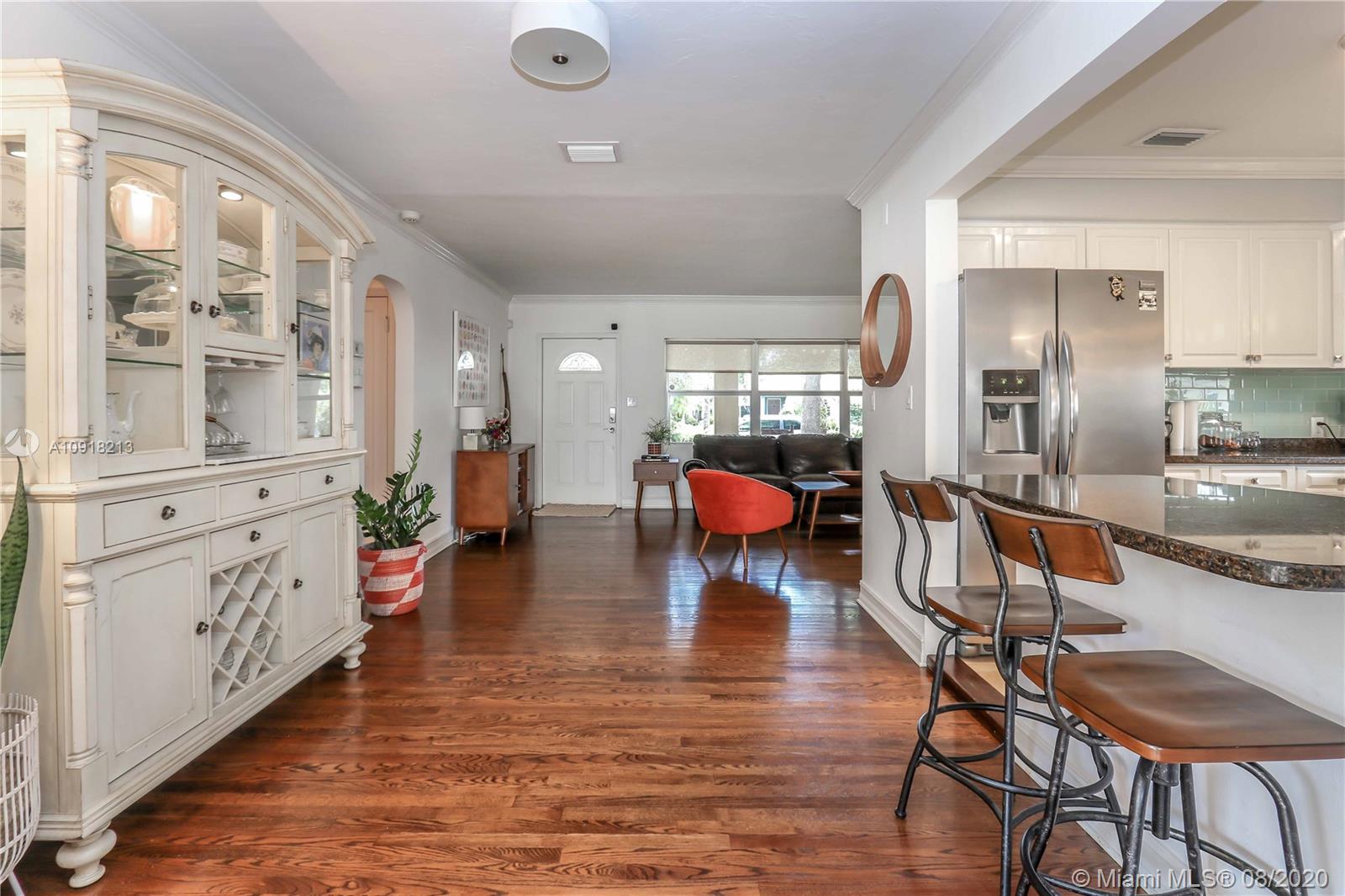 Welcome to your dream home nestled in the beautiful Historic Hollywood Lakes community. This 3 bedroom, 3 bath offers functionality and privacy with its split floor plan layout. Home features beautiful designed kitchen with stainless steel appliances, gas stove, granite countertops with subway glass backsplash, formal dining room, family room with exposed wood beams in ceiling, original, wood floor in living room, 2 master suites, updated bathrooms, crown molding throughout, impact windows and doors. Outside of the home features a spacious, fenced backyard with stamped concrete patio, covered porch, and a storage shed. Stamped concrete driveway and parking for 2 cars.