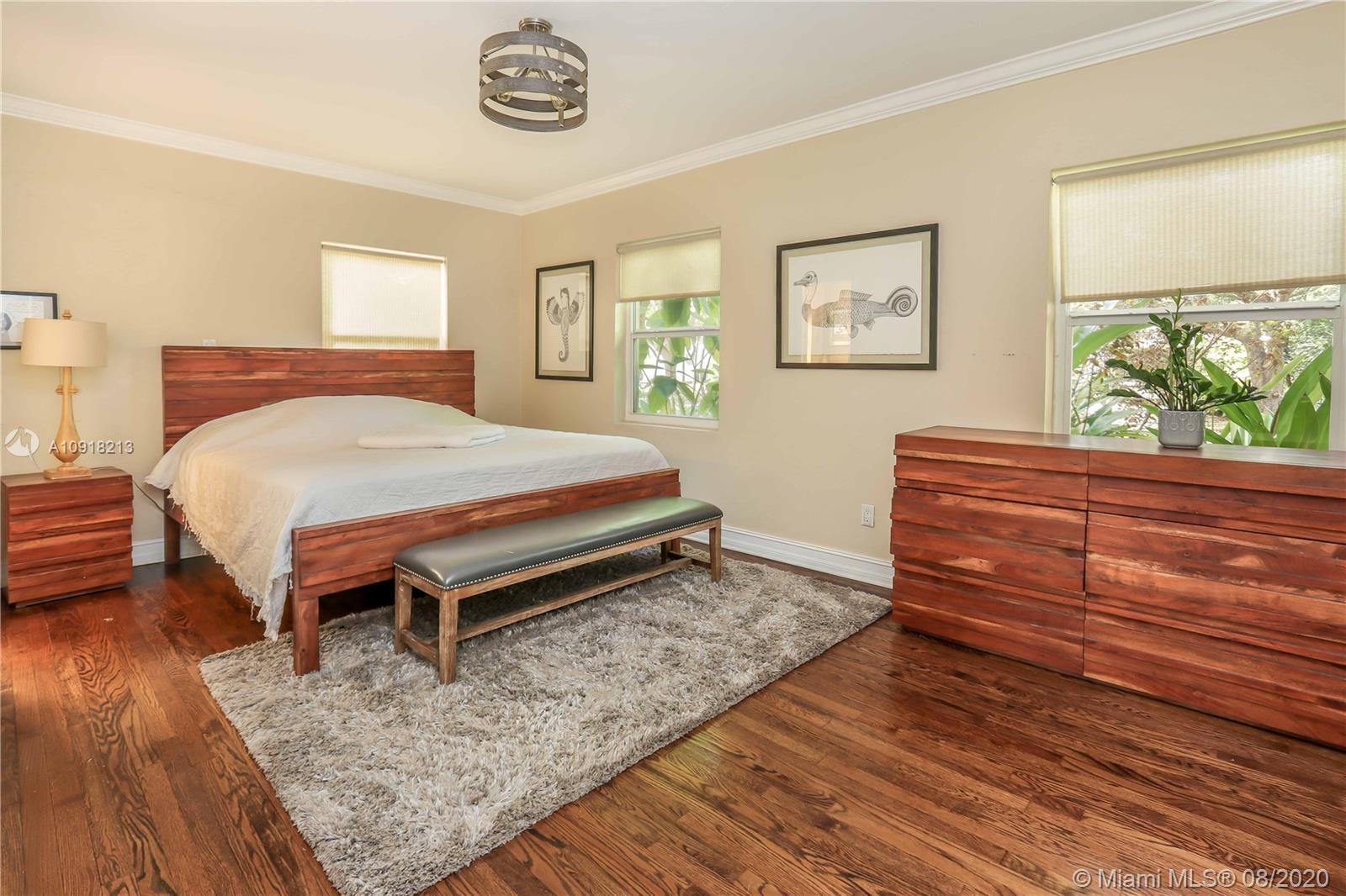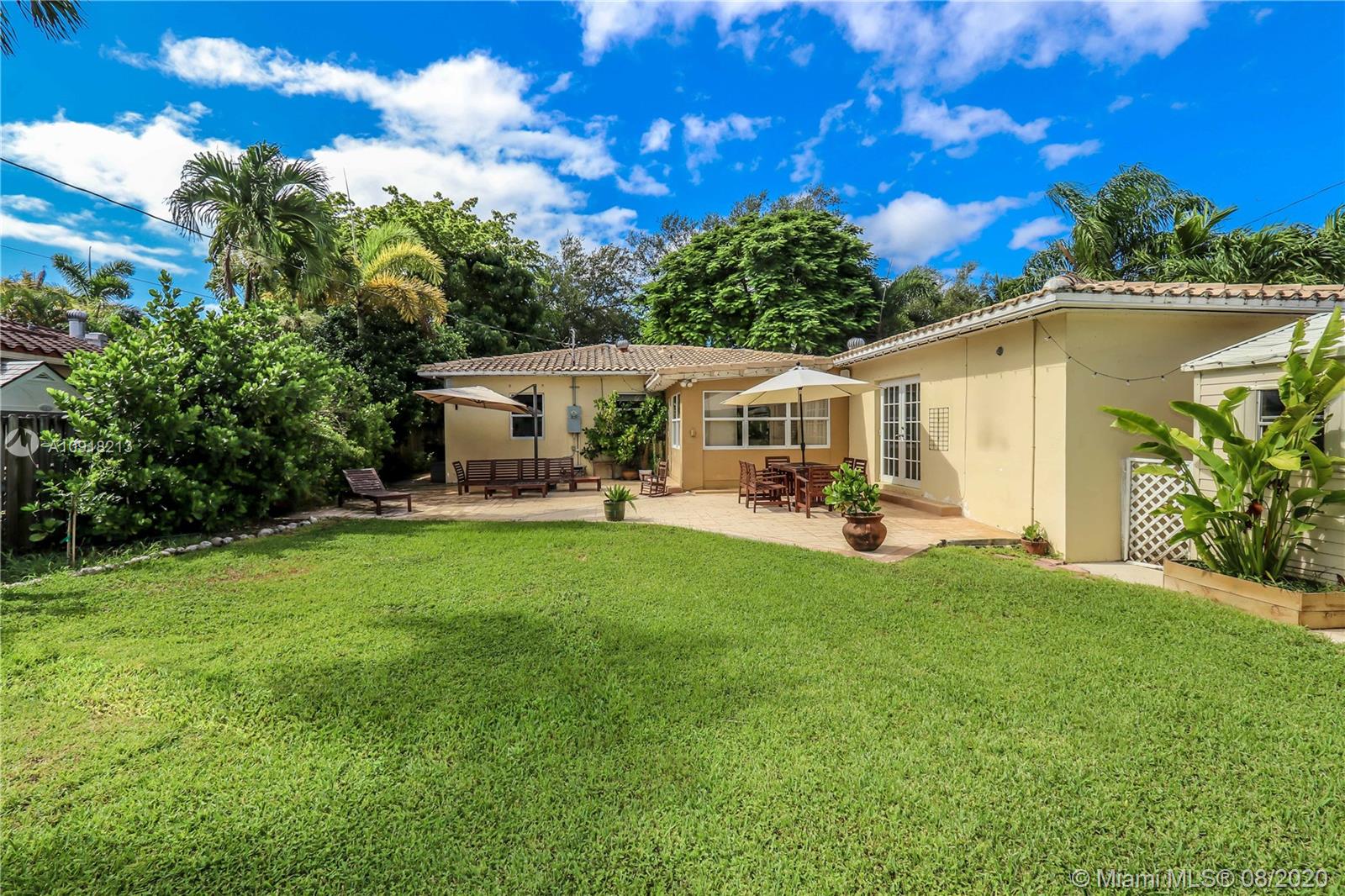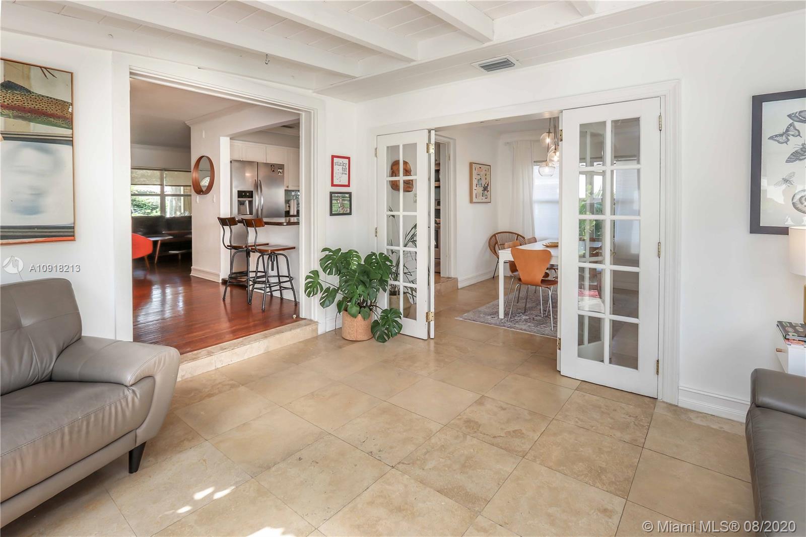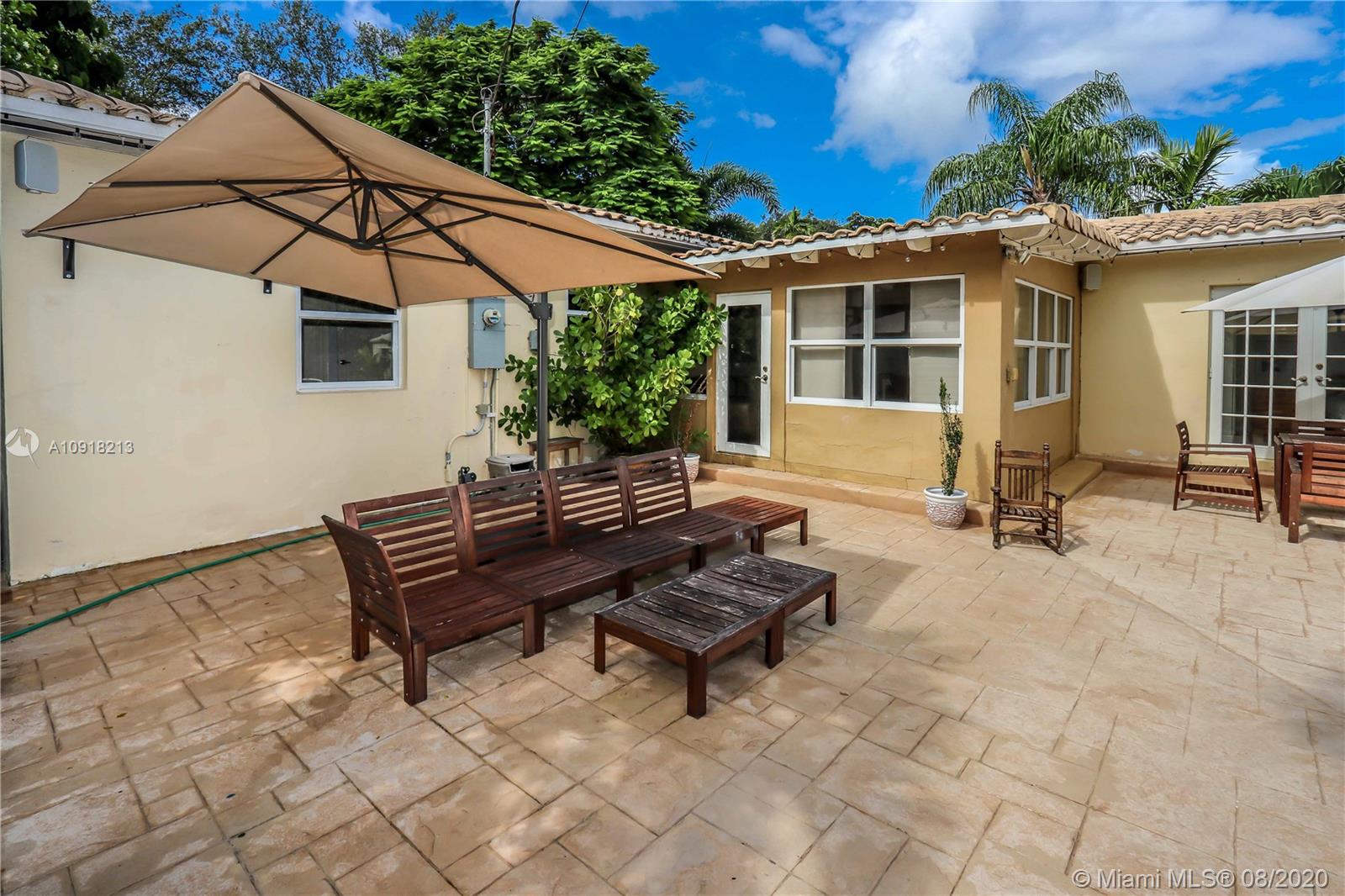 Welcome to your dream home nestled in the beautiful Historic Hollywood Lakes community. This 3 bedroom, 3 bath offers functionality and privacy with its split floor plan layout. Home features beautiful designed kitchen with stainless steel appliances, gas stove, granite countertops with subway glass backsplash, formal dining room, family room with exposed wood beams in ceiling, original, wood floor in living room, 2 master suites, updated bathrooms, crown molding throughout, impact windows and doors. Outside of the home features a spacious, fenced backyard with stamped concrete patio, covered porch, and a storage shed. Stamped concrete driveway and parking for 2 cars.