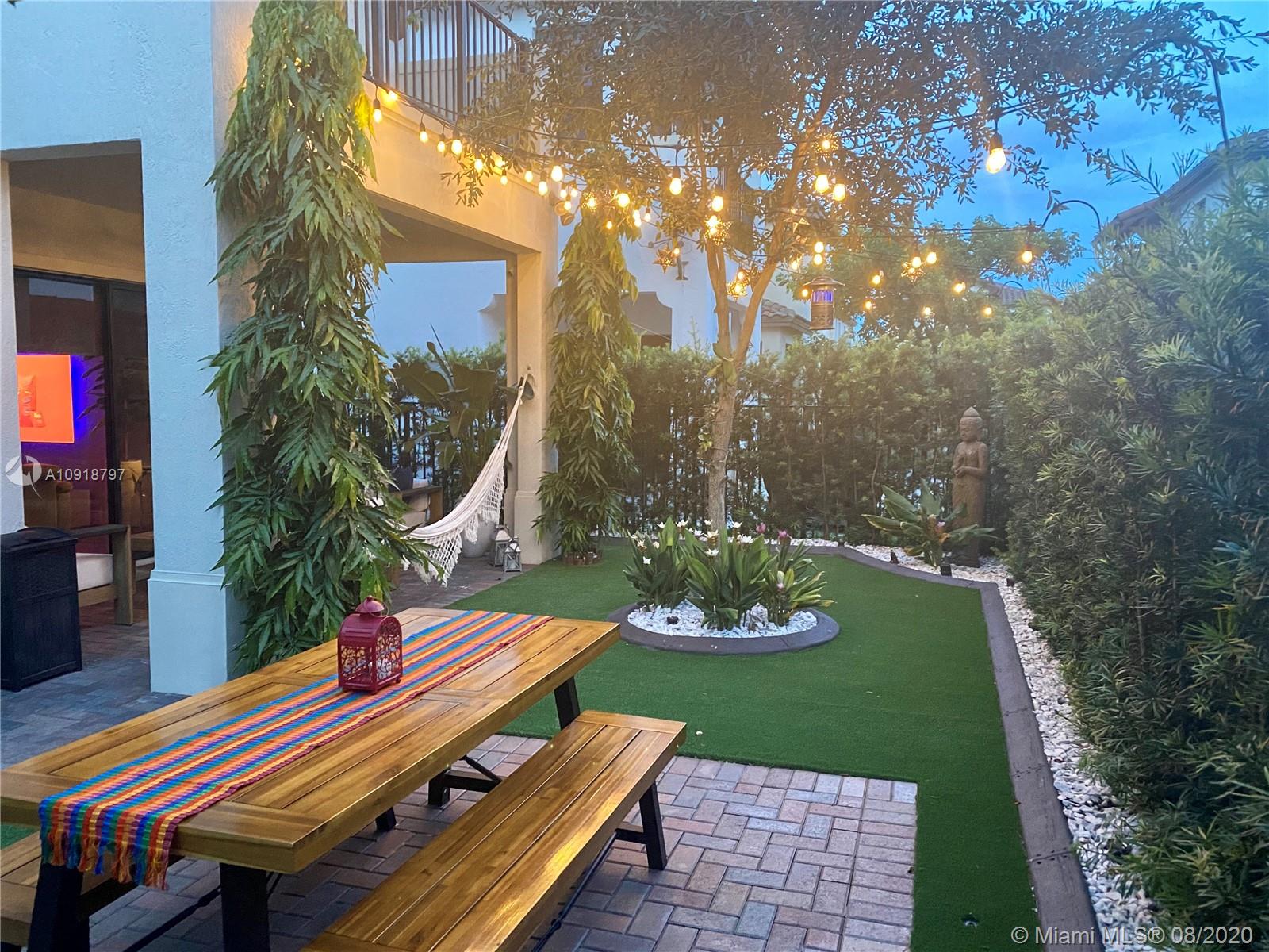 Move in ready elegant and unique home in Bonterra.This 2,609 Sq Ft.home has 3-bedroom, 2 1/2 bathrooms, a 2-car garage fully equipped with elegant epoxy flooring and 2 ceiling racks for a convenient and functional space. This open concept home has elegant flooring in the entire house, a fabulous kitchen with calacatta quartz countertops, top of the line stainless steel appliances, carrara marble showers, upgraded kohler faucets, toilets and bathroom accessories, designer class bathroom vanities, beautiful and modern upgraded light fixtures and fans, a covered terrace, a beautiful fenced garden with pet friendly artificial turf, front load washer/dryer, modern windows treatments (2 are motorized), SmartHome kit included and more. Do not miss the opportunity to own a home ready to move in.
