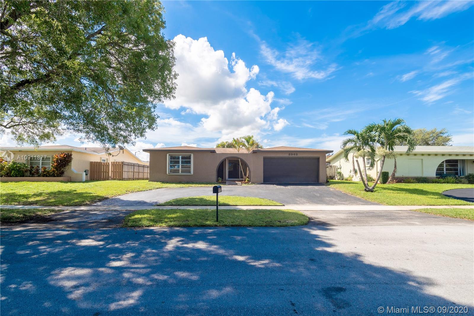 3 BEDROOM /2 BATH / 2 Car garage home located in the heart of Pembroke Pines. Property is ready to be made into someones dream home. Home features an open floor plan with tile throughout main living area and bedrooms. Interior has been freshly primed and ready for your new color choice. Home shows bigger then stated square footage on tax roll. Accordian shutters. Newer water heater.Automated sprinkler system. Room for a small pool in backyard. Close to schools, main roads, restaurants and shopping. U-shaped driveway that can hold up to 4 vehicles. Did I mention NO HOA!