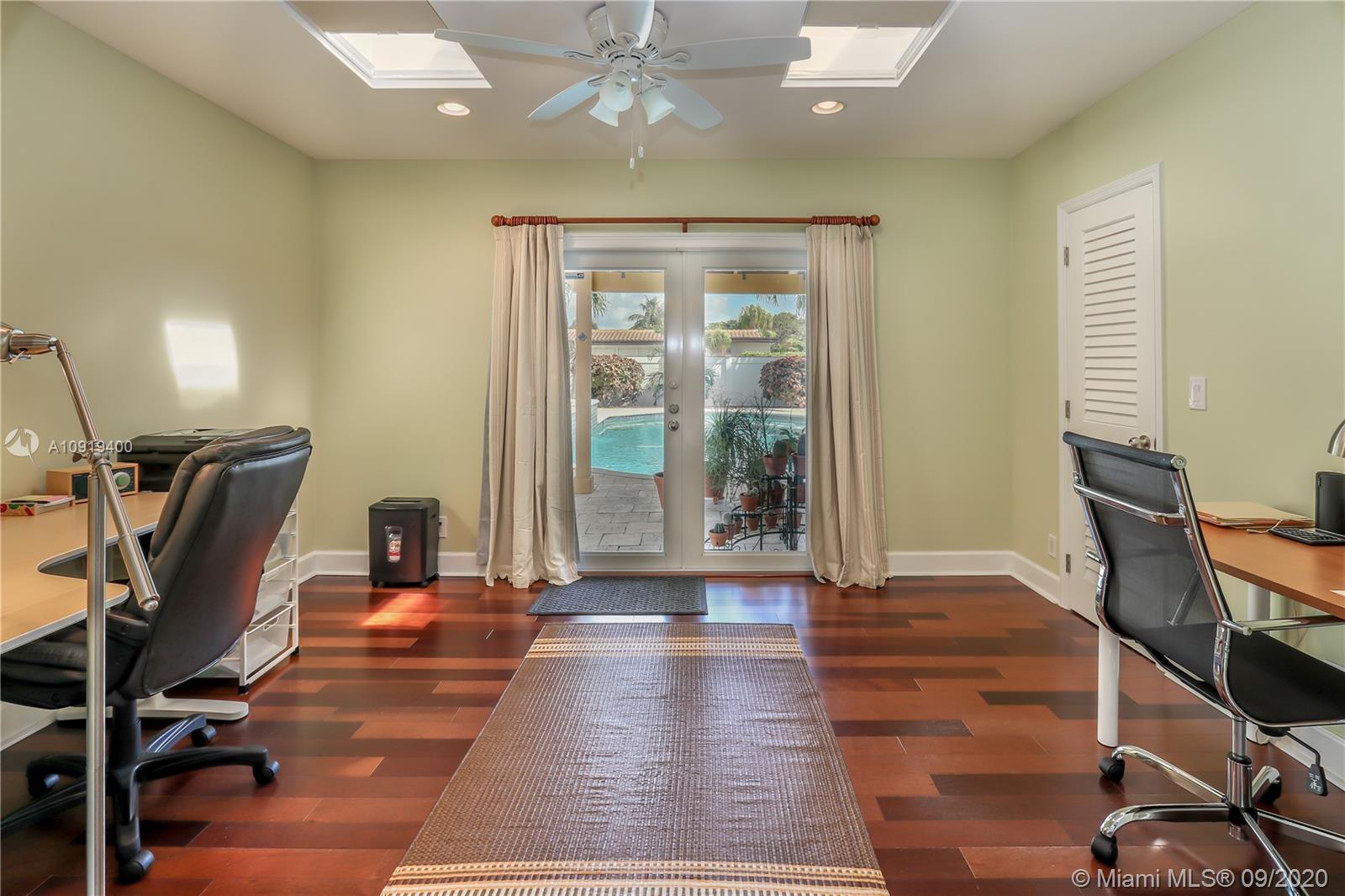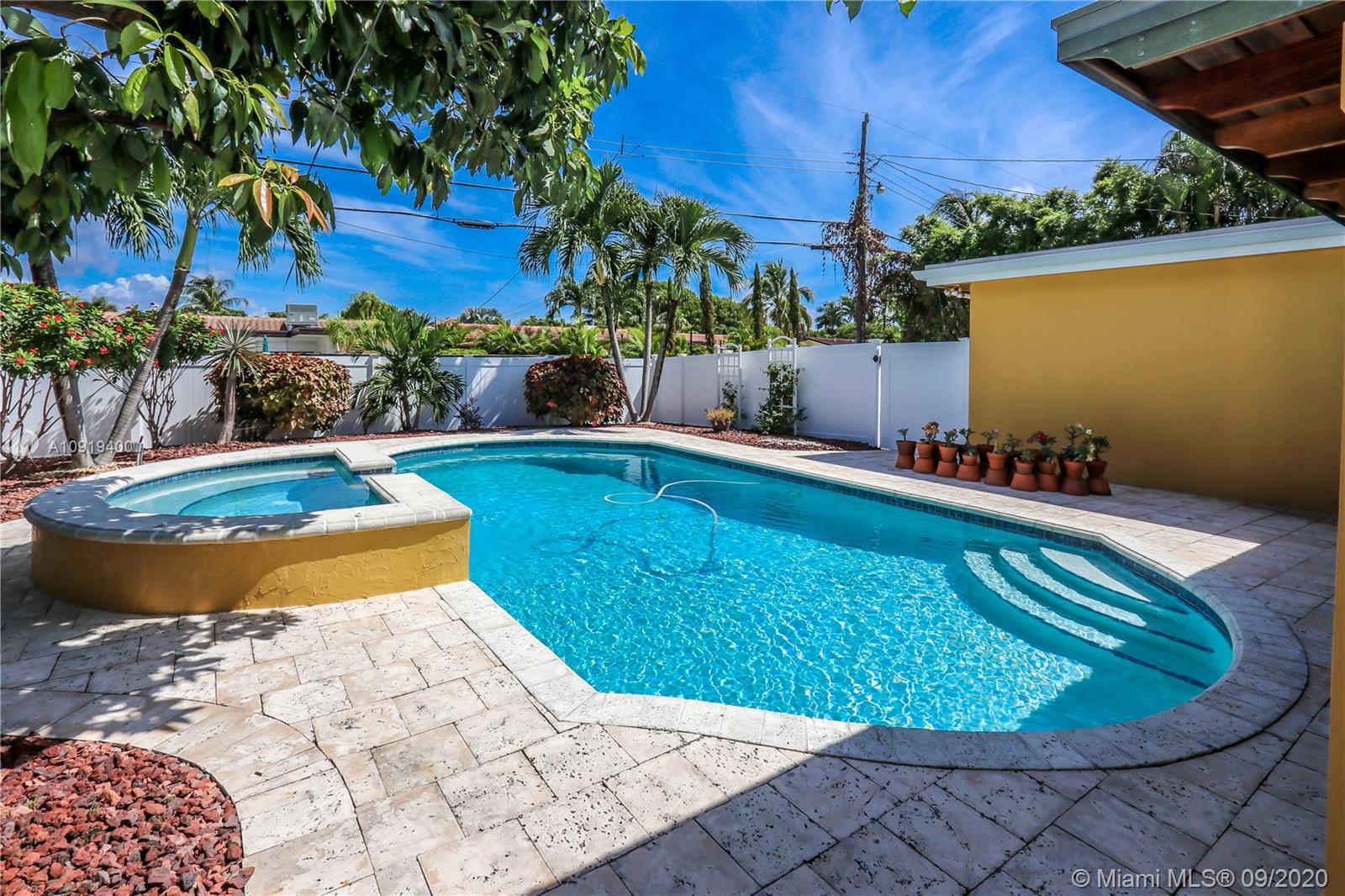 Gorgeous 3 bed/2.5 bath pool home with beautiful curb appeal and tropical landscaping nestled in Historic Hollywood Lakes Community. The master bedroom has 2 walk-in closets, sitting area with French doors facing pool and covered patio. Combination of astonishing Brazilian cherry wood floor and tile floor resonates throughout the home. Kitchen features elegant quartz countertops, Miele Induction Cooktop, Miele Double oven, custom cabinetry, formal dining and breakfast area that also faces the pool. Skylights throughout home provide lots of natural bright light. Laundry room with sink including Samsung washer & dryer. Outside kitchen with, grill and warming oven. Heated saltwater pool/spa, outside shower, newer fence large backyard great for entertaining. No HOA.