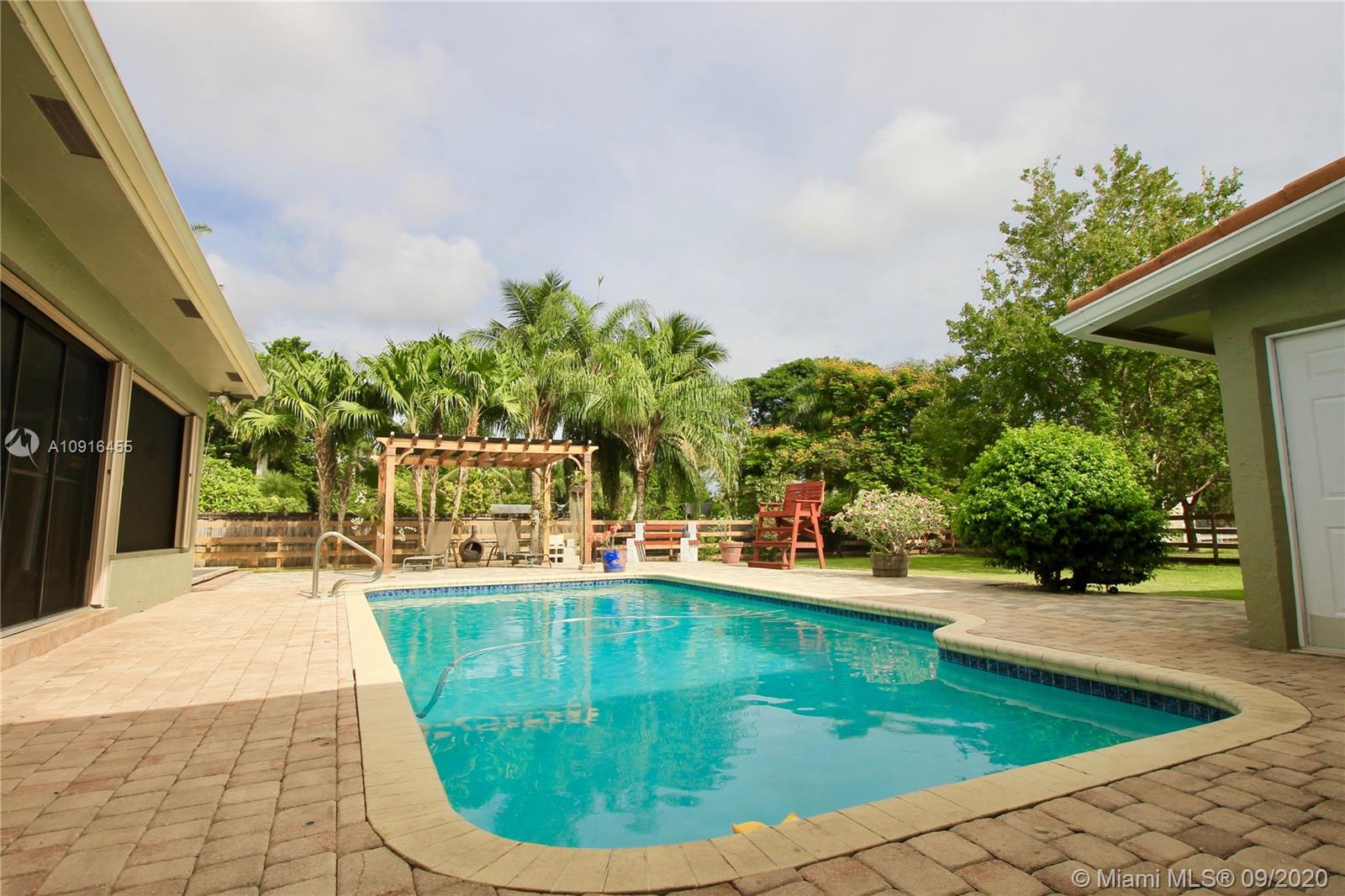 pROPERTY HAS aPPRAISAL! custom remodeled home sitting on a grand builder acre, boasting a refreshing pool and lush green everywhere! Land and home are fenced in, with electric gate entrance, paved from front to back, and huge 3 car garage, with an additional storage room on the back. Home is protected by a stone-coated steel roof with a 50-year durability life span and is equipped with a generator hook up on side of the house that powers the entire house. New 3-stable barn with fenced lounging area, your animals will love it! Backyard recently elevated, steel overhang recently installed in the courtyard, and so more! All interior/exterior upgrades were done 2019/2020. Come as a guest, and you'll want to leave a happy homeowner. Welcome home! HOME HAS BEEN APPRAISED, just waiting for you!!